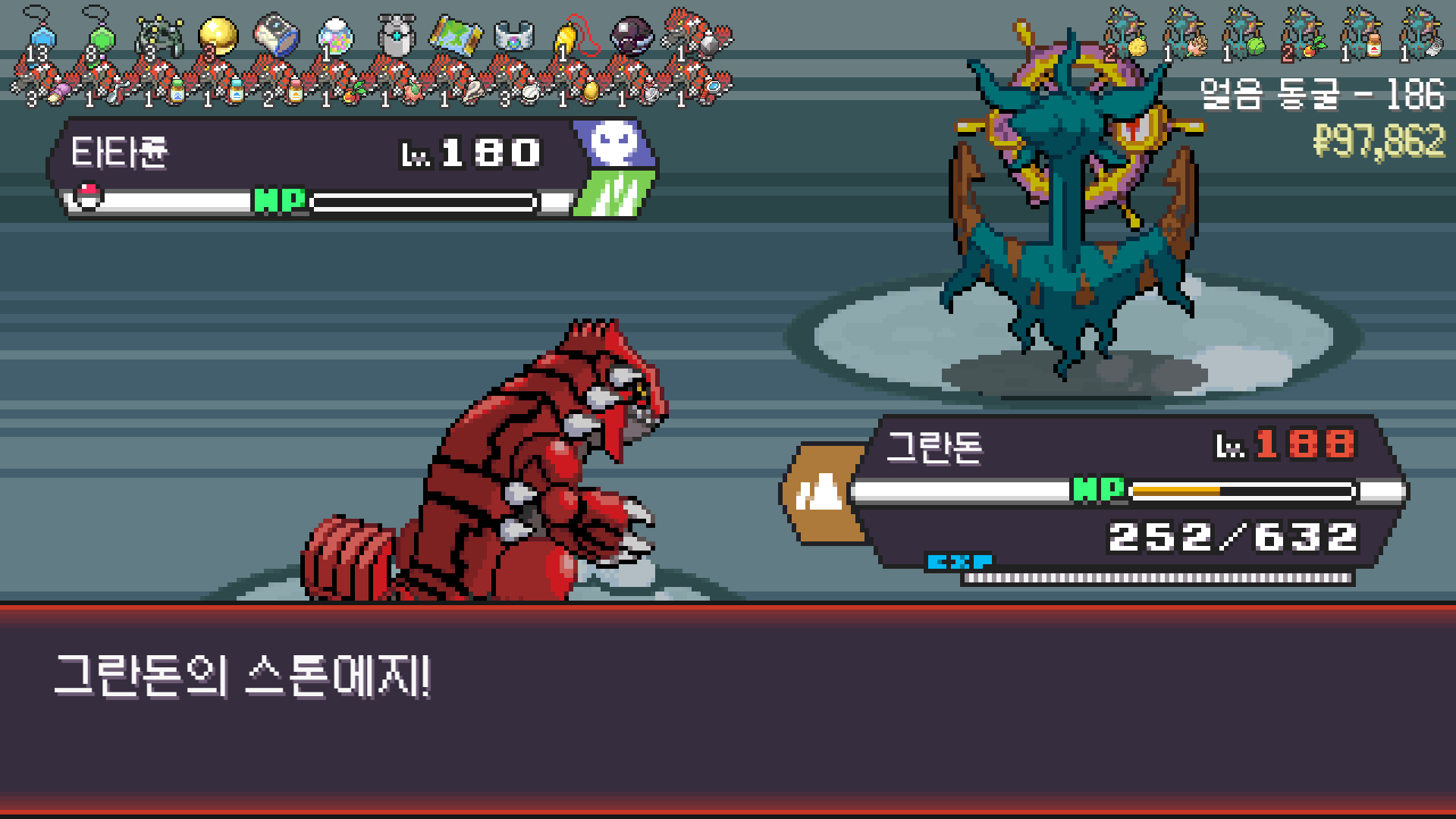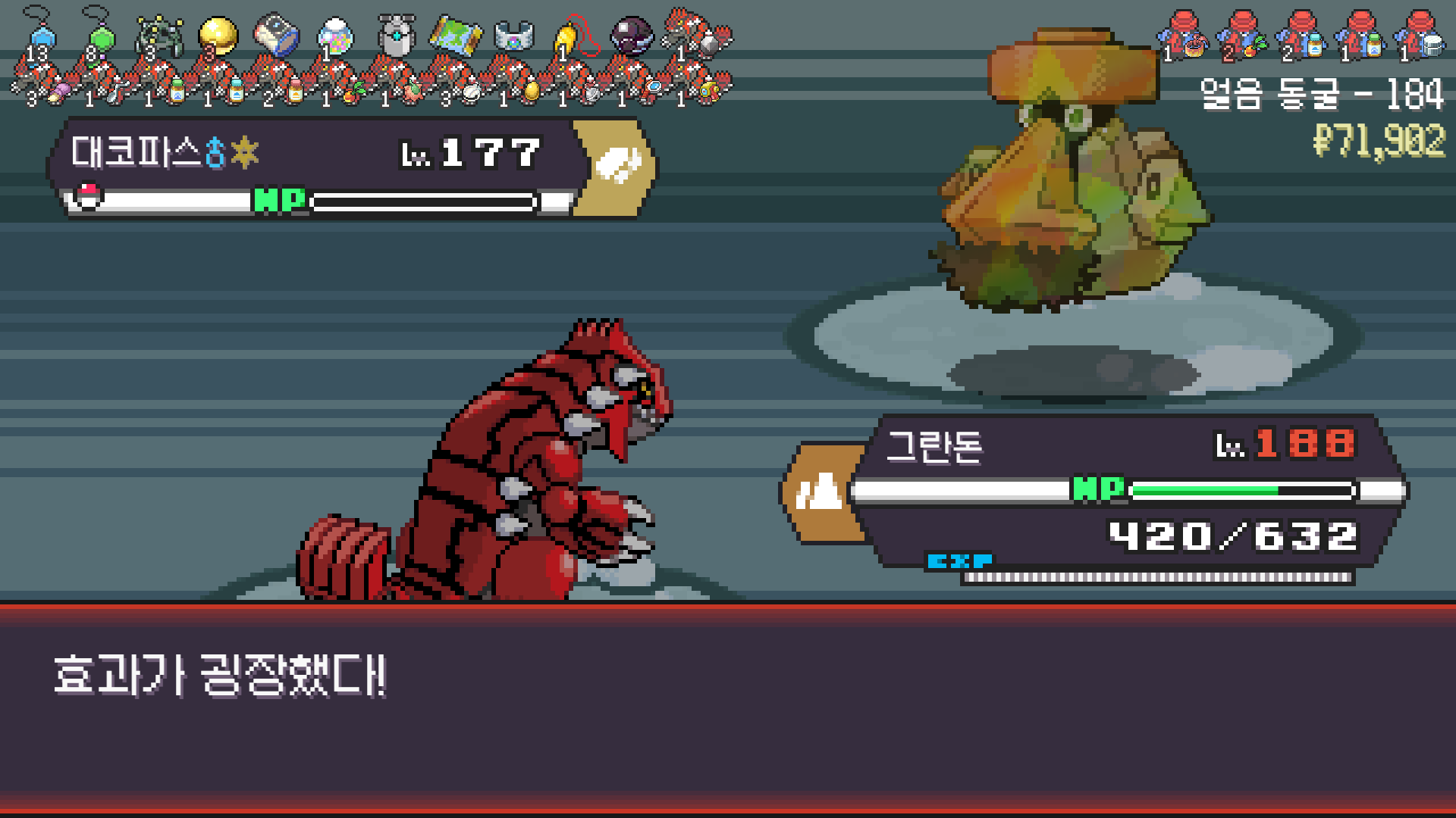 그란돈이 너무 강해서 메가폭타, 거다이맥스 석탄산 죄다 벤치만 달구다 은퇴했다