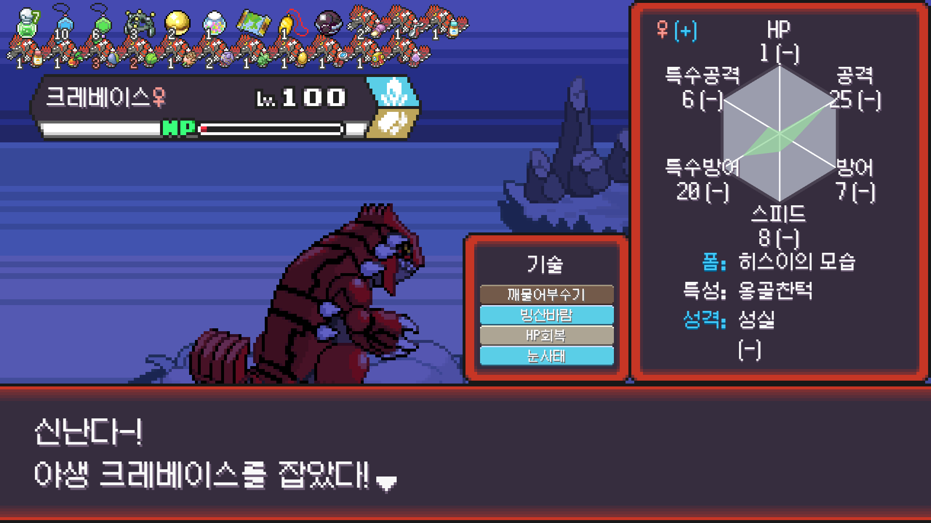 평소에 잘 나오는 일반 크레베이스는 코빼기도 안보이고 귀한 히스이 크레베이스를...