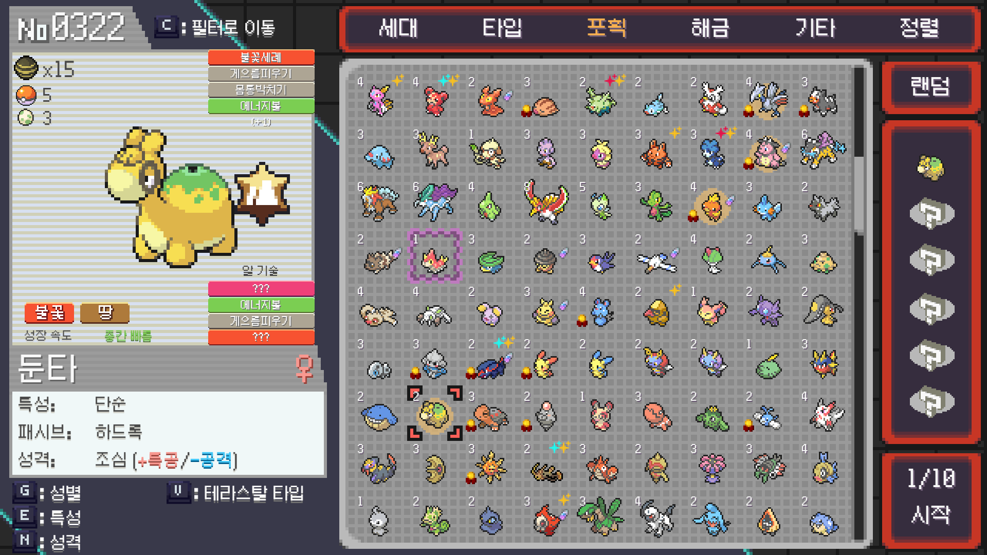 굼벵이 중에 그나마 메가진화가 있는 둔타로 시작