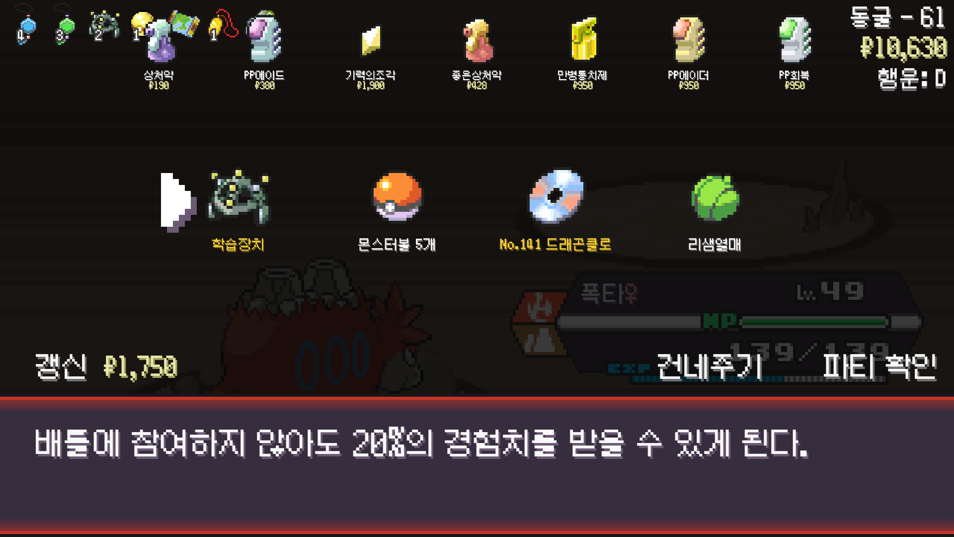 폭타 진화까지 도움이되는 진화의휘석