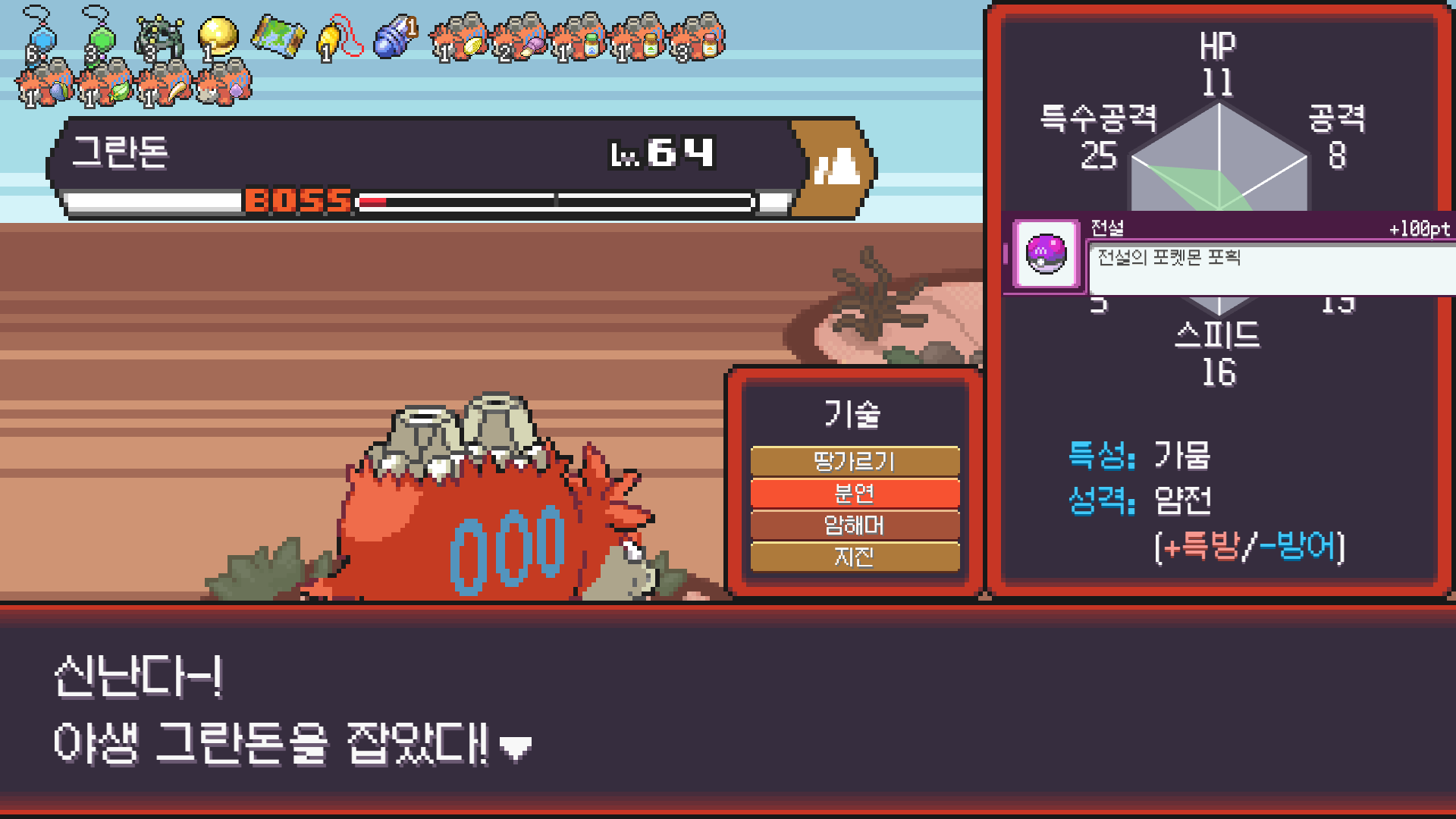 전설의 포켓몬 그란돈 포획