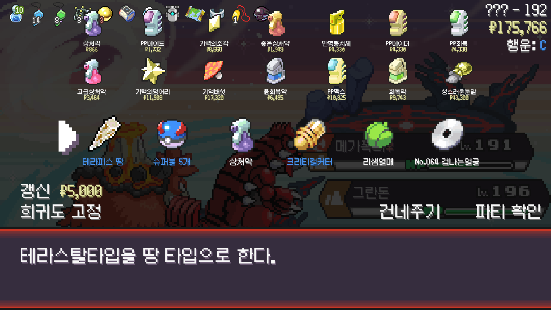 이로치폭타 땅 테라로 바꿔두고