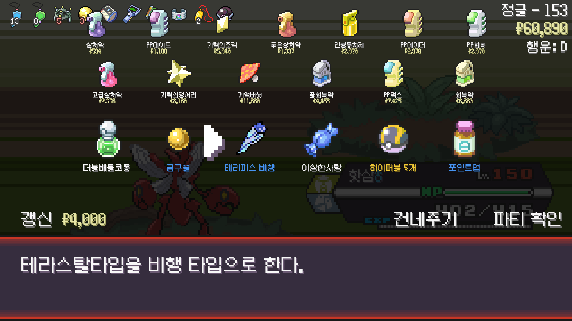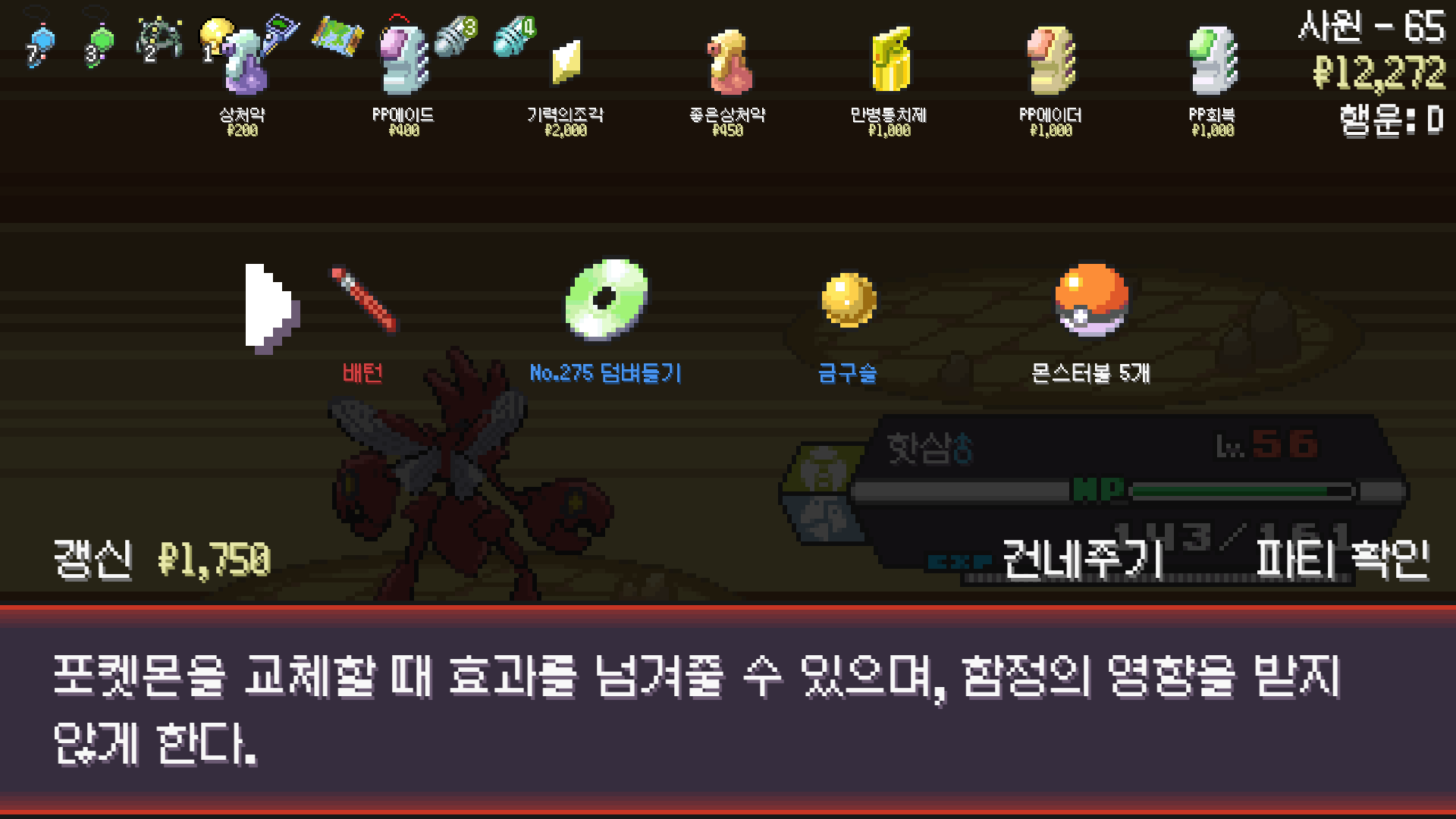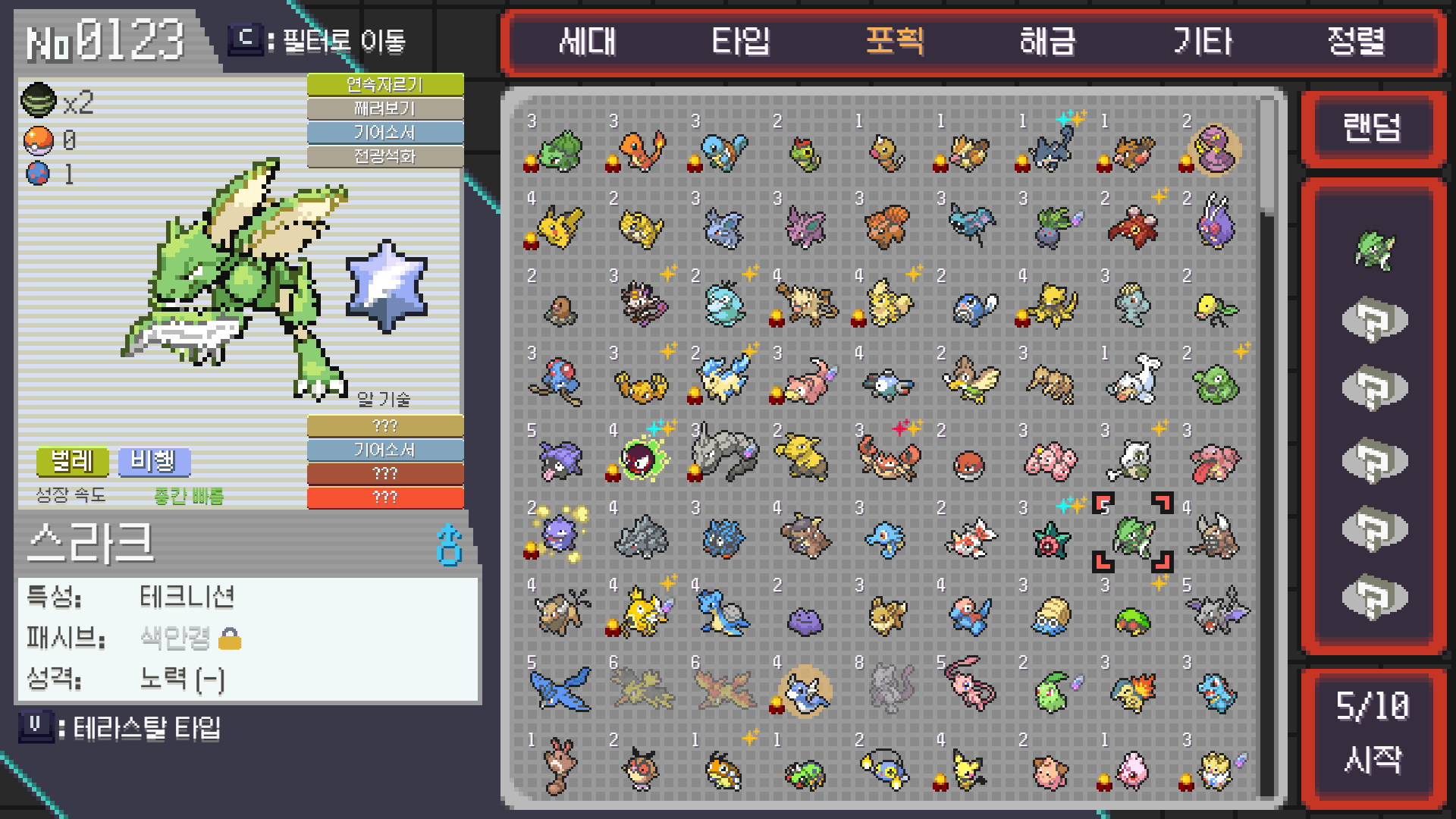 PokéRogue 사마귀 모티브 포켓몬 사용