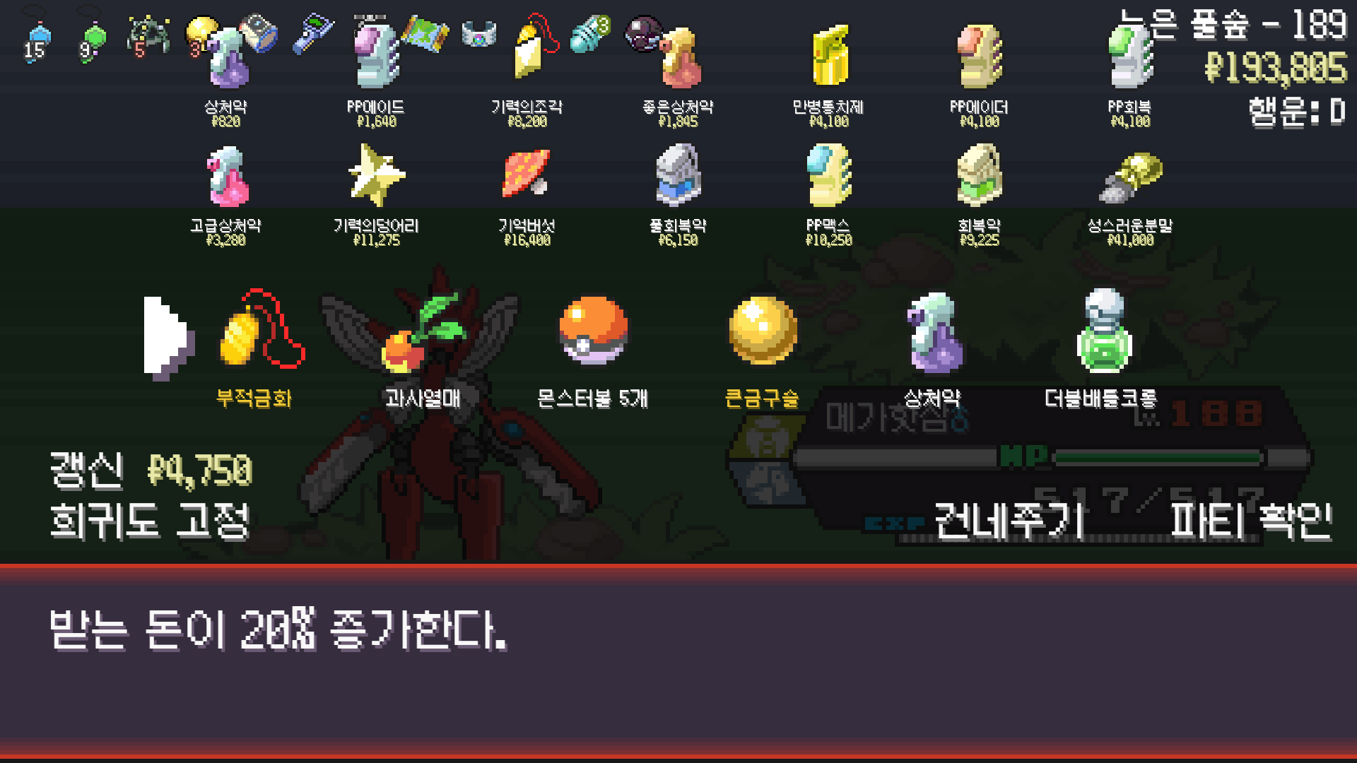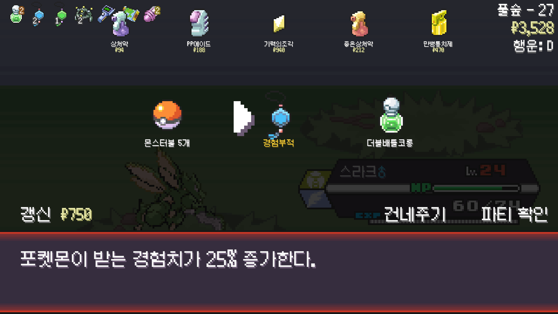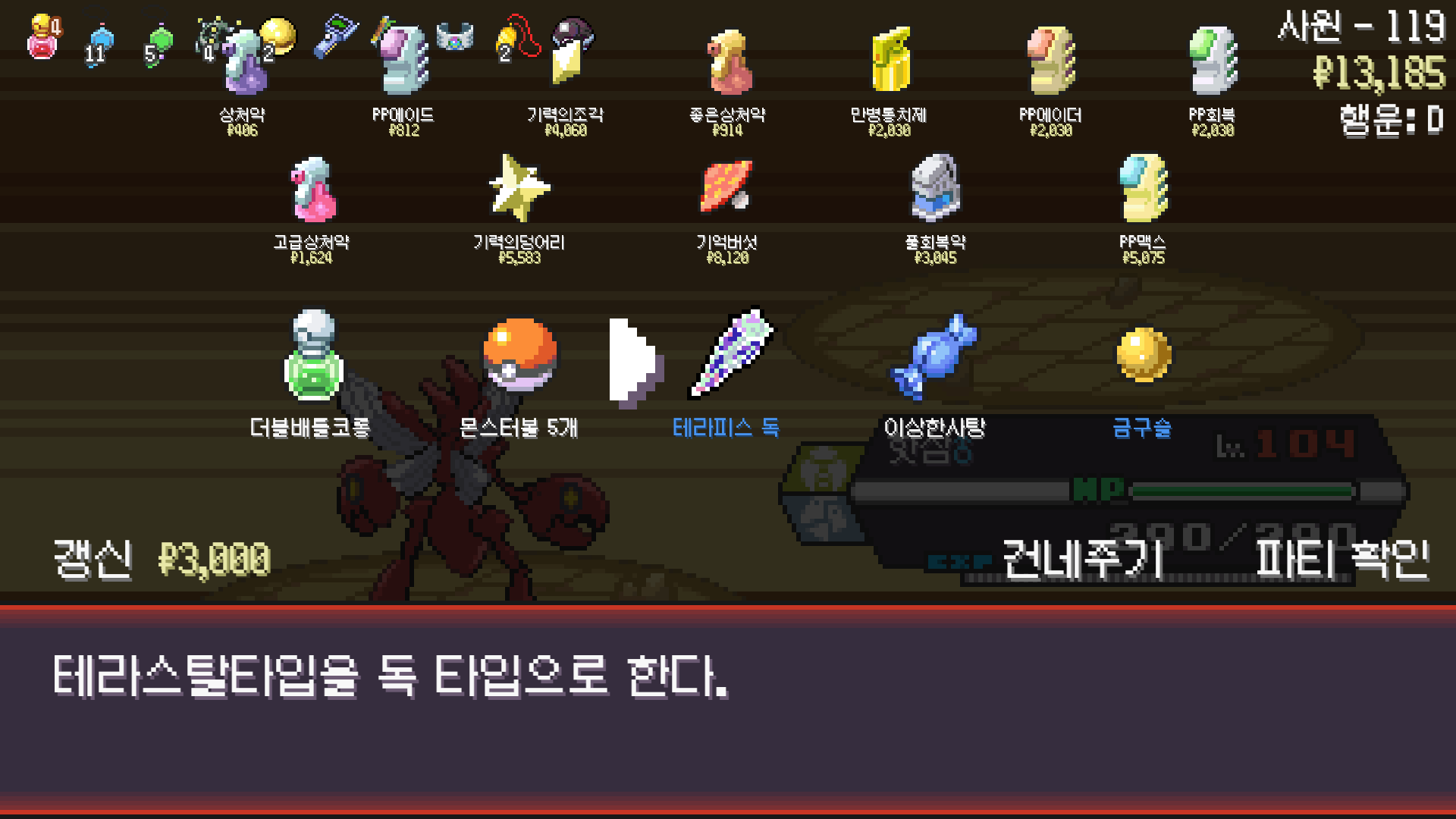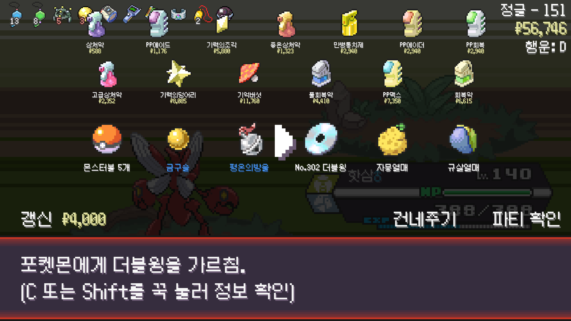 PokéRogue 사마귀 모티브 포켓몬 사용