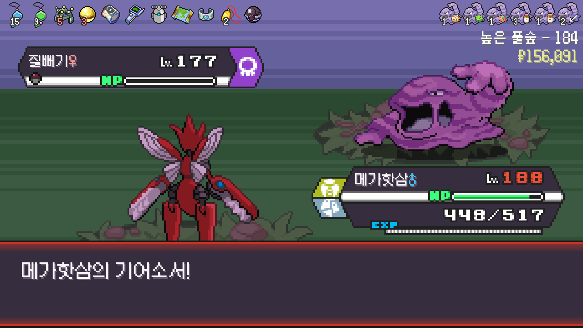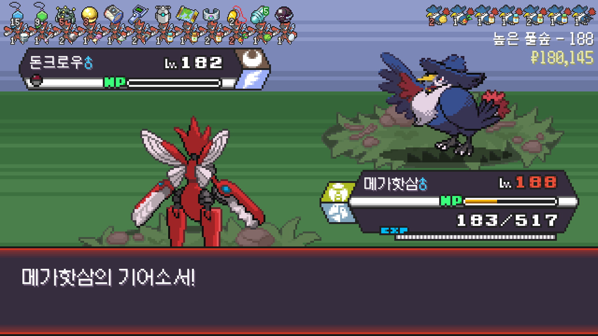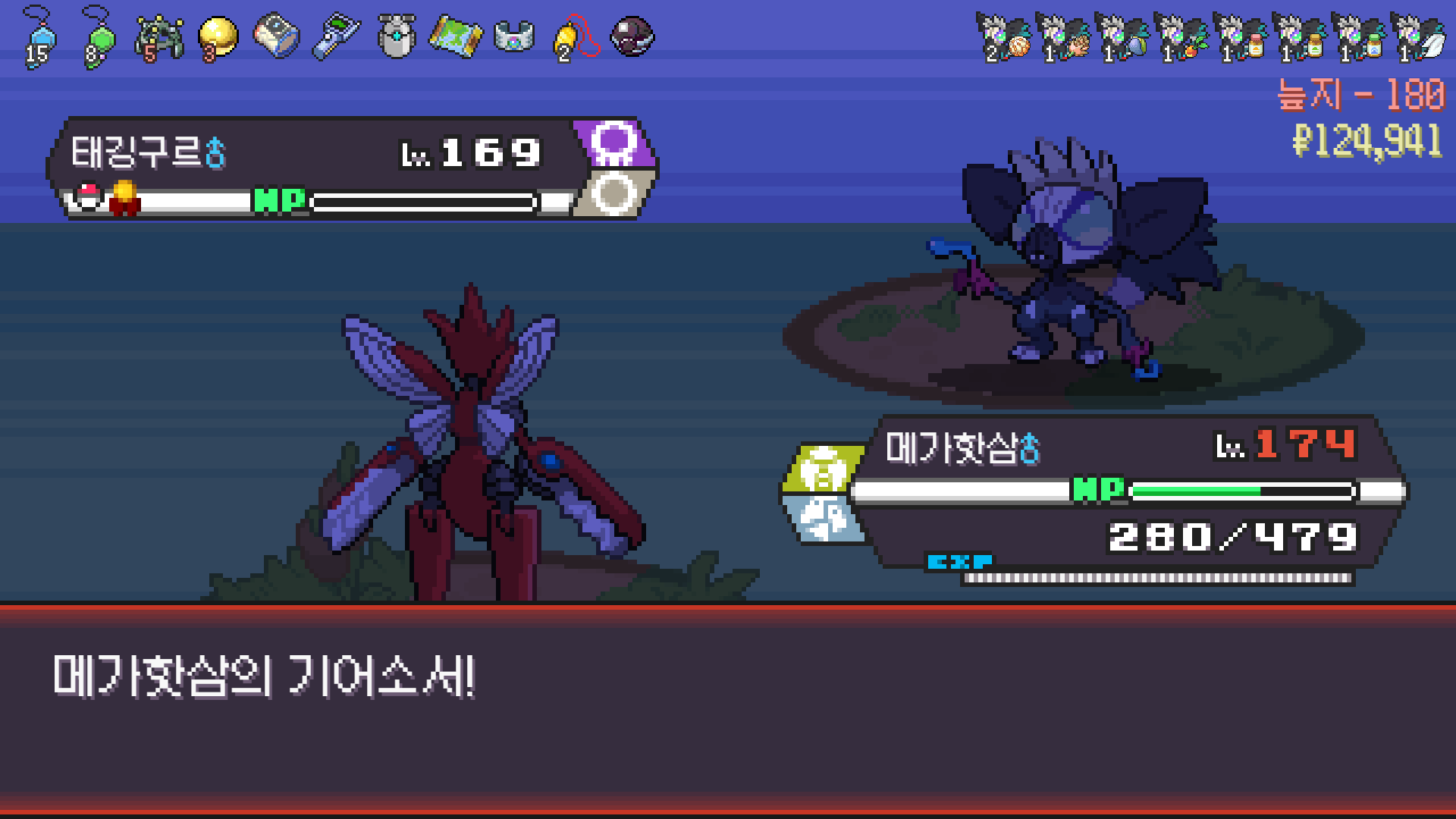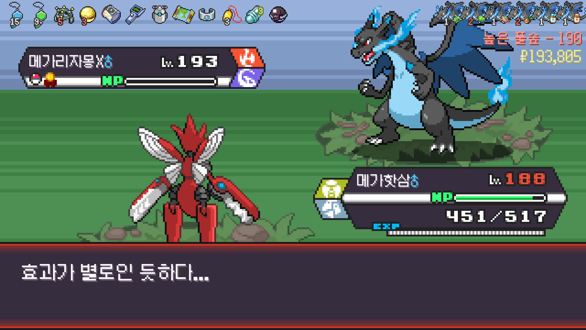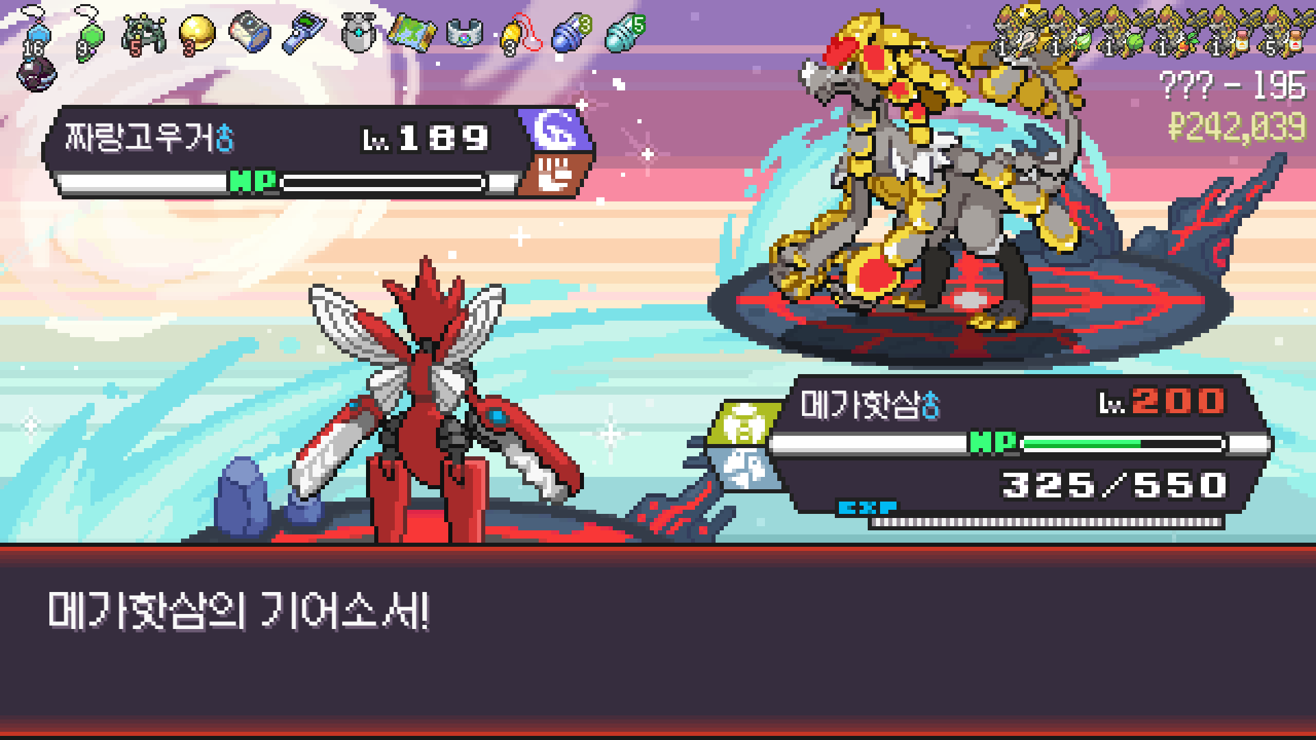 왕큰부리 앞에서 준비작업 끝내고 기어소서로 메가레쿠쟈 원콤