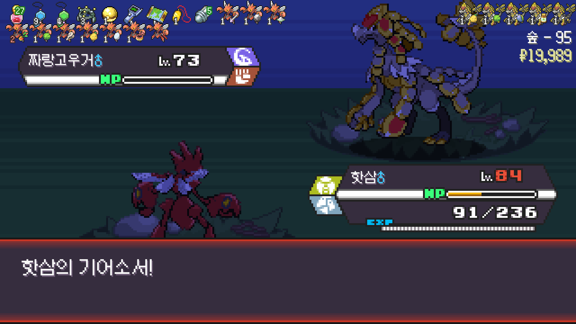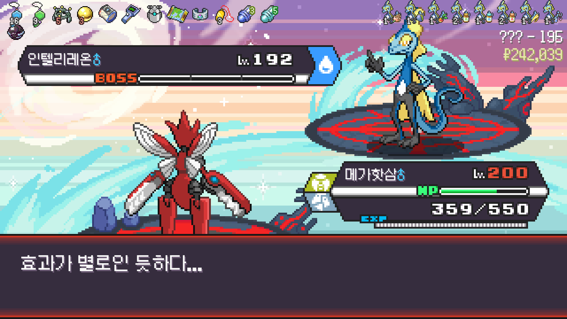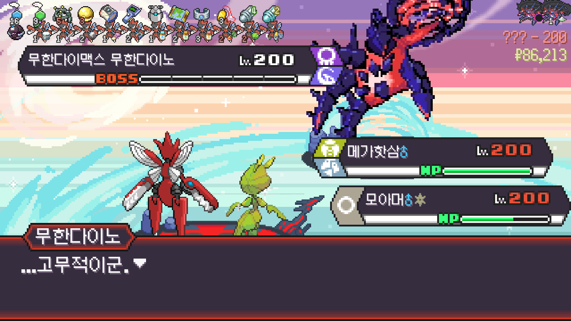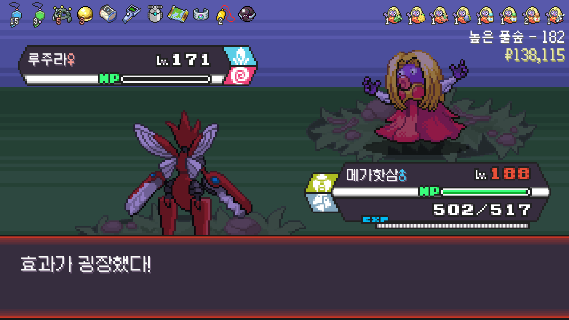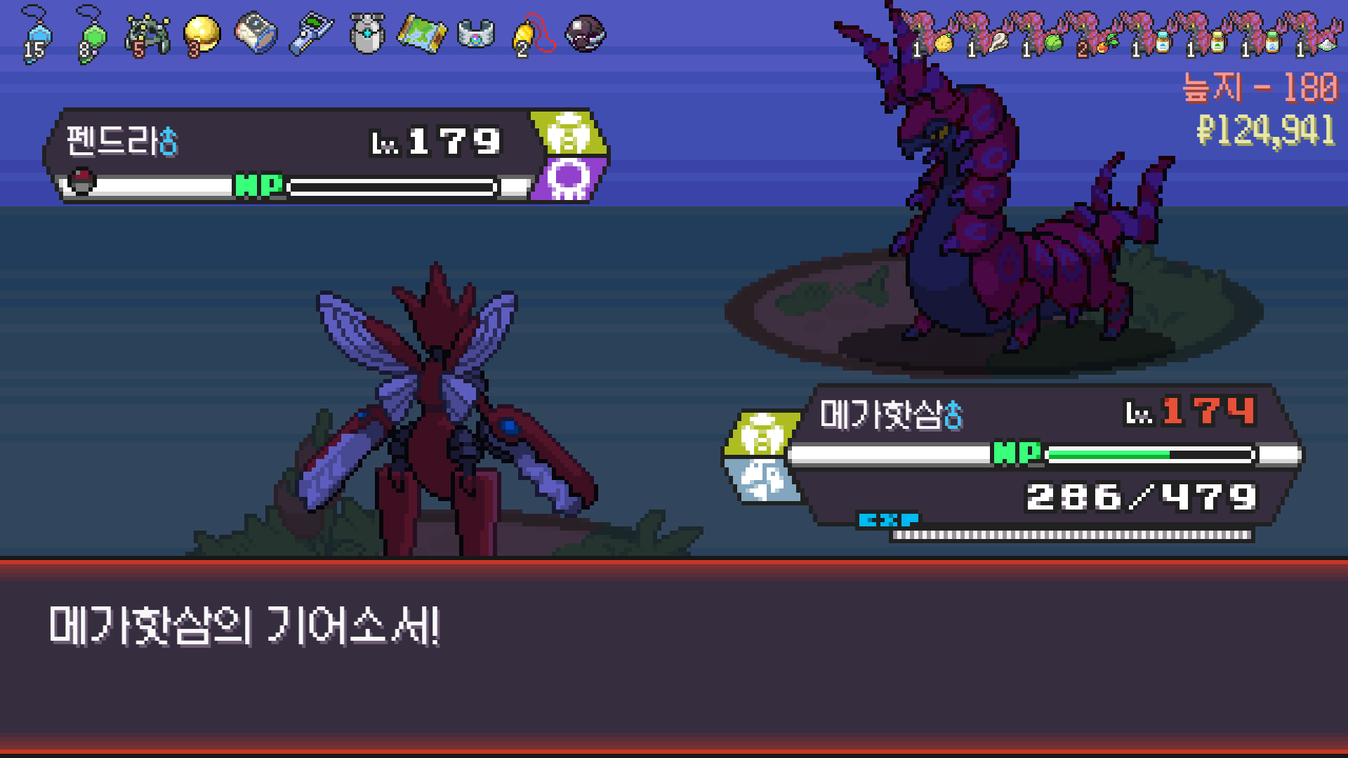 왕큰부리 앞에서 준비작업 끝내고 기어소서로 메가레쿠쟈 원콤