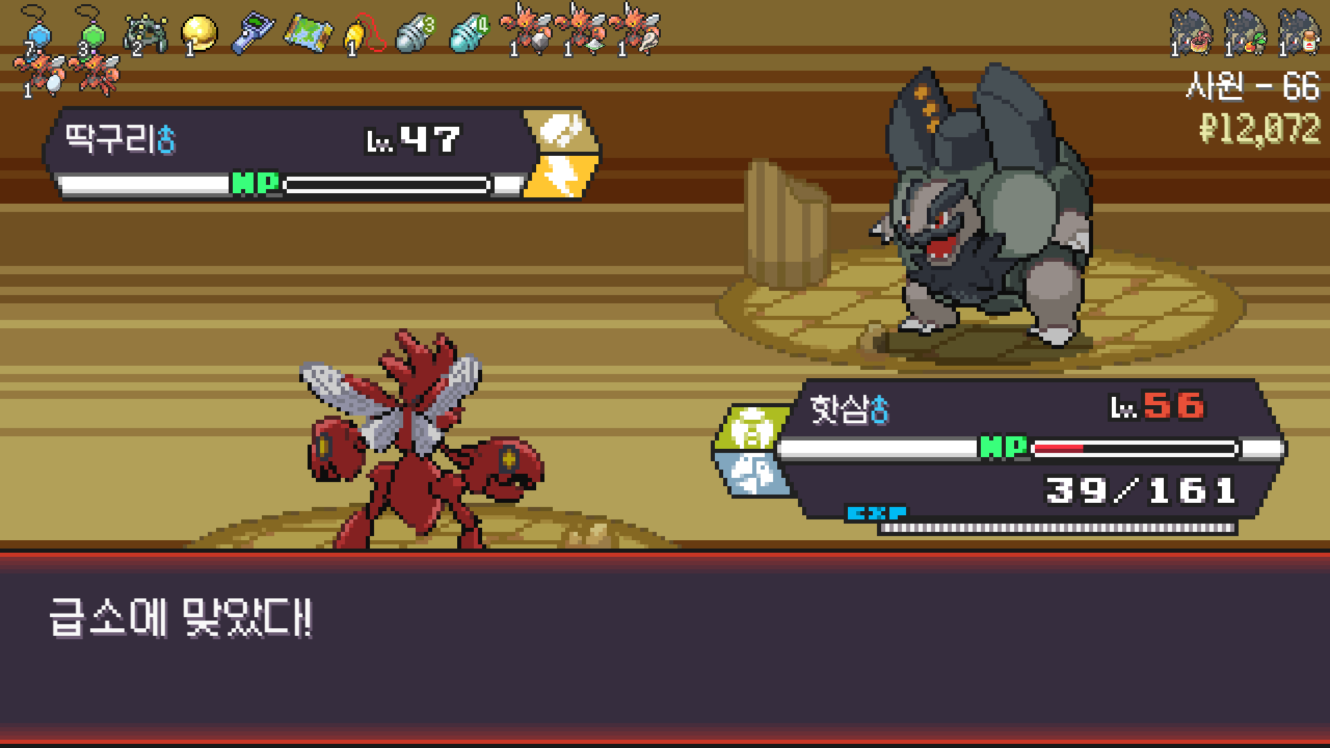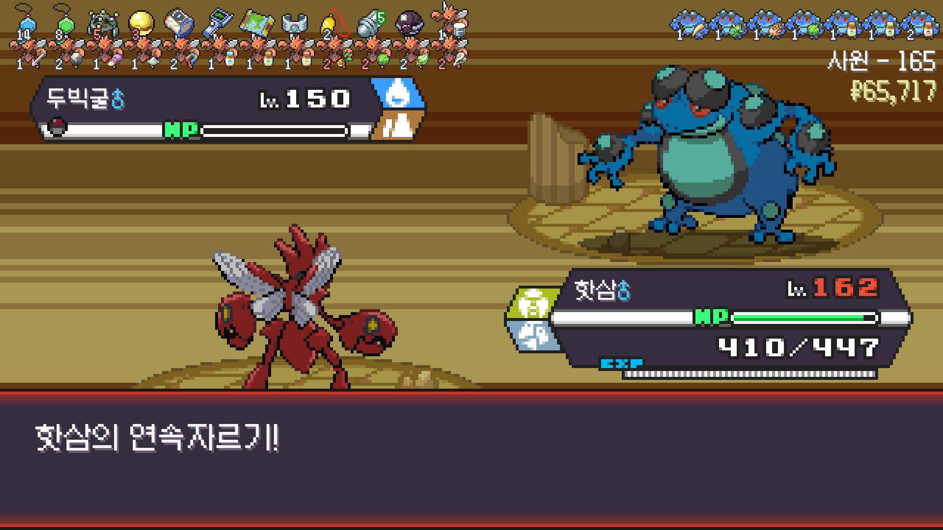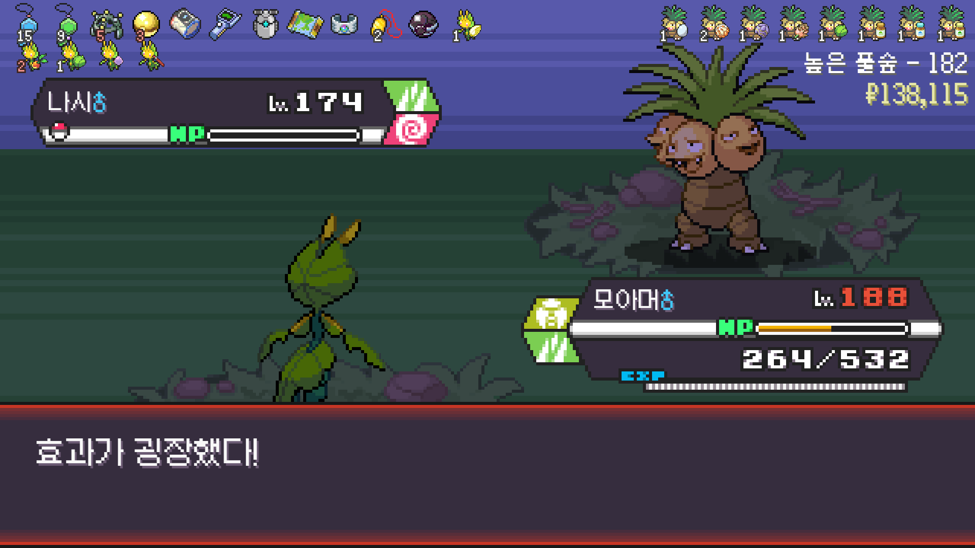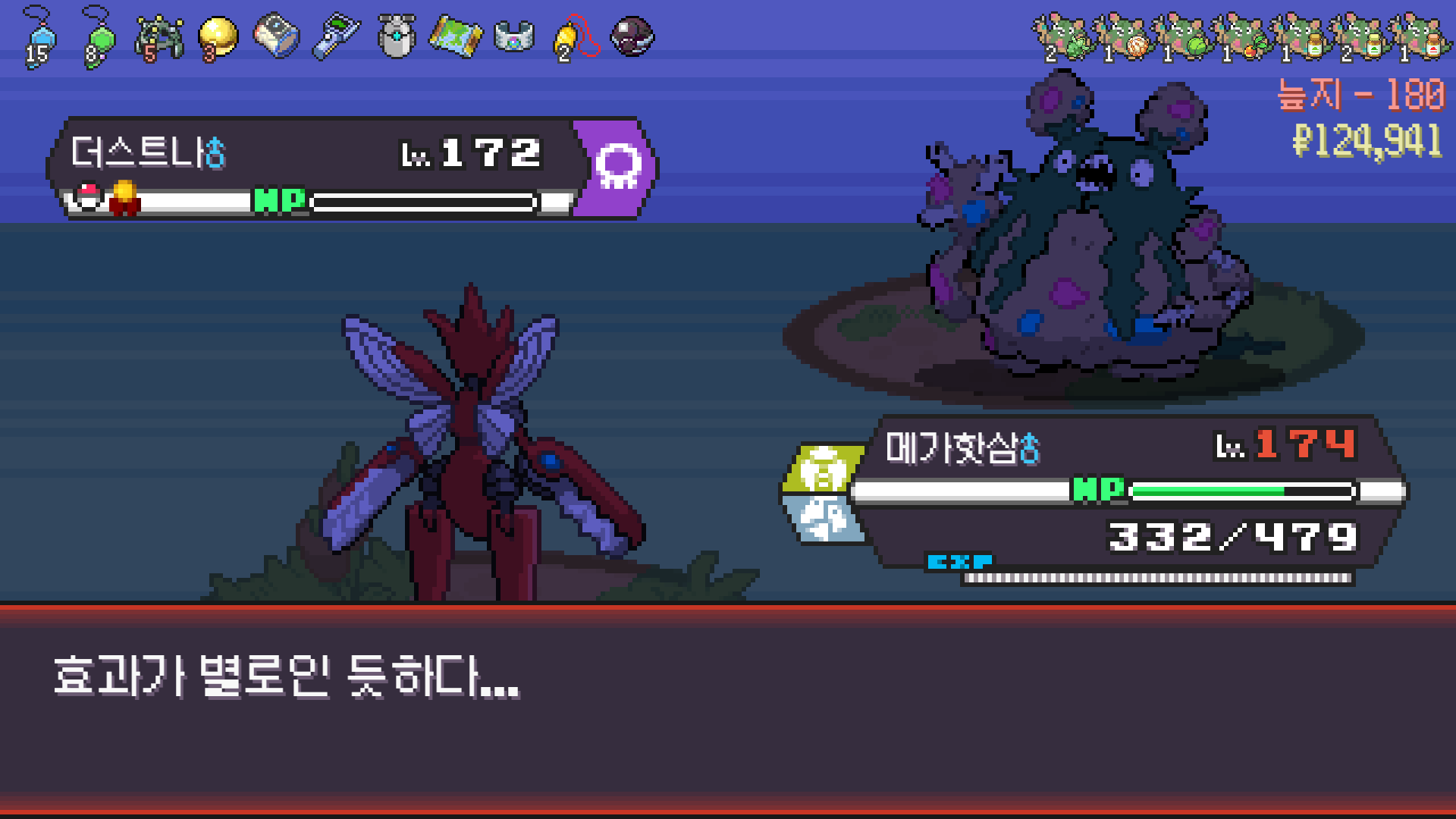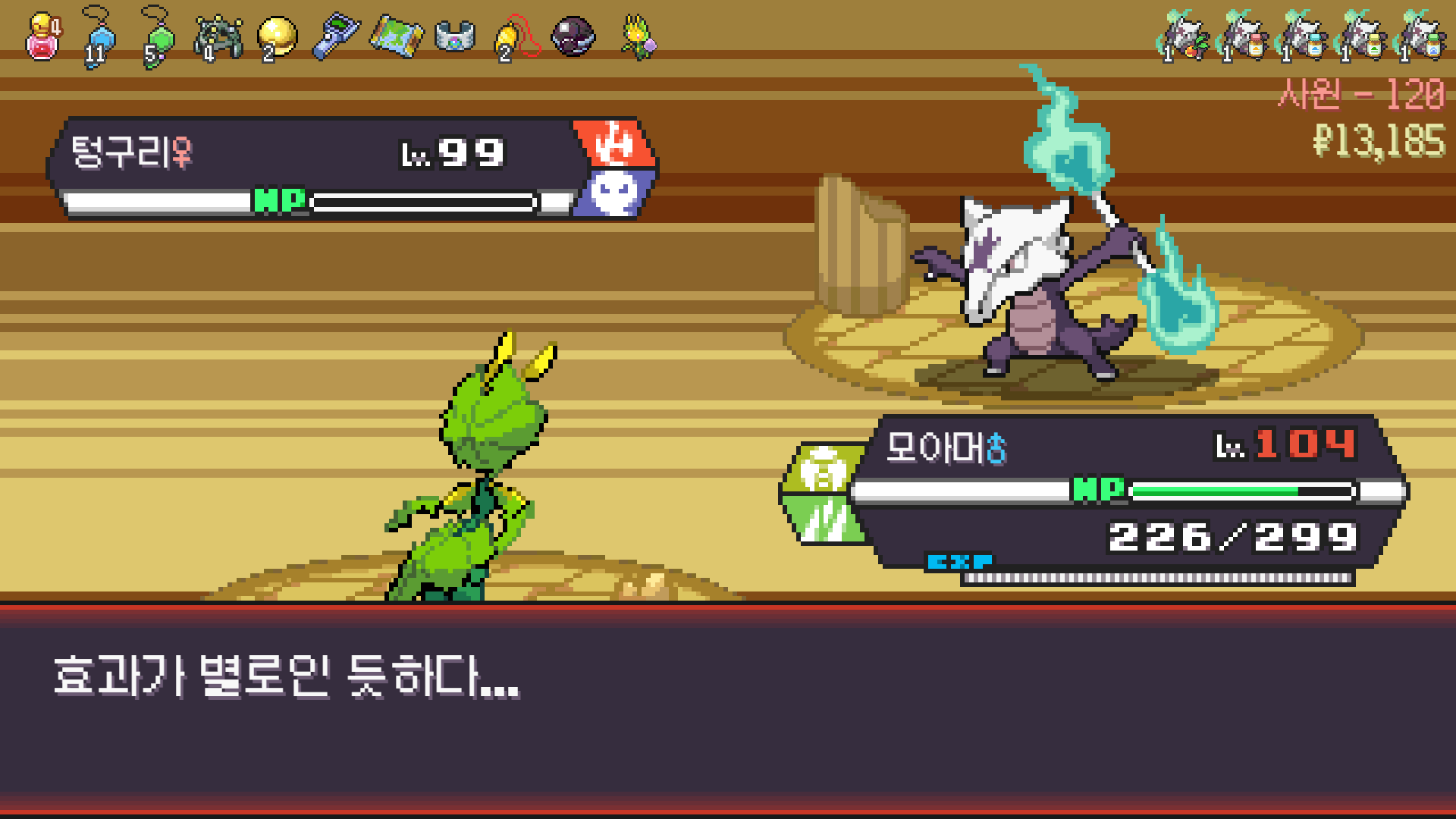핫삼이 알로라 텅구리한테 닦였지만 모아머가 마무리