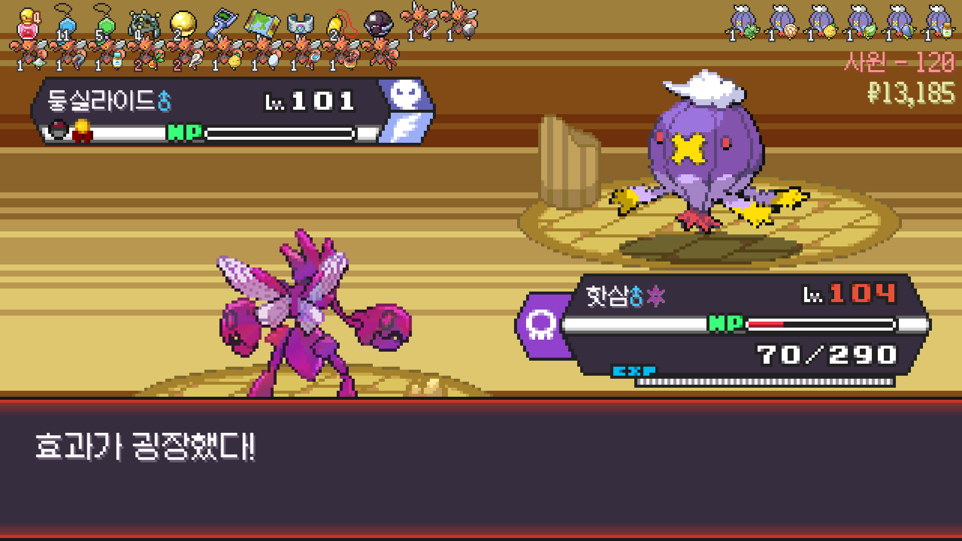 평야-정글 루트를 세바퀴는 돈 것 같은데 스라크 한 마리가 안 나와서 섭섭했다