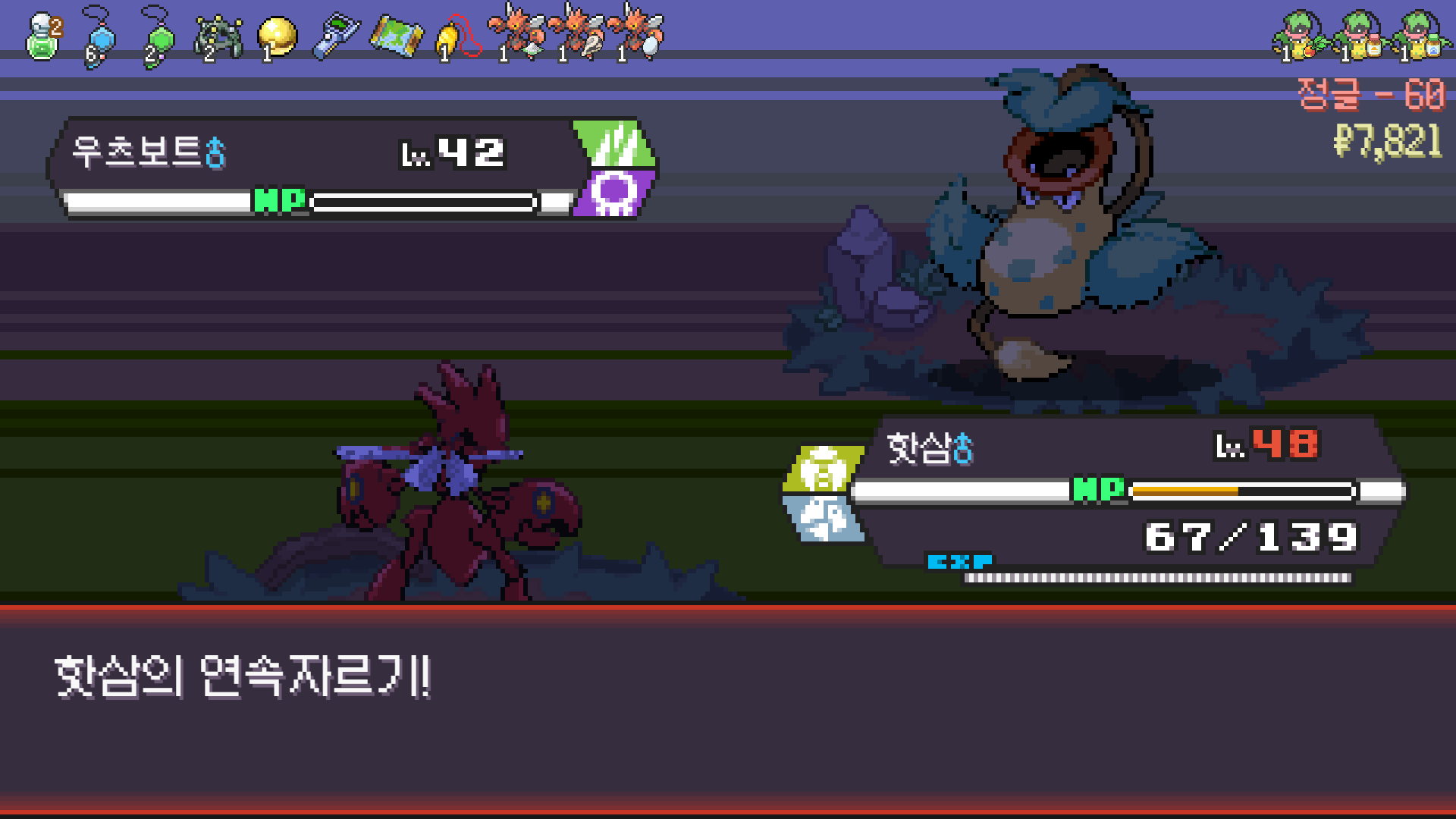 느려서 써먹을게 못 된다. 둘다 아이템 창고 + 교체 턴 받이용으로 썼다