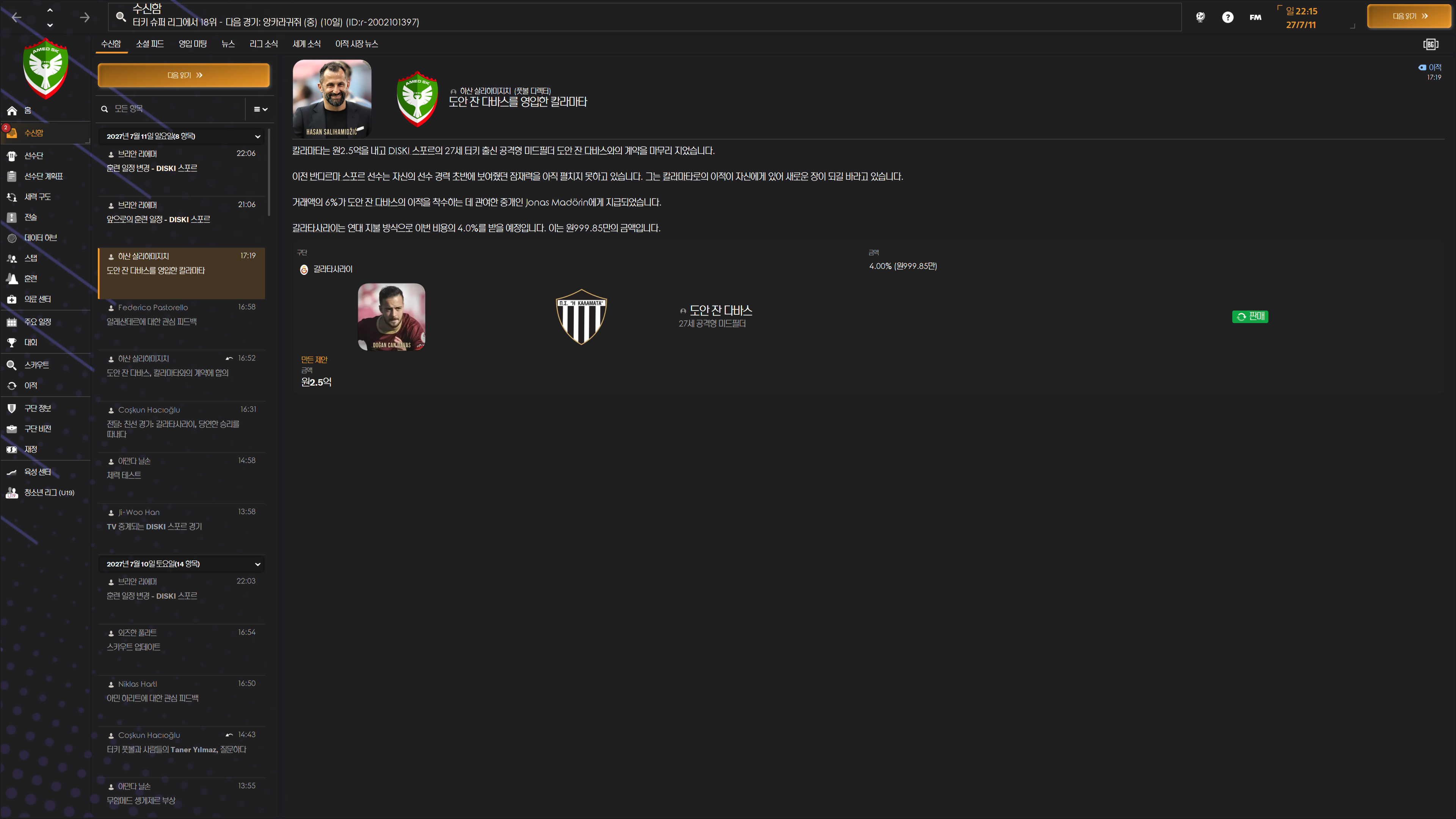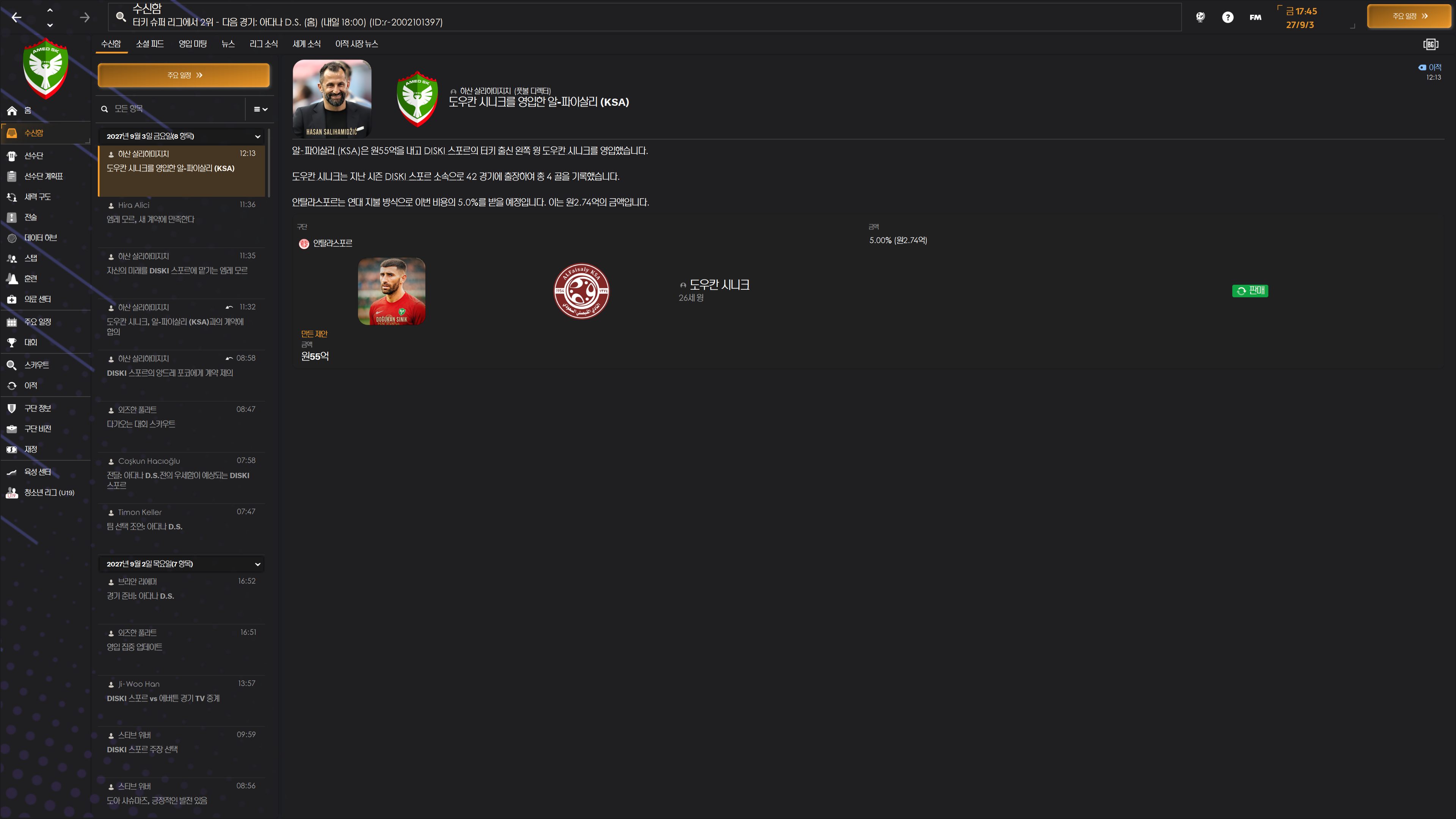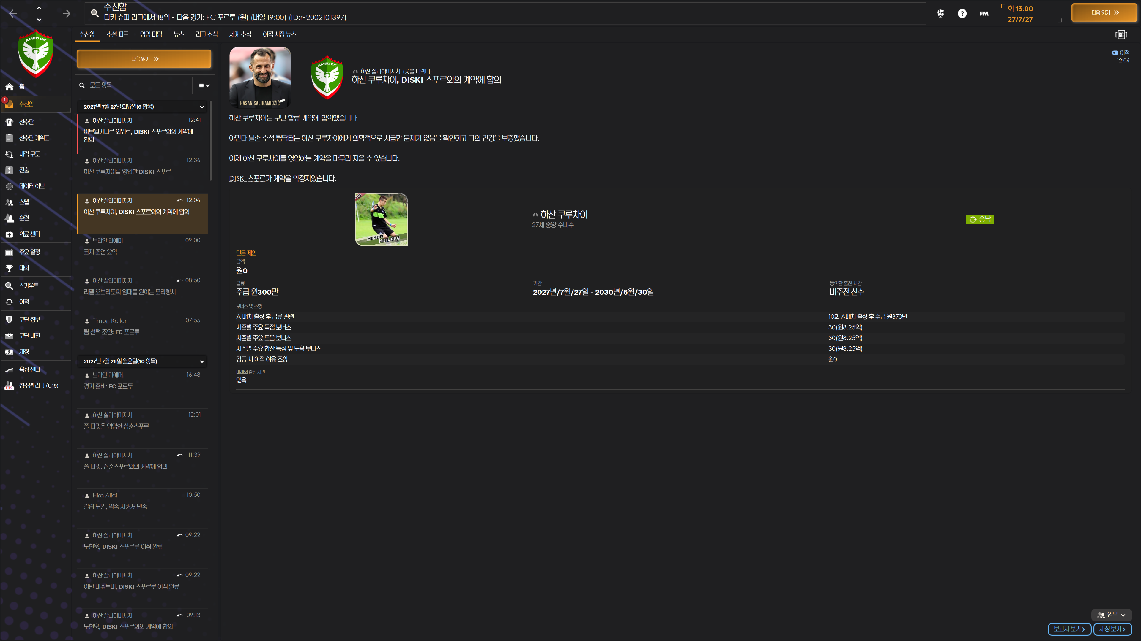 로스터 자리 남으니 자계에서 터키인 교체 자원 수급