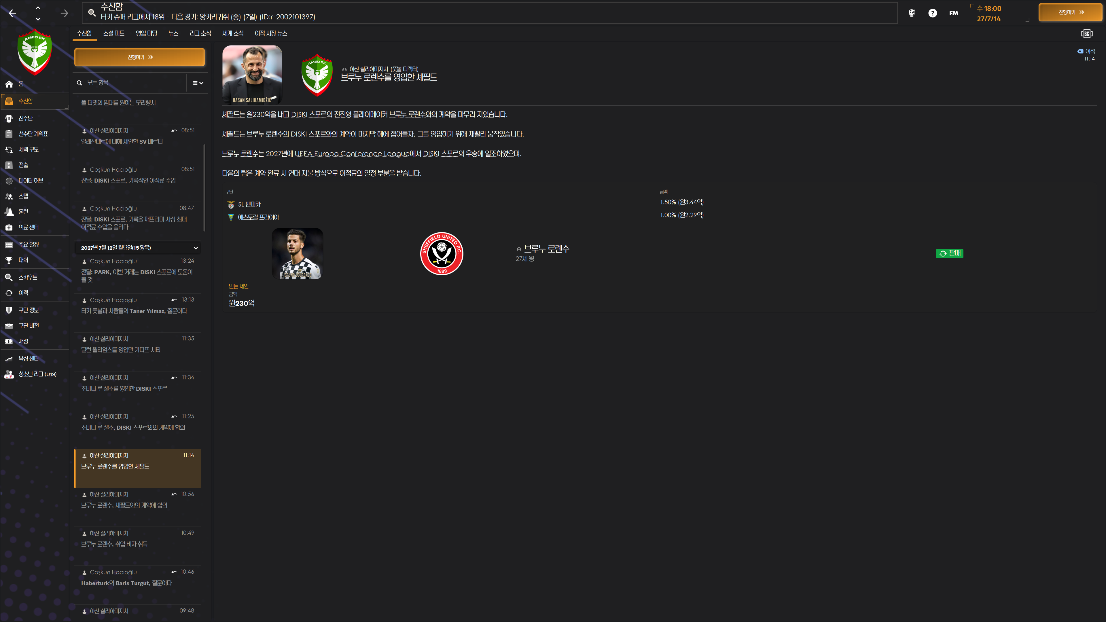 셰필드가 230억 불러서 바로 팔아치운 브루누 로렌수