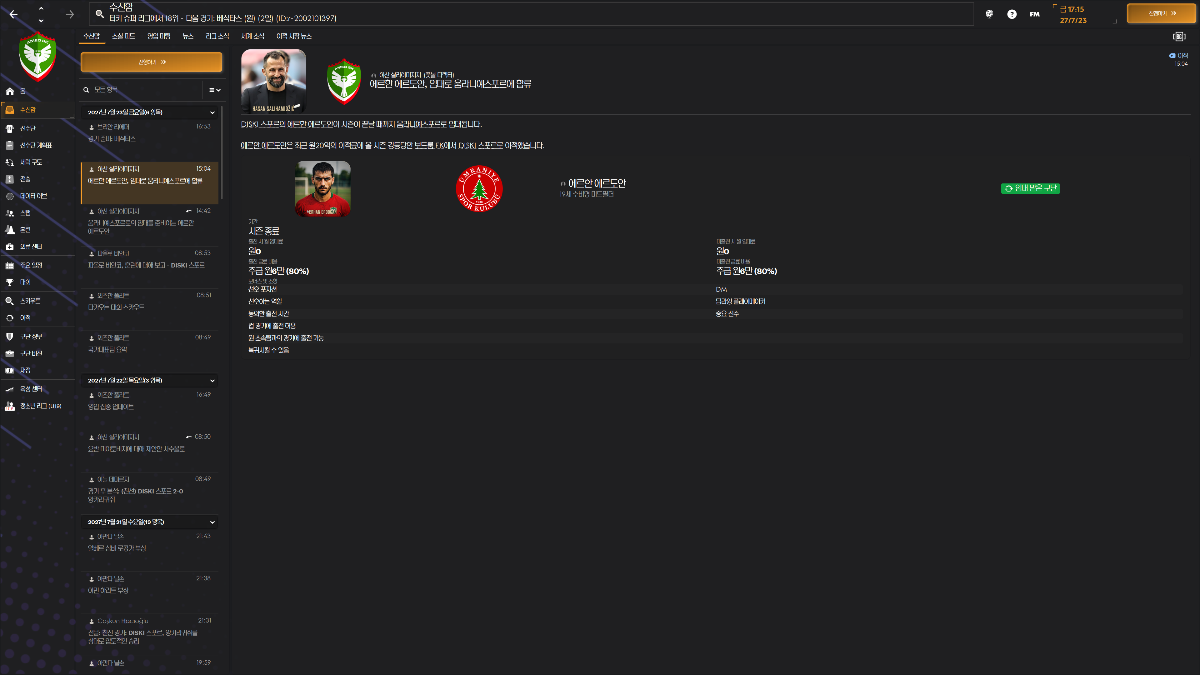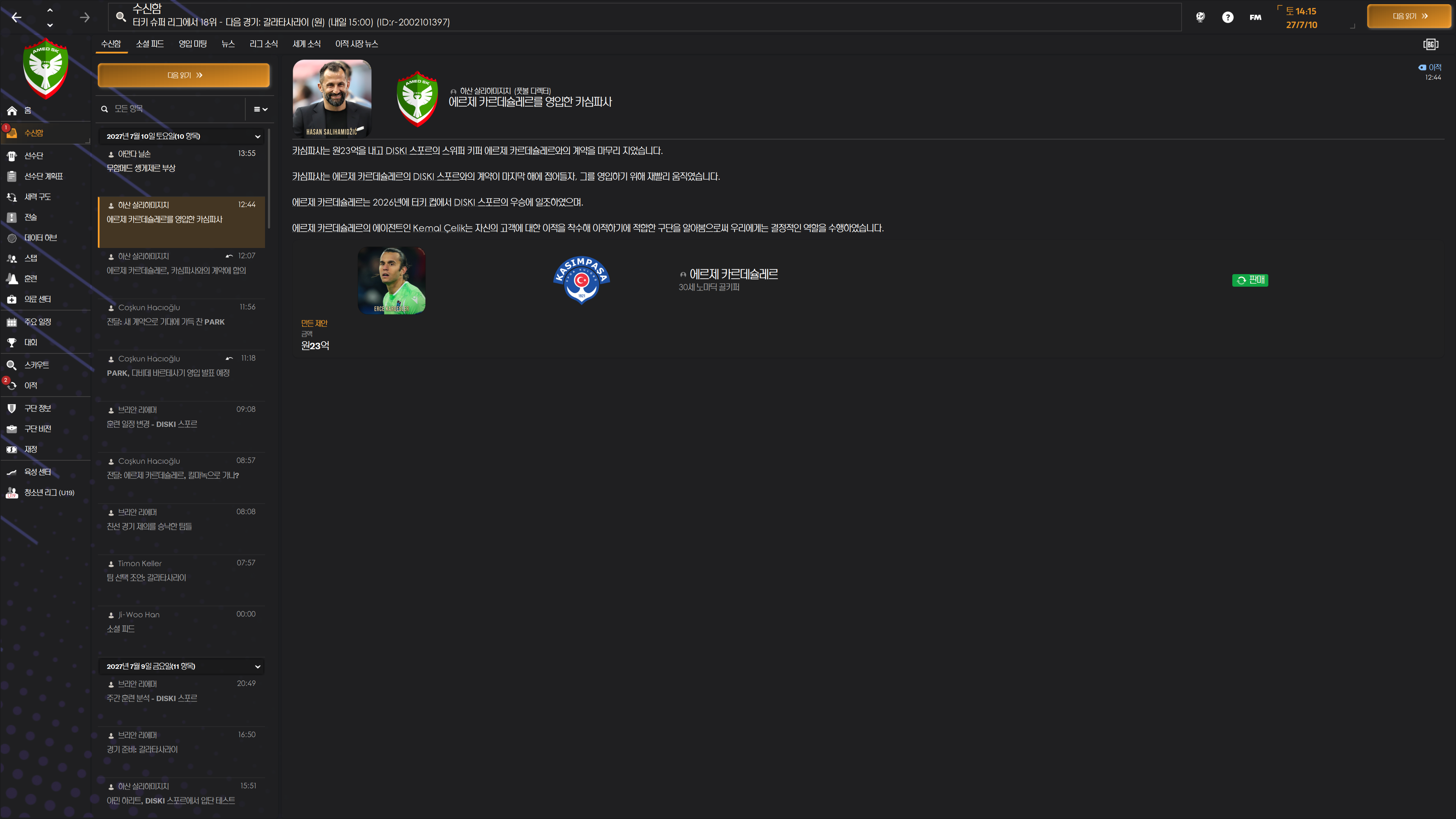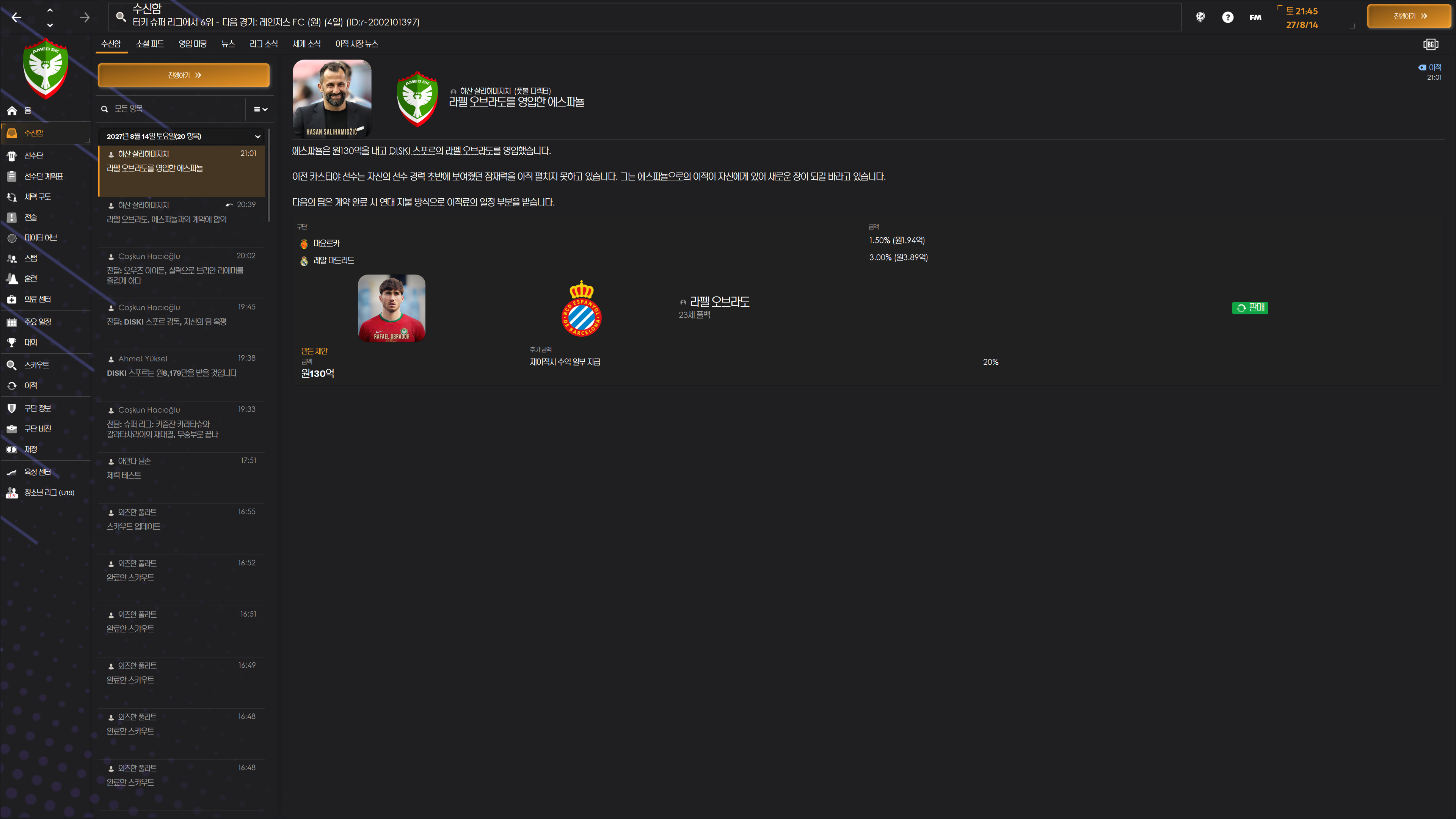 리버풀이라 고민했지만 스탯값 못하는 놈이니 그냥 팔고