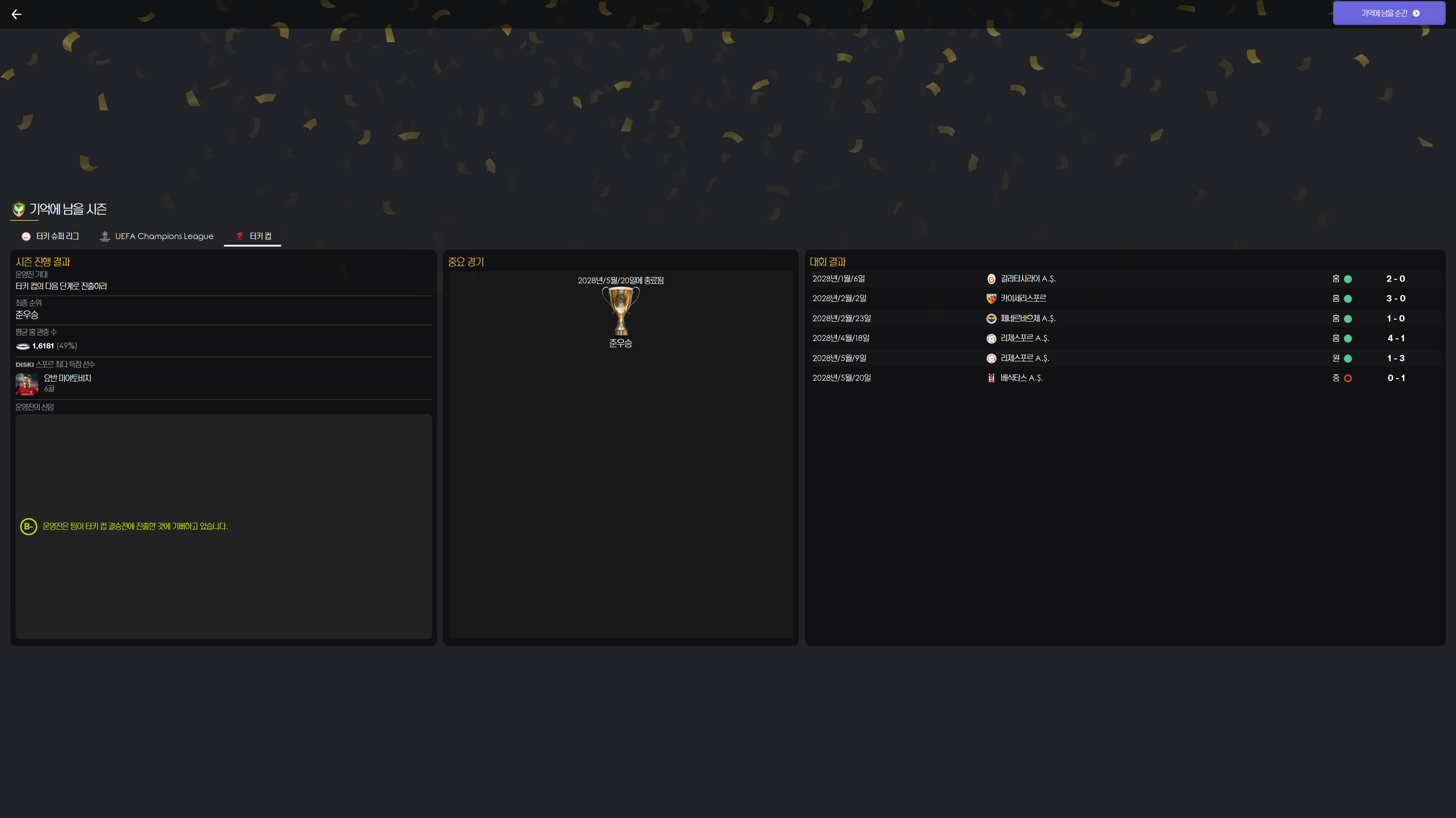 터키 컵 준우승으로 무관 달성