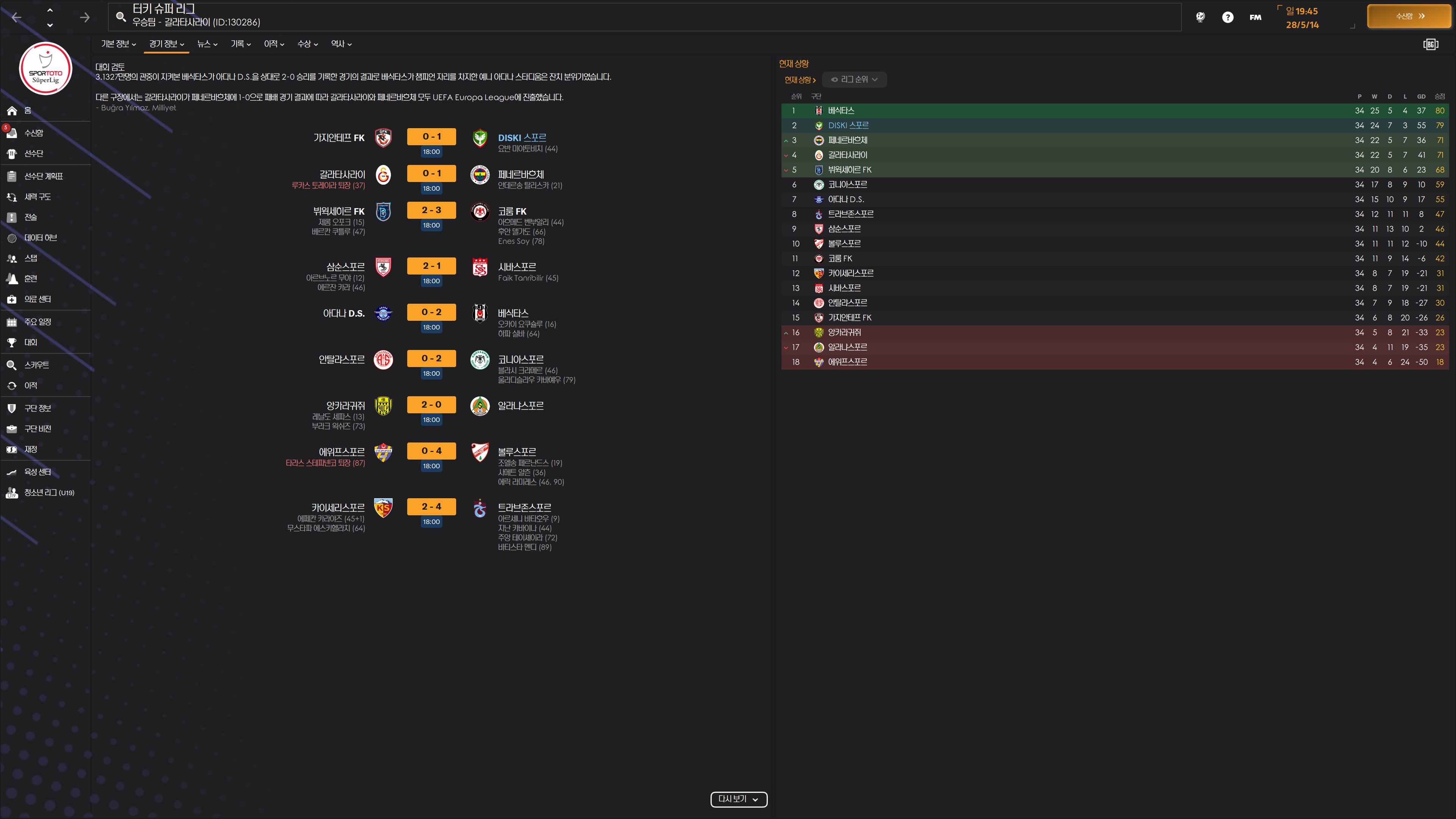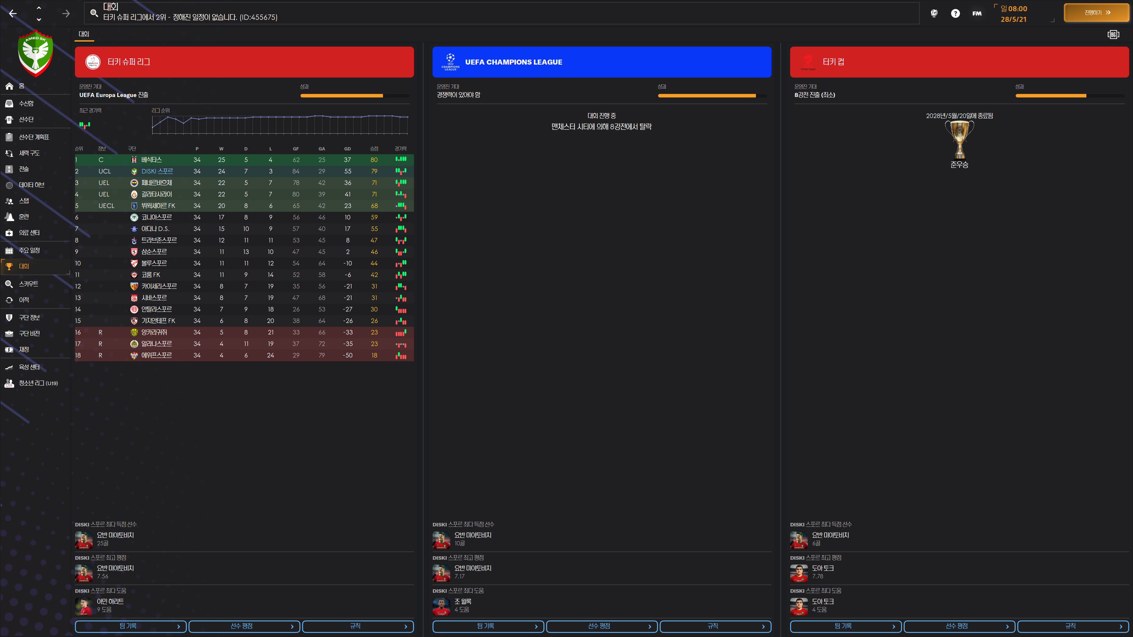 터키 컵 준결승은 2부 팀이라 생략