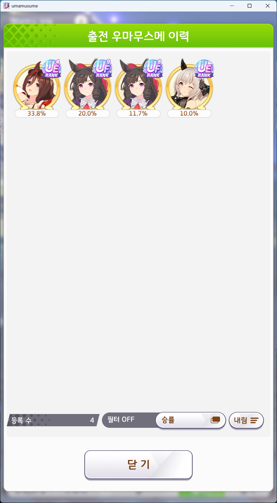 3녹딱의 힘인지 고유기 발동도 안하고 우승했다