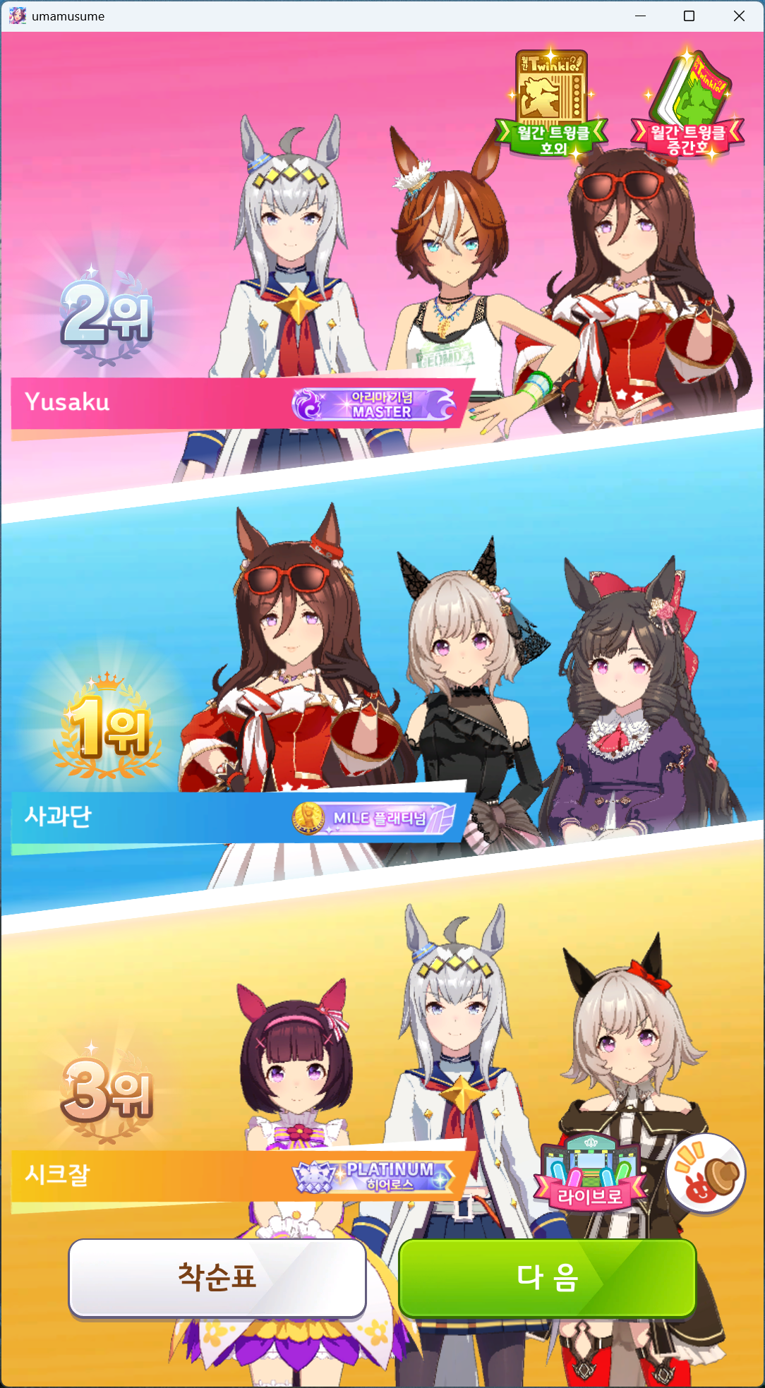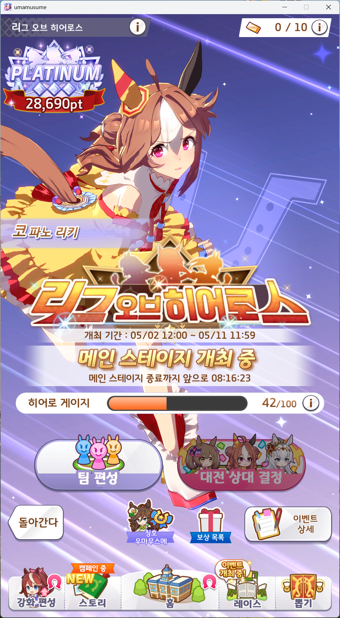 | 우마무스메 프리티 더비 4회차 리그 오브 히어로스 플래티넘4 (0) | 2025.03.10 |