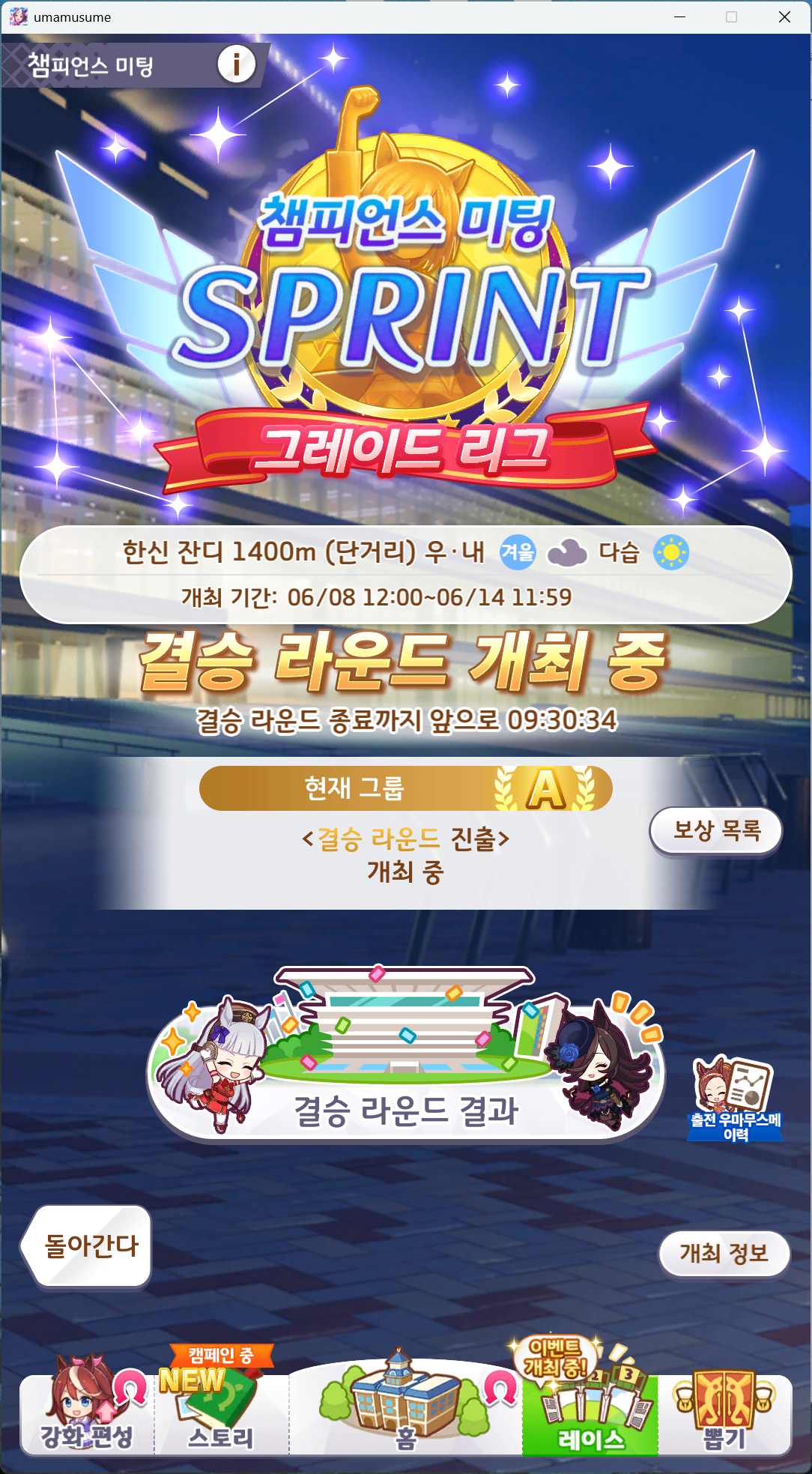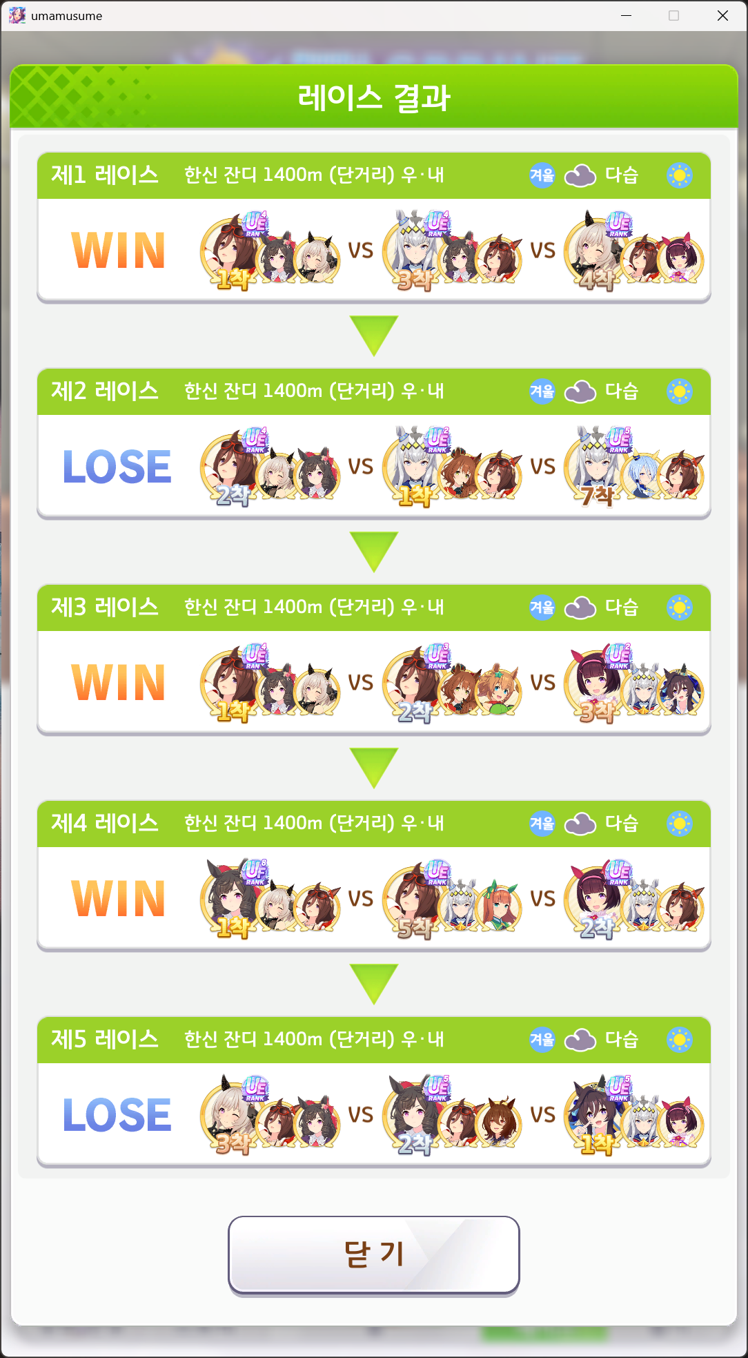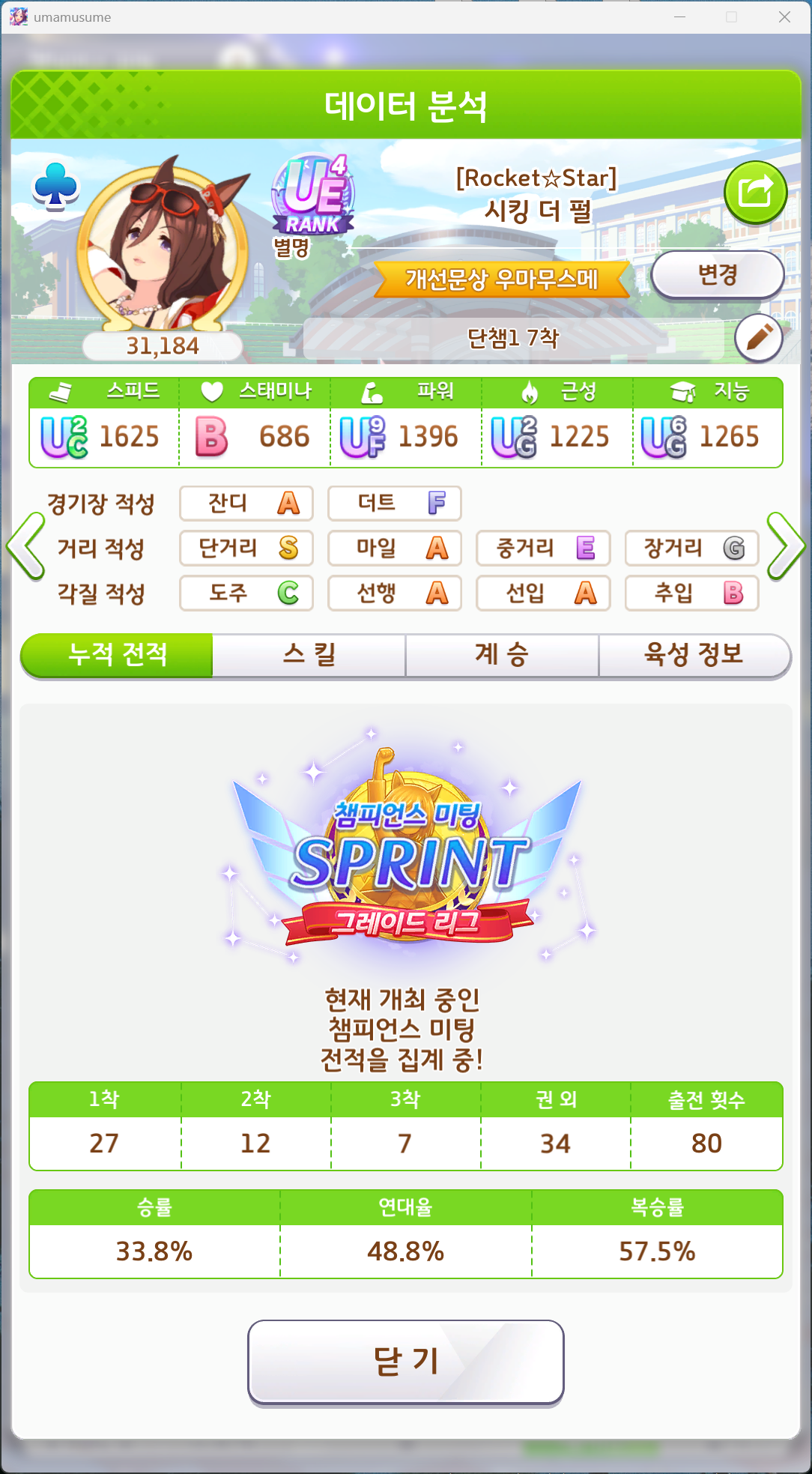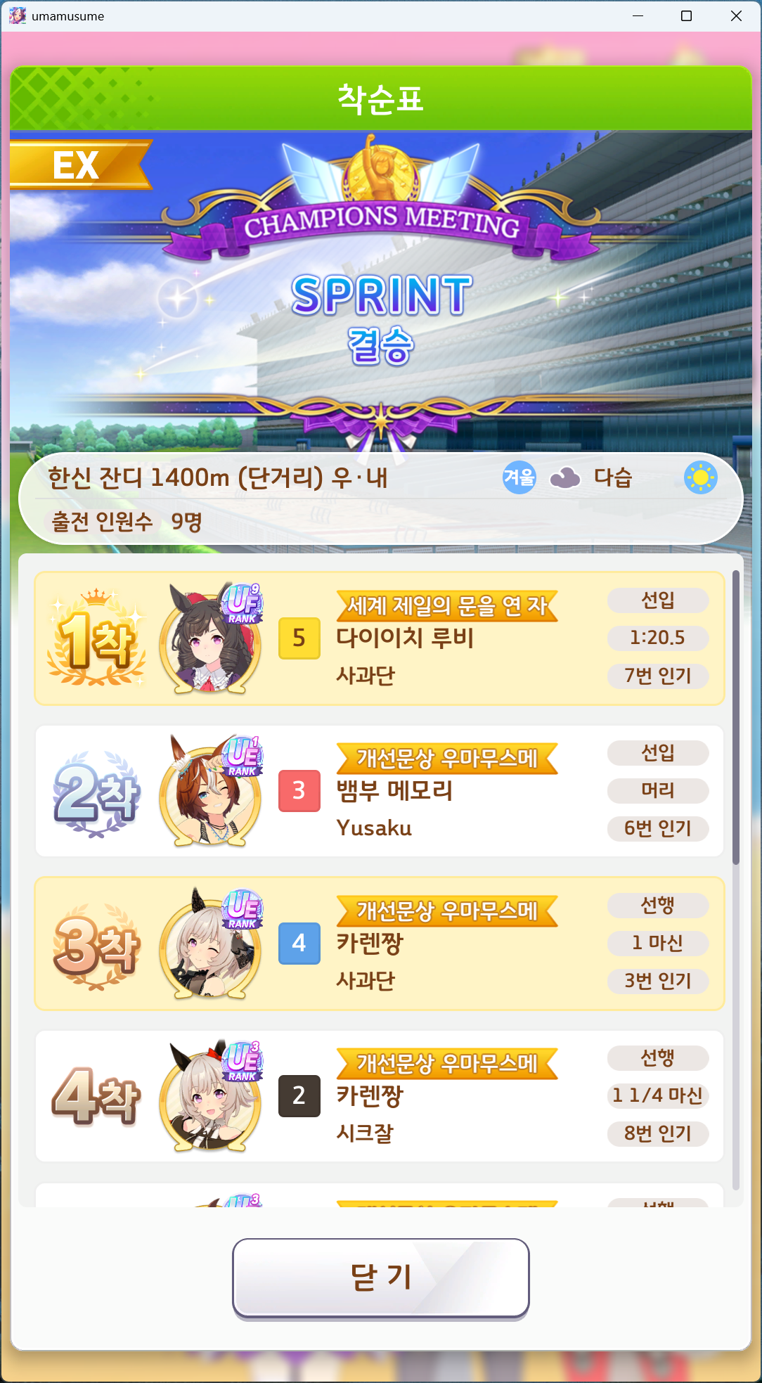 유일하게 우승 못해본 단거리 챔미 성불하고 7관 달성