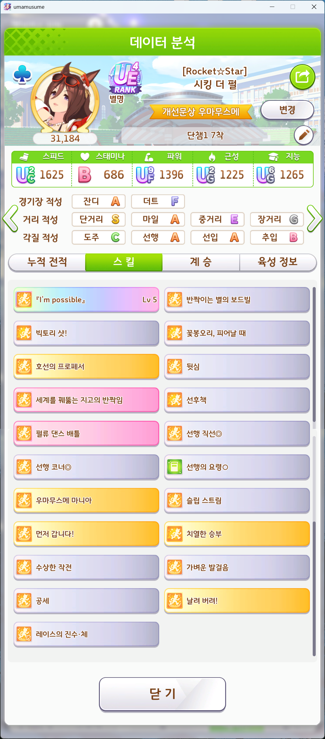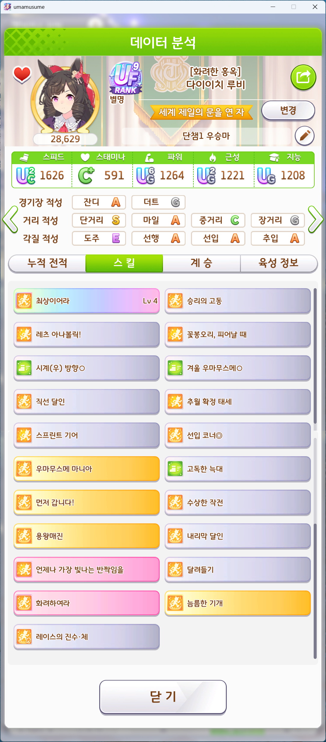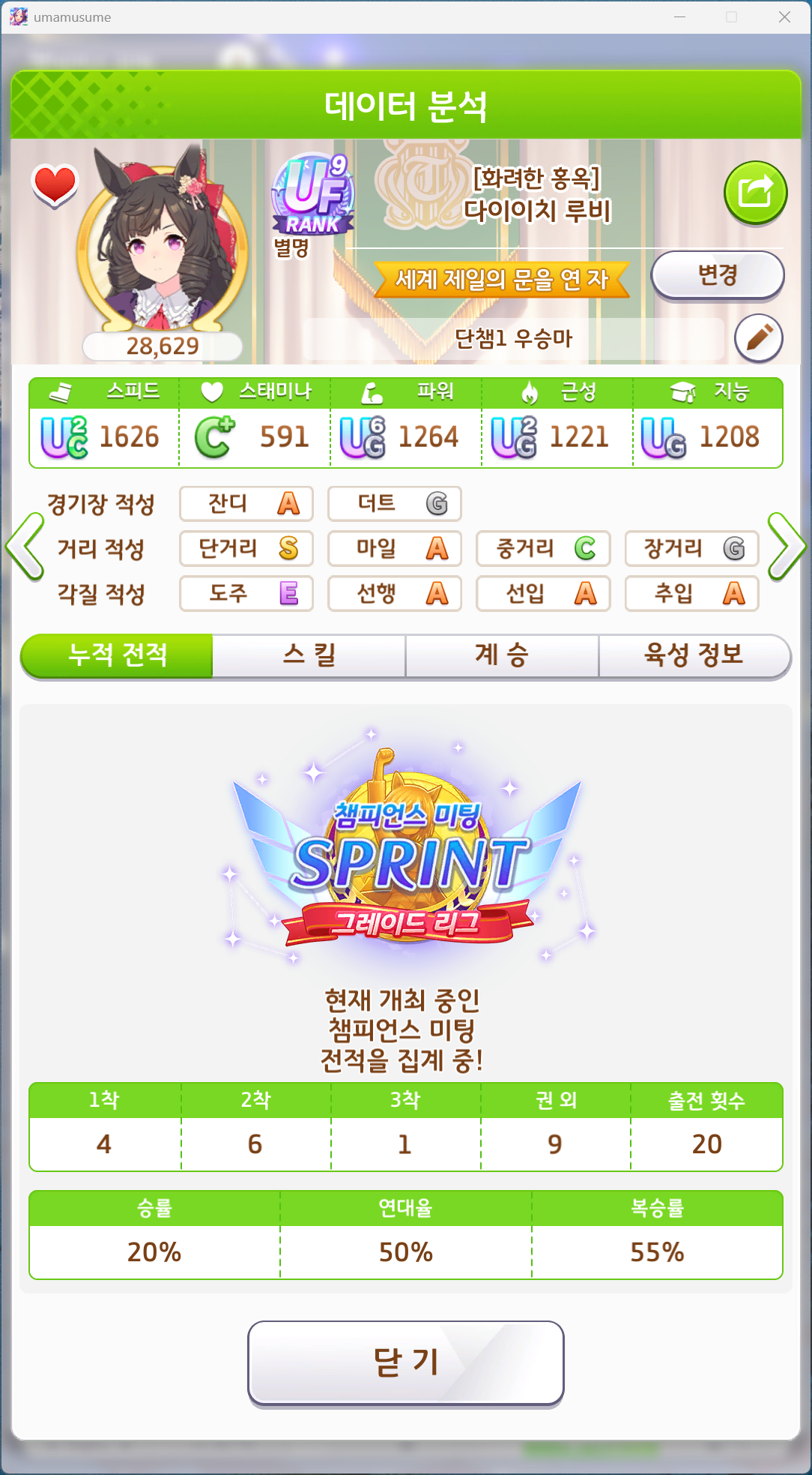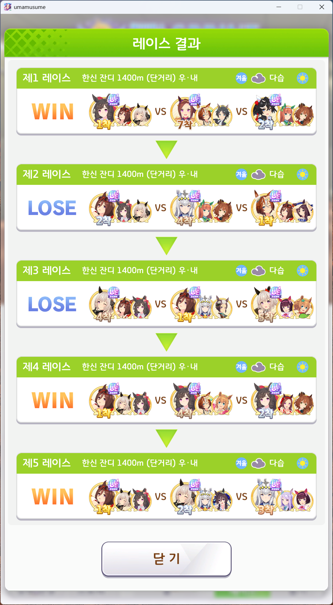 유일하게 우승 못해본 단거리 챔미 성불하고 7관 달성