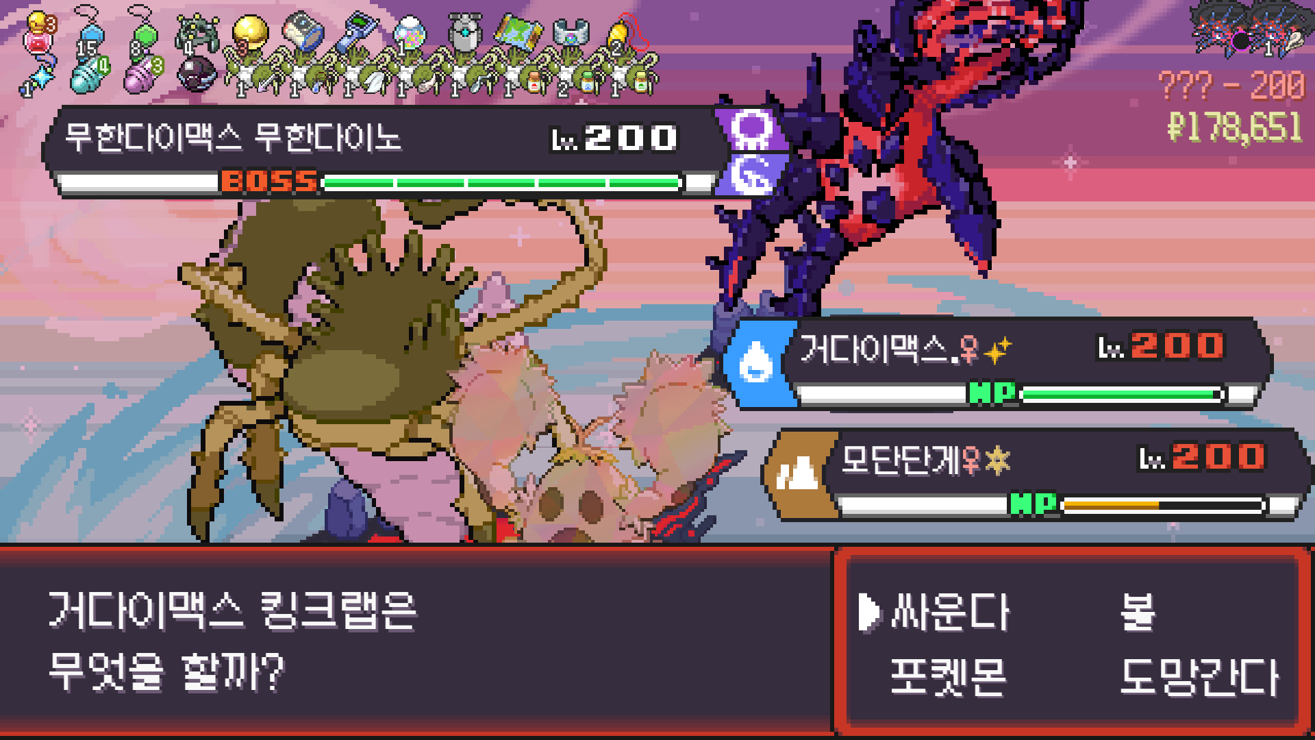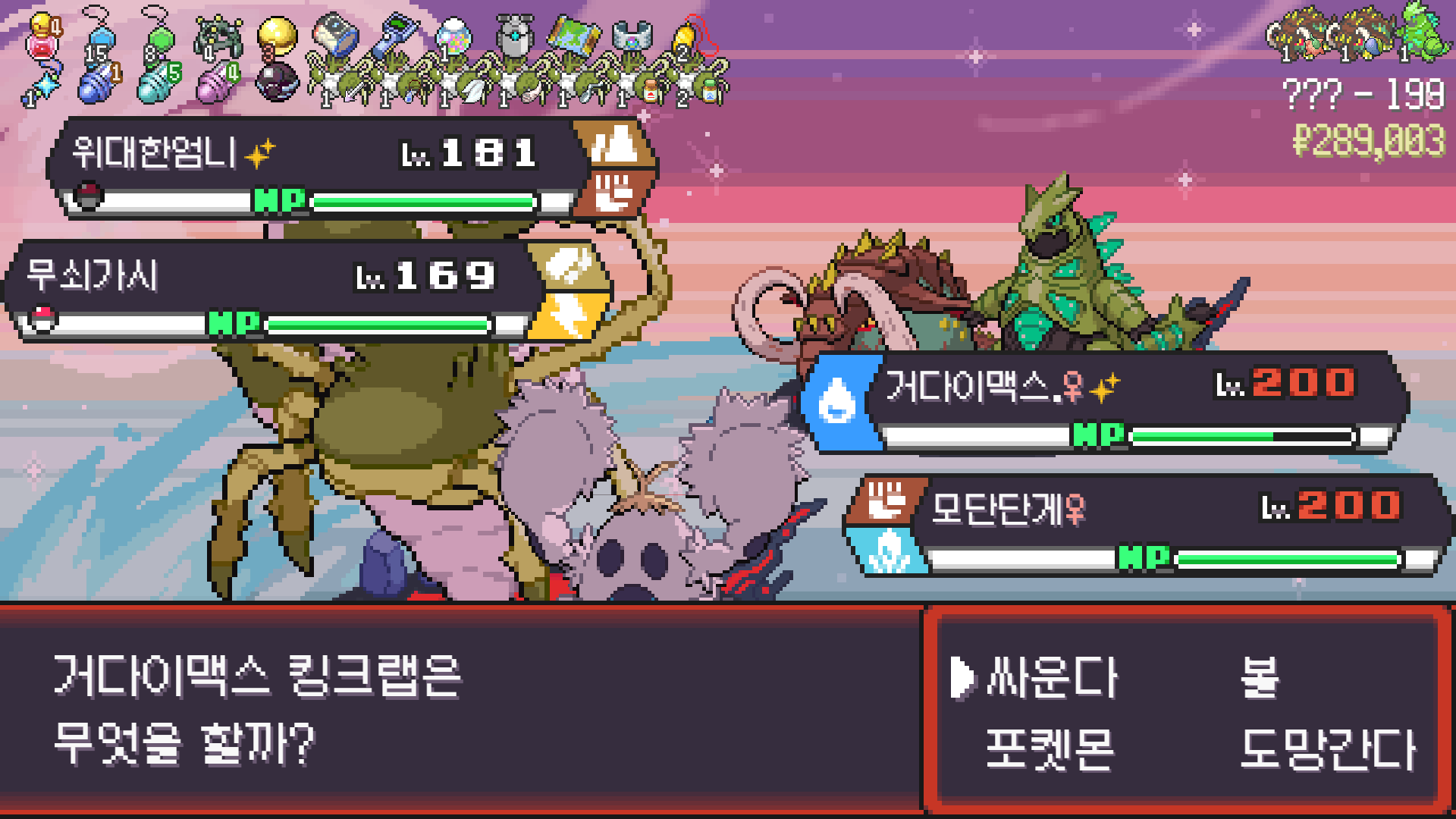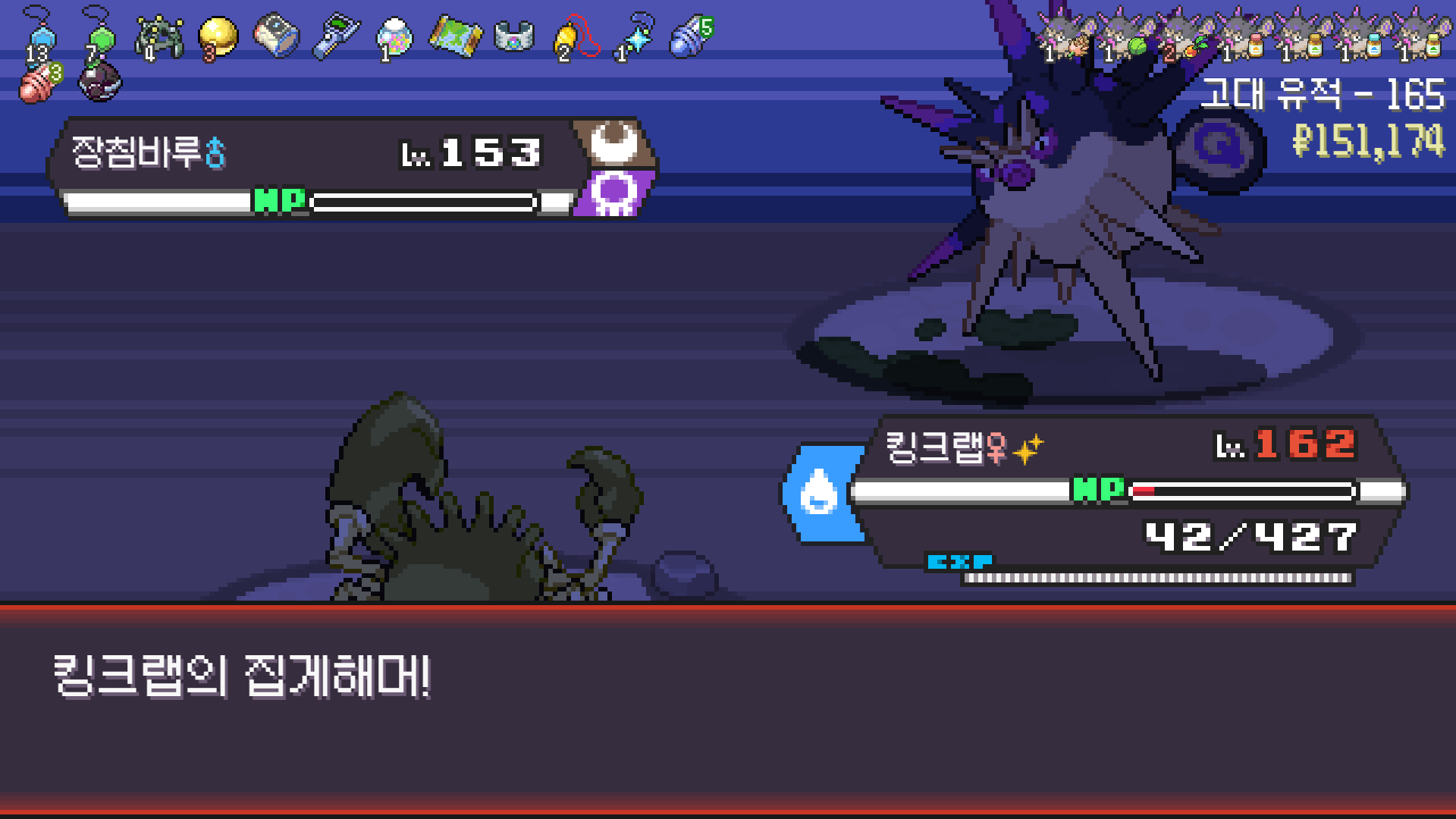 모단단게로 방어 깎고 거다이맥스 킹크랩으로 뚜까패면