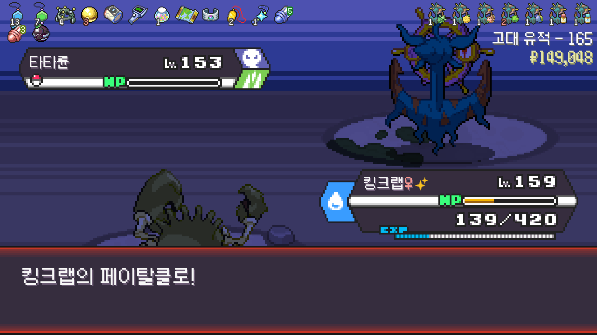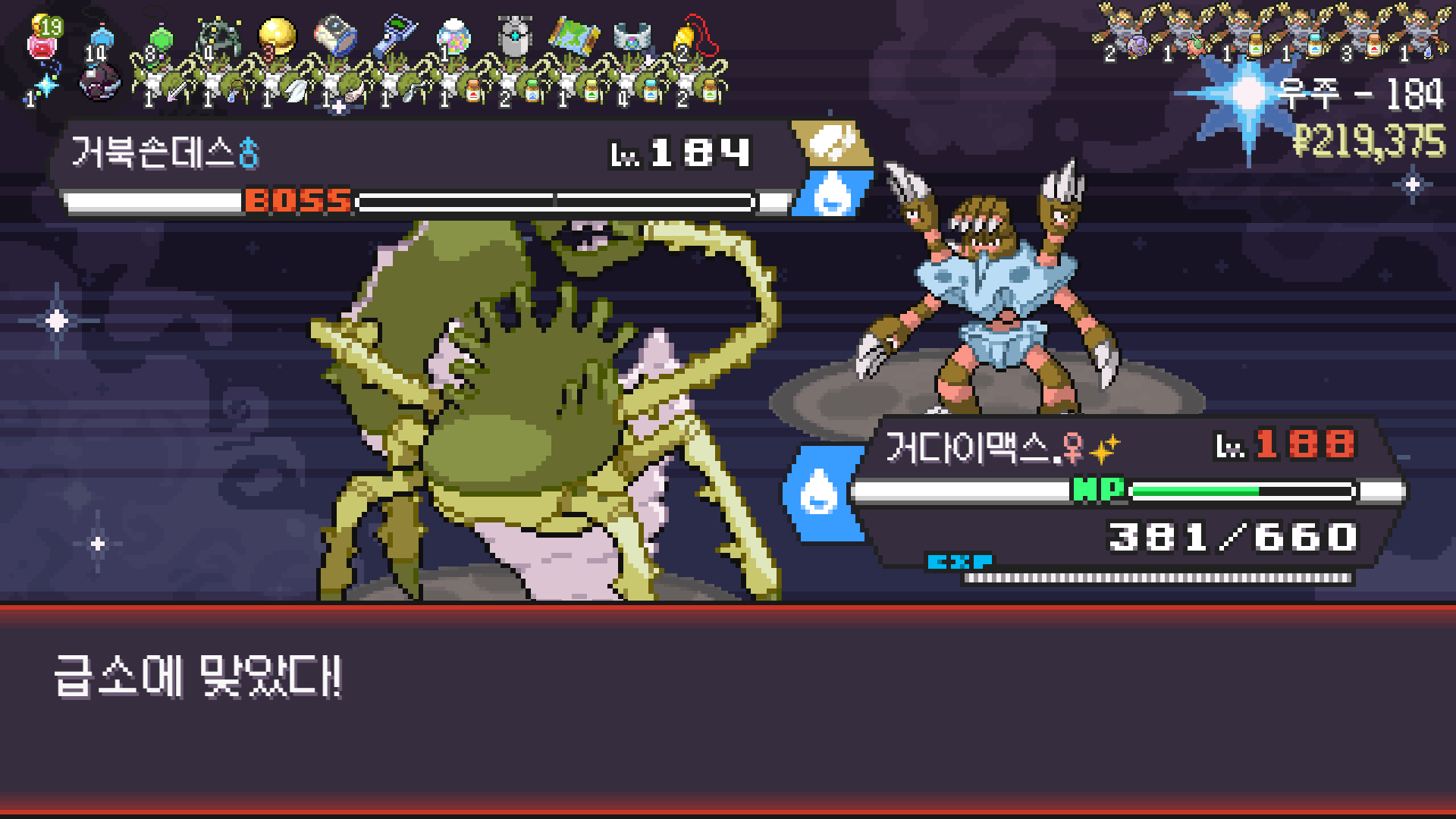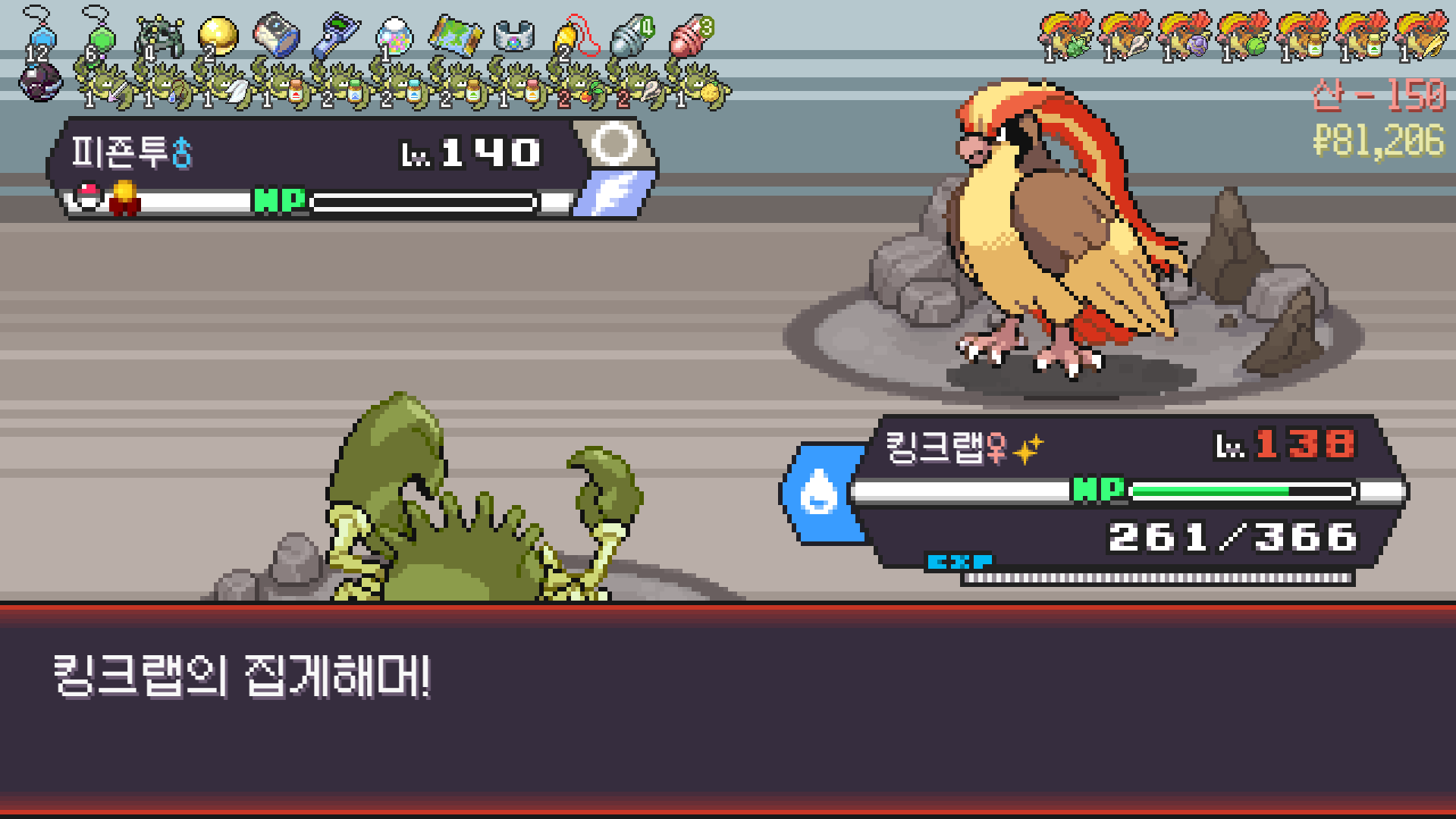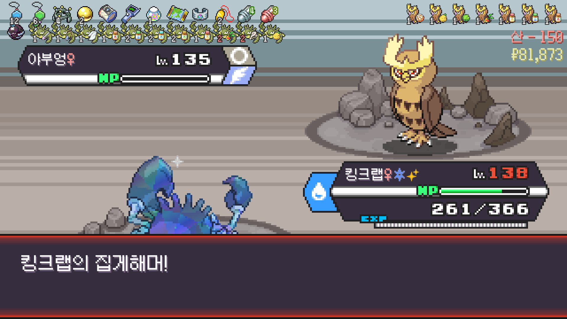 모단단게로 방어 깎고 거다이맥스 킹크랩으로 뚜까패면