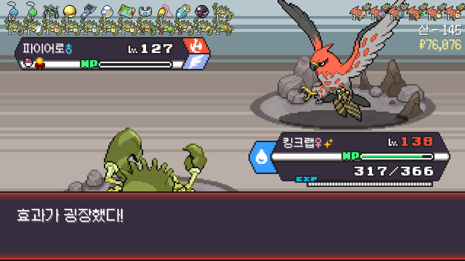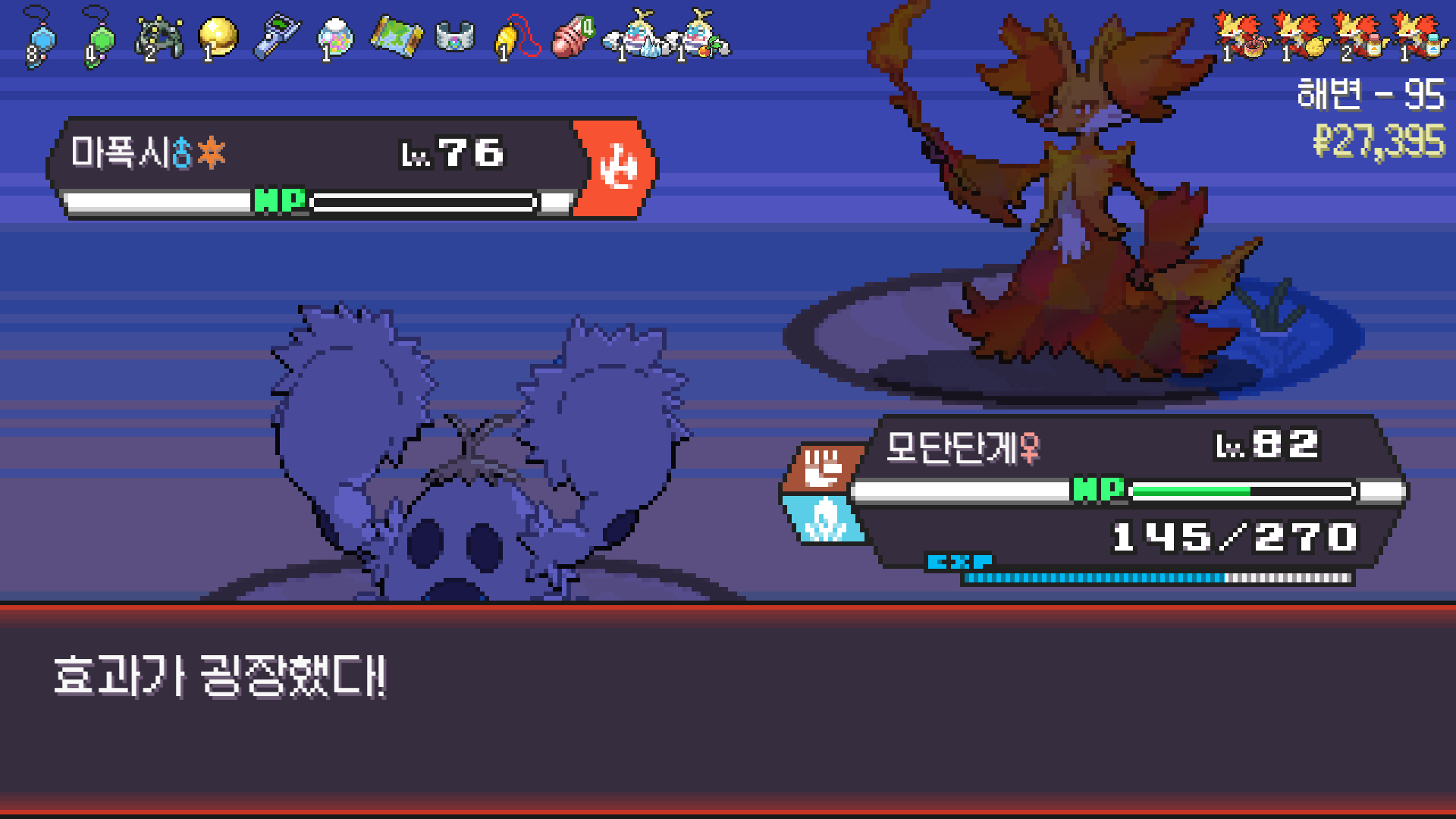 전기 포켓몬도 거의 안 나오고 혐라도스 위협도 괴력집게로 막아져서 클린했다