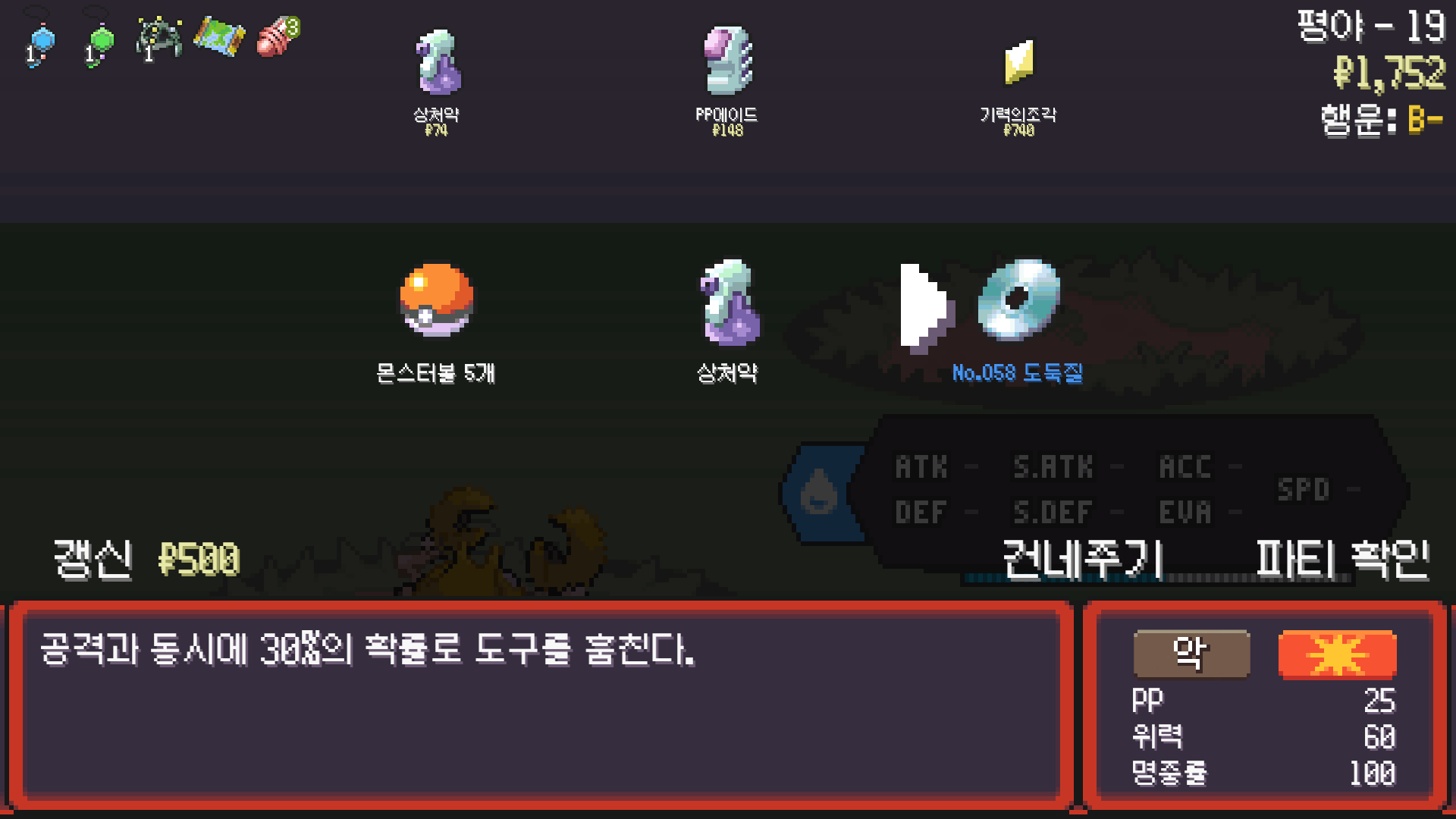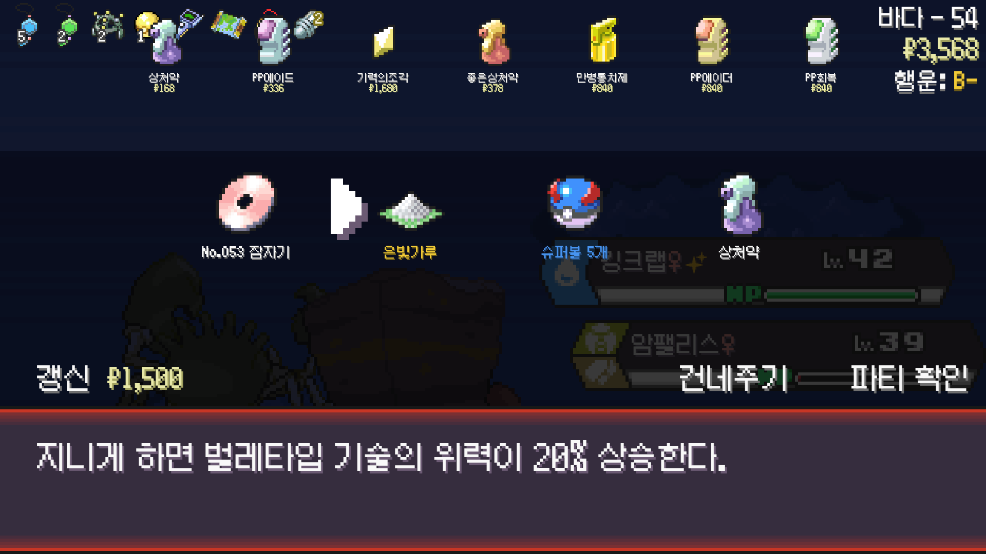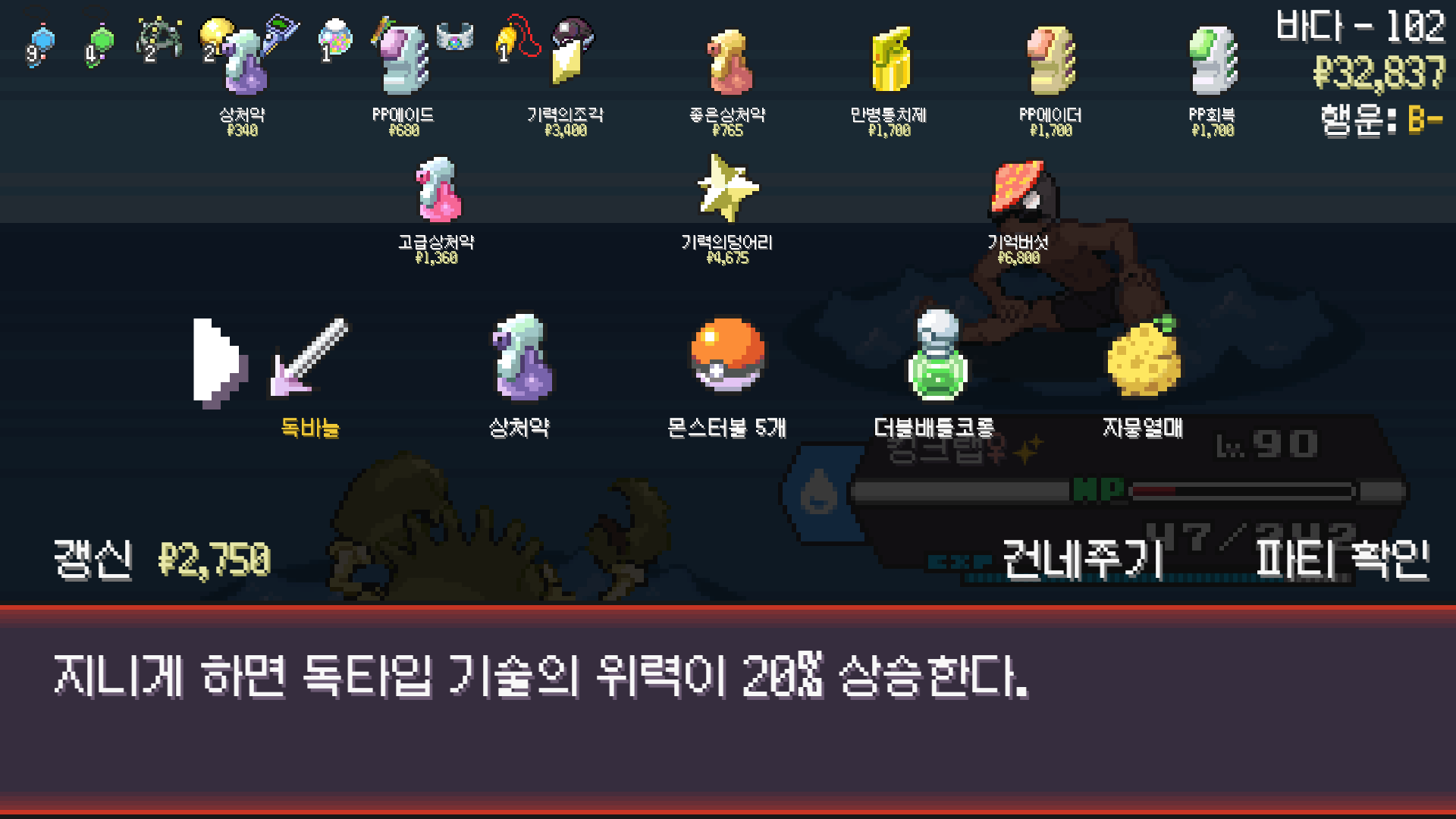메더 잡아와서 3마리 전부 물약점 ㅋㅋ