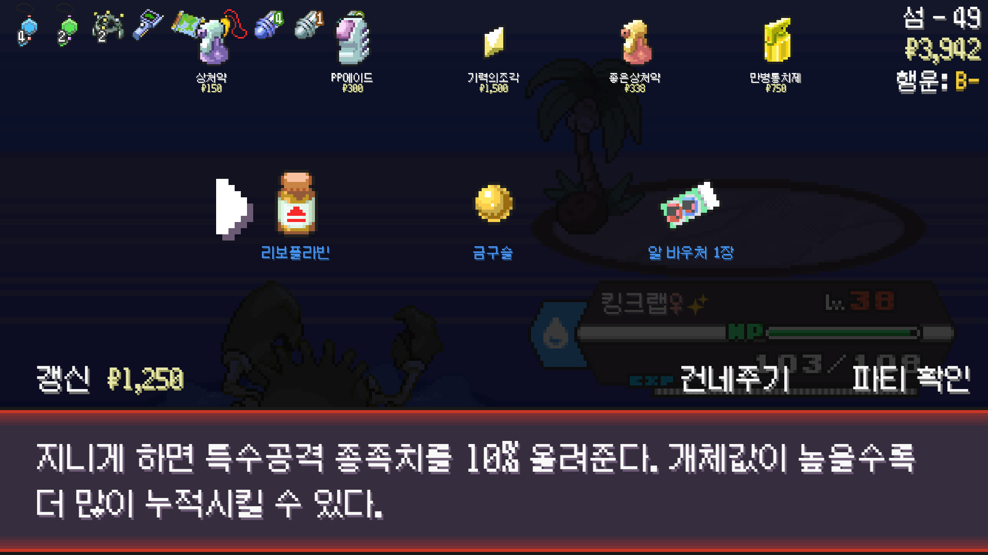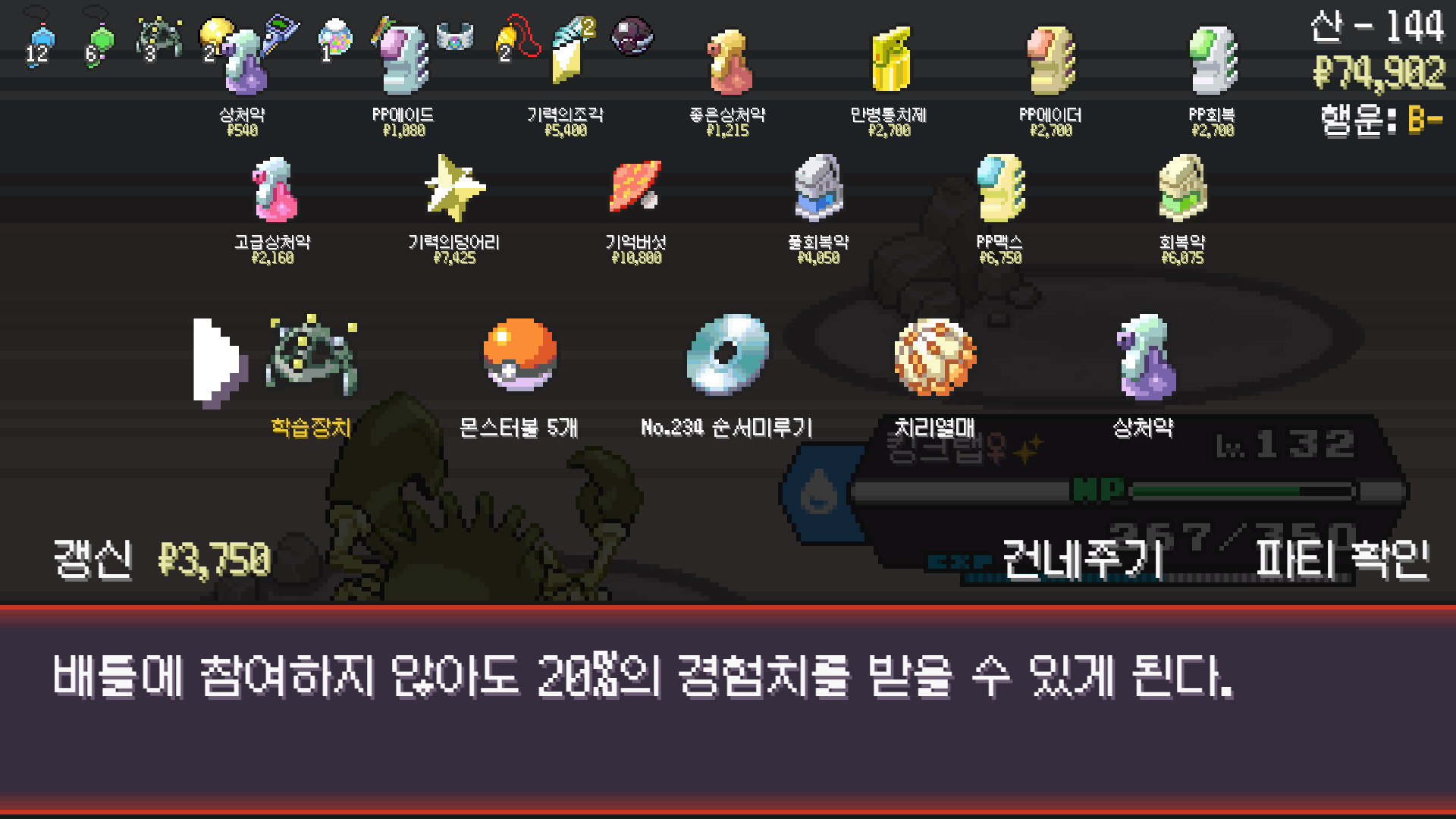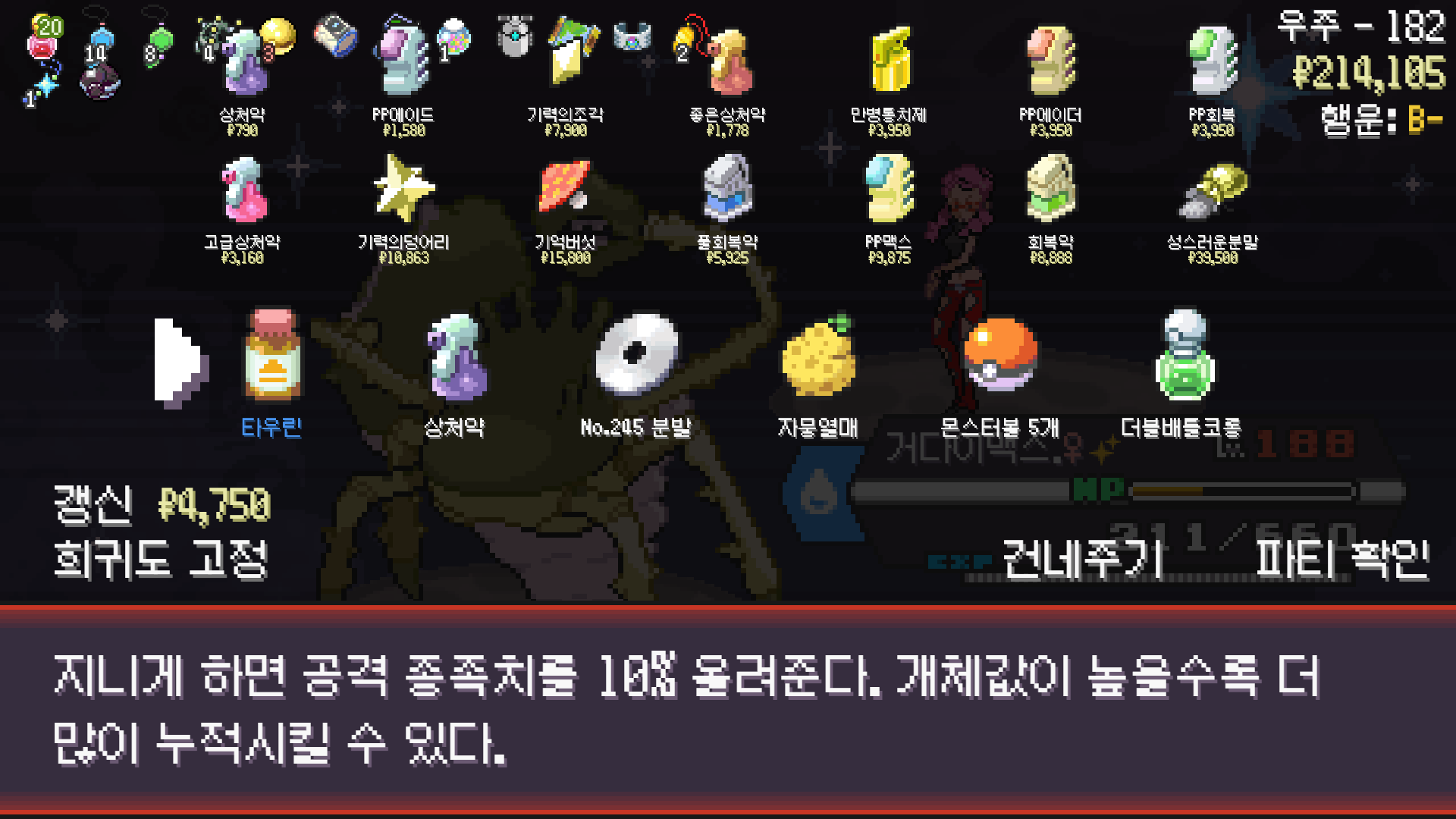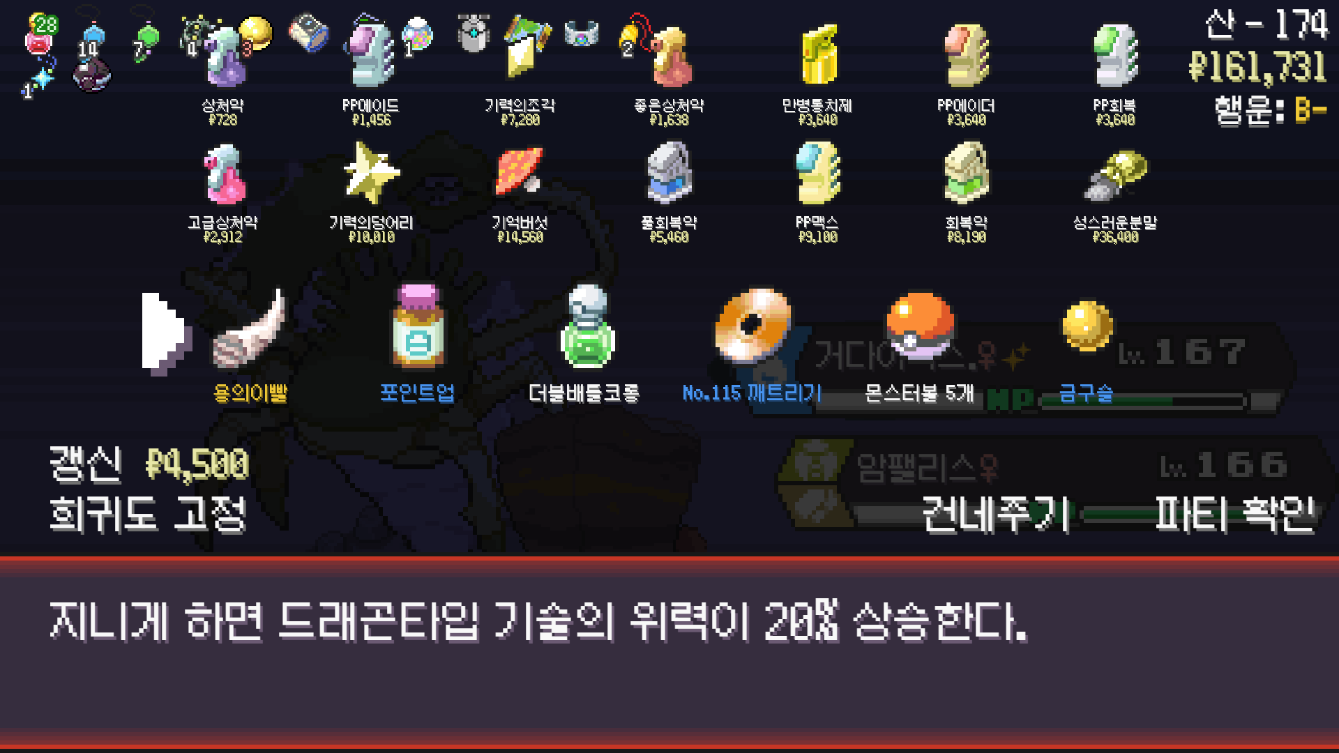 메더 잡아와서 3마리 전부 물약점 ㅋㅋ