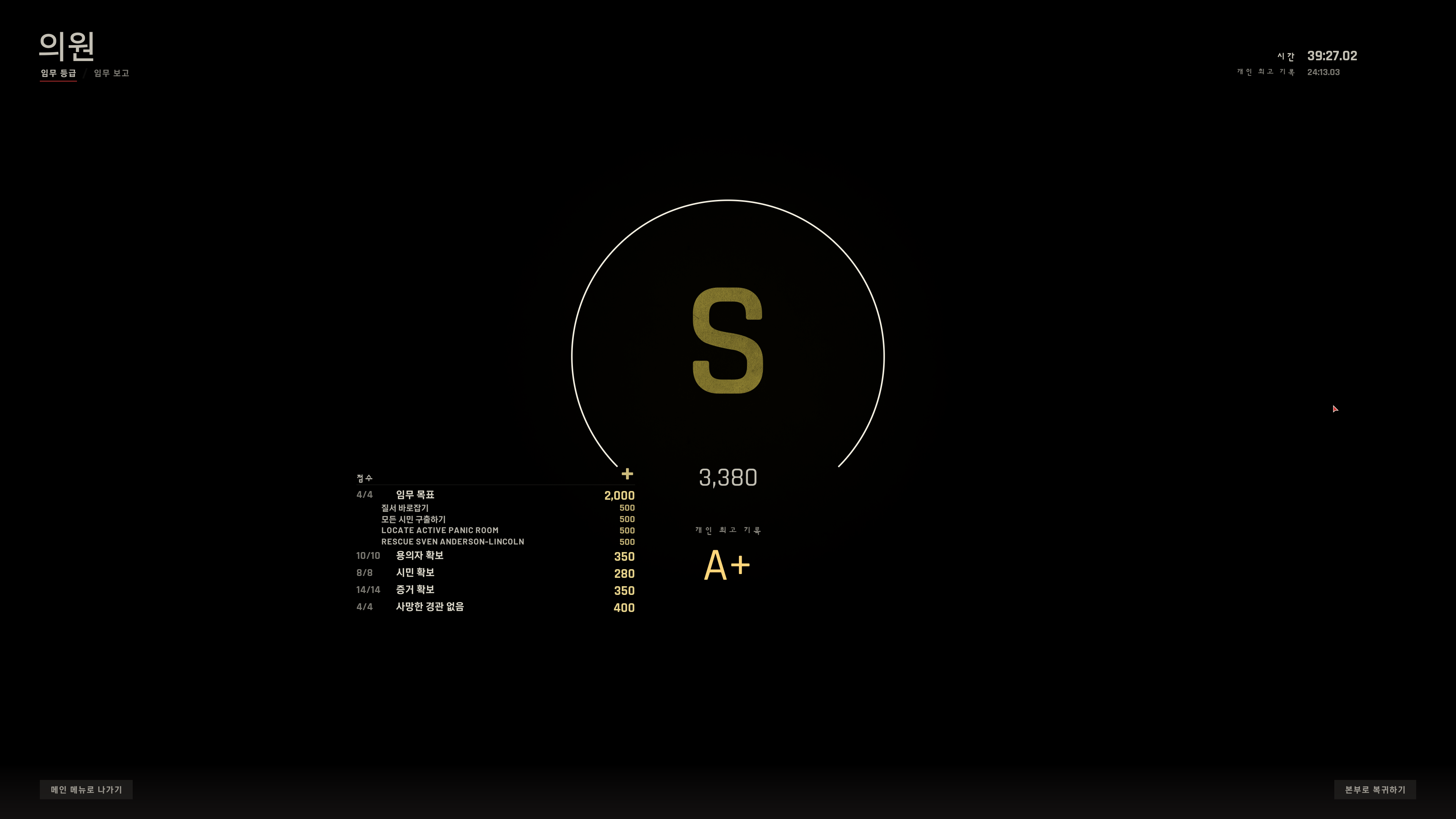 Hidden and Dangerous 도전과제는 S랭크 받으면 같이 깨져서 신경x