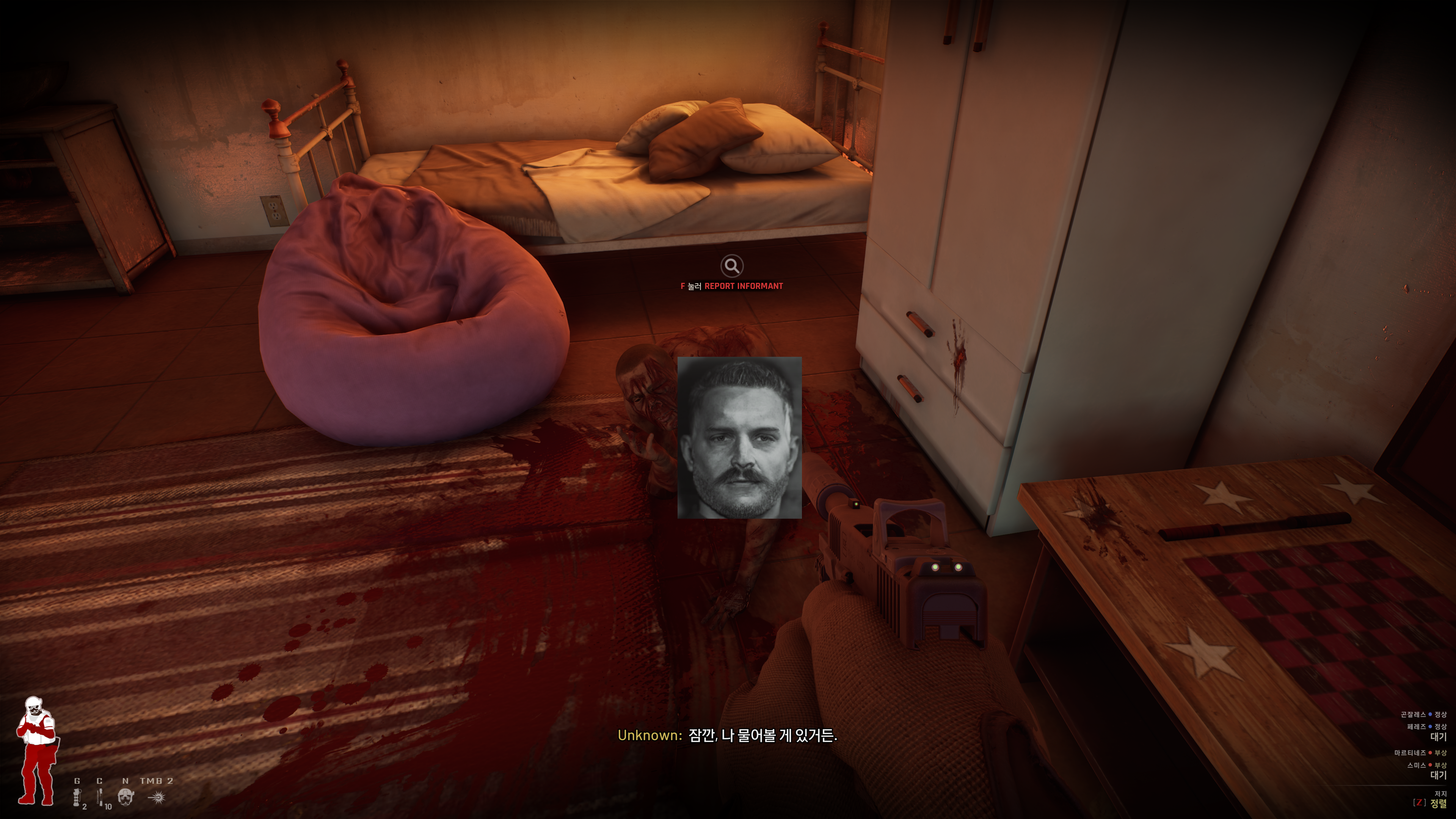 사용 장비는 페퍼건 + 섬광유탄, AI는 페퍼 + 전술방패