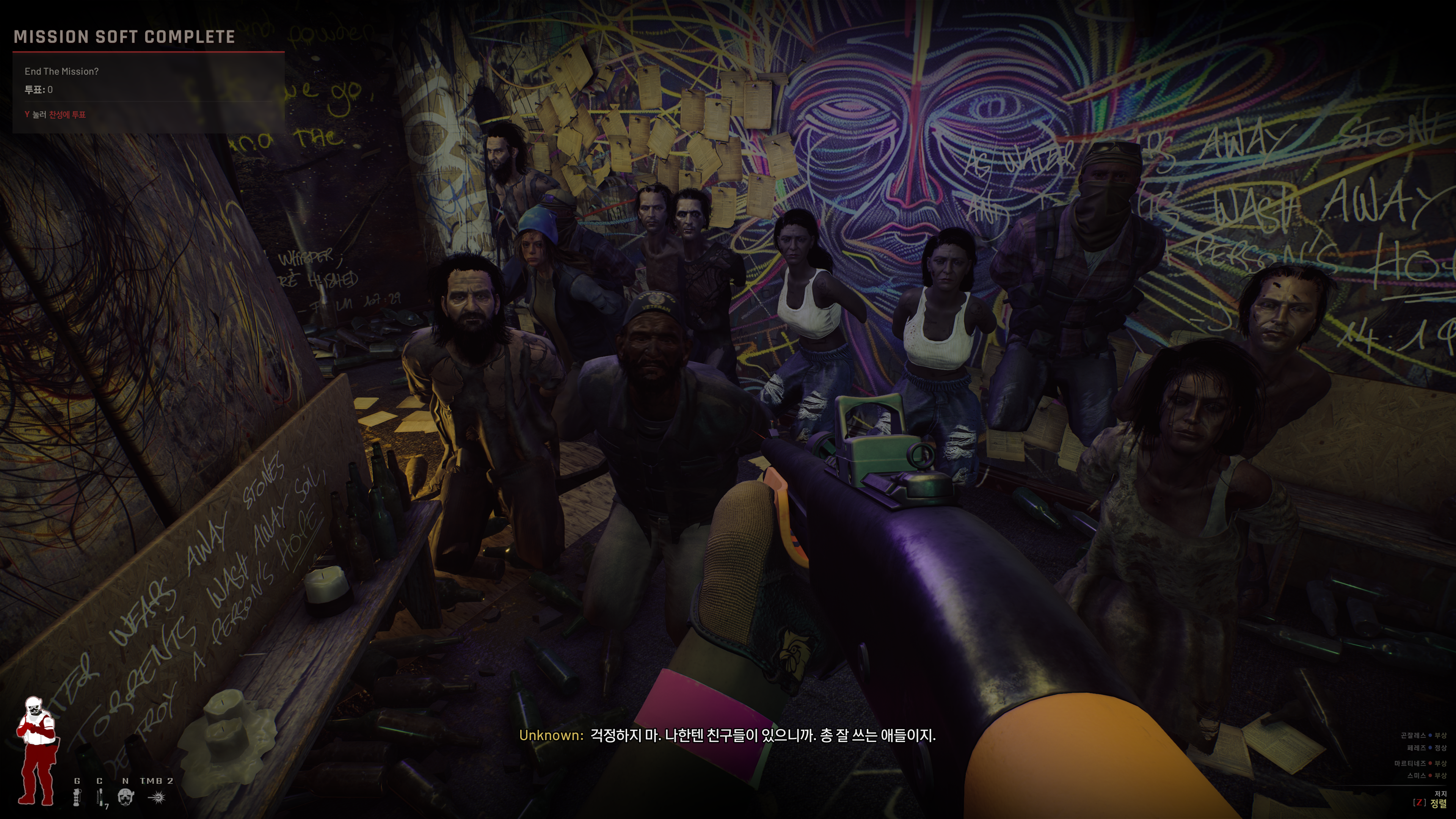 샷건에 돌파용 산탄총들고 후문으로 진입해서 NPC들 모여있기를 기도하고