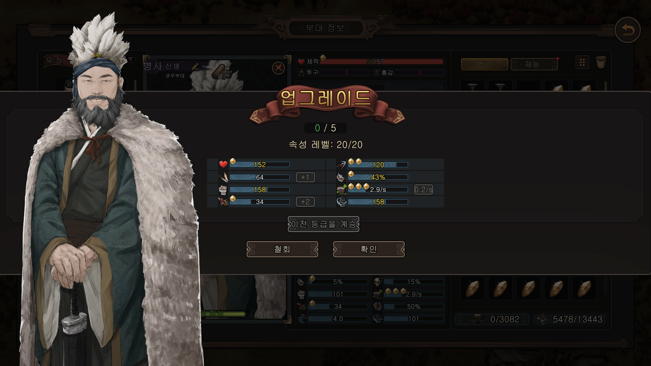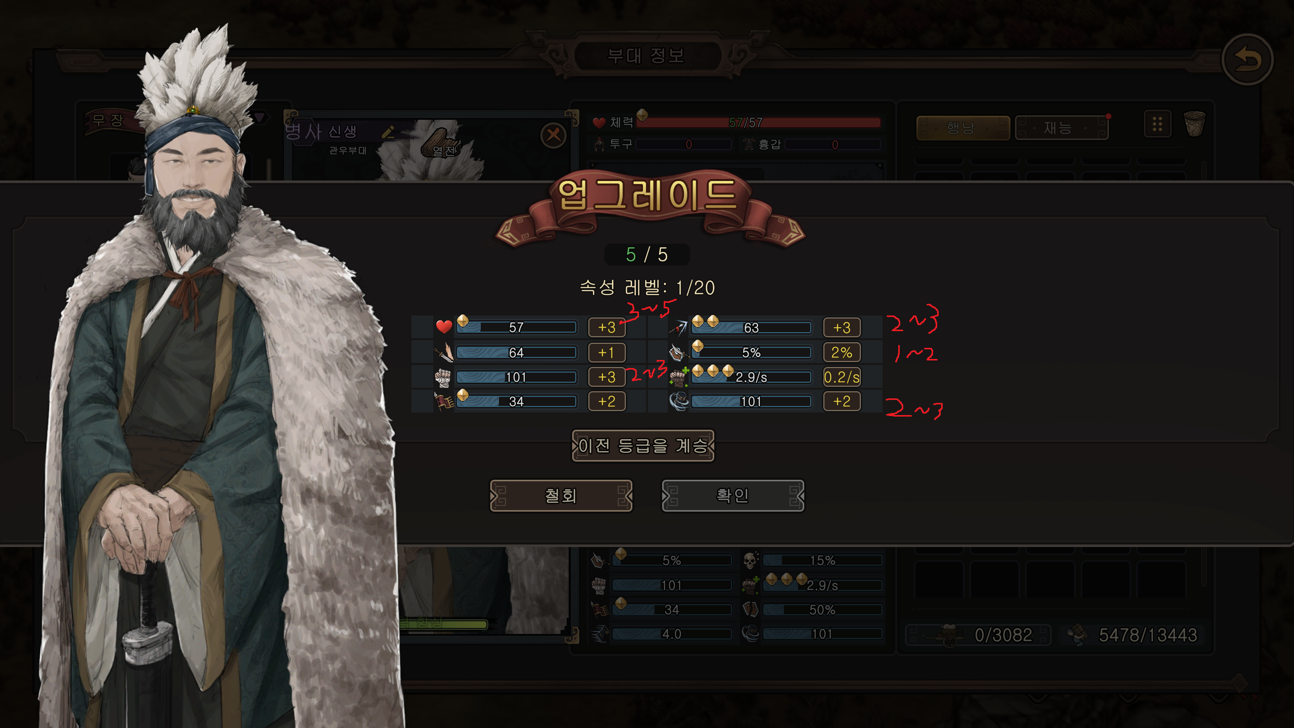 내가 찍고 싶은 스탯들(체력,기력,장병기숙련,막기,회전속도)이 올라가면 밑준비가 끝났으니