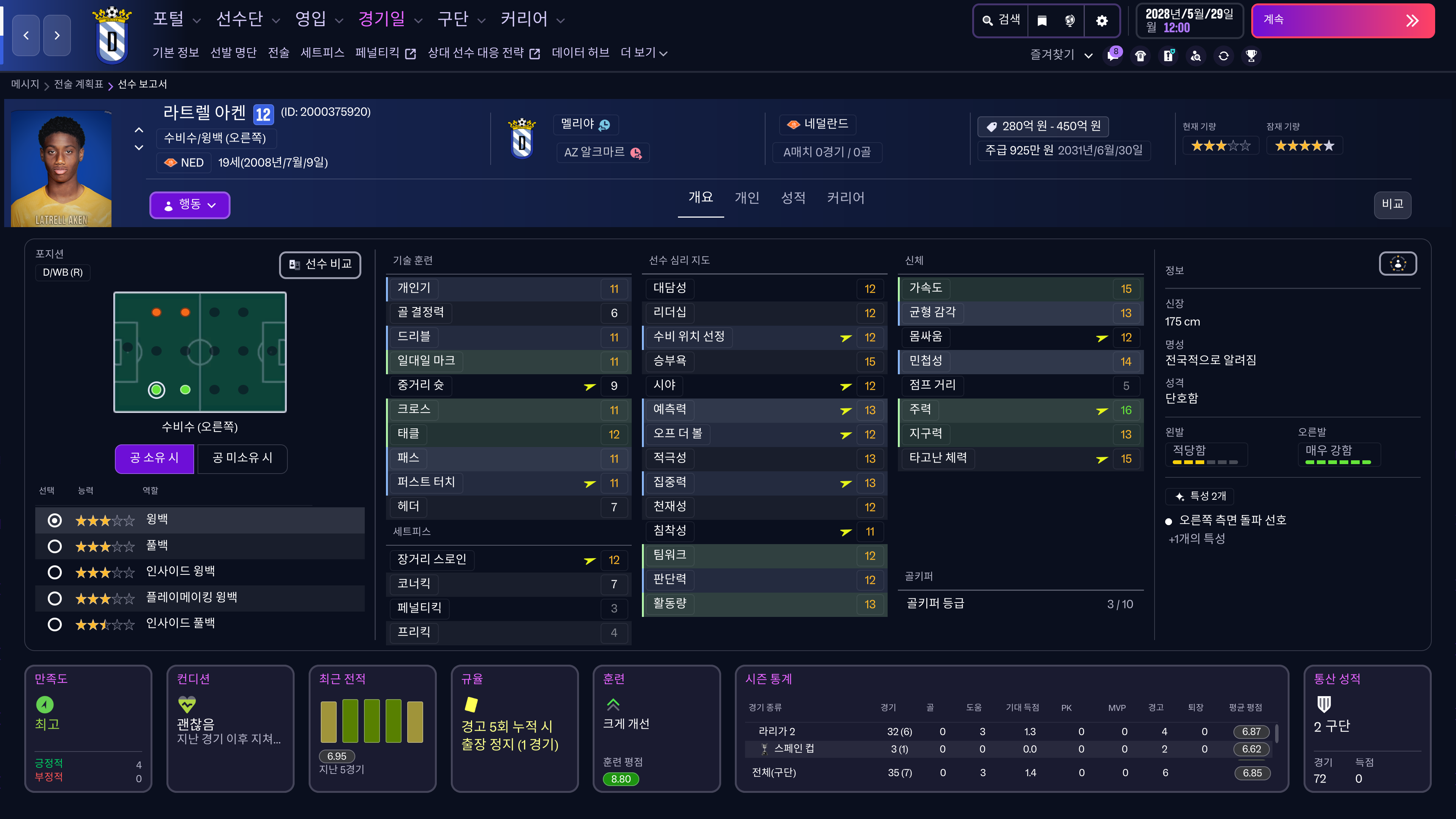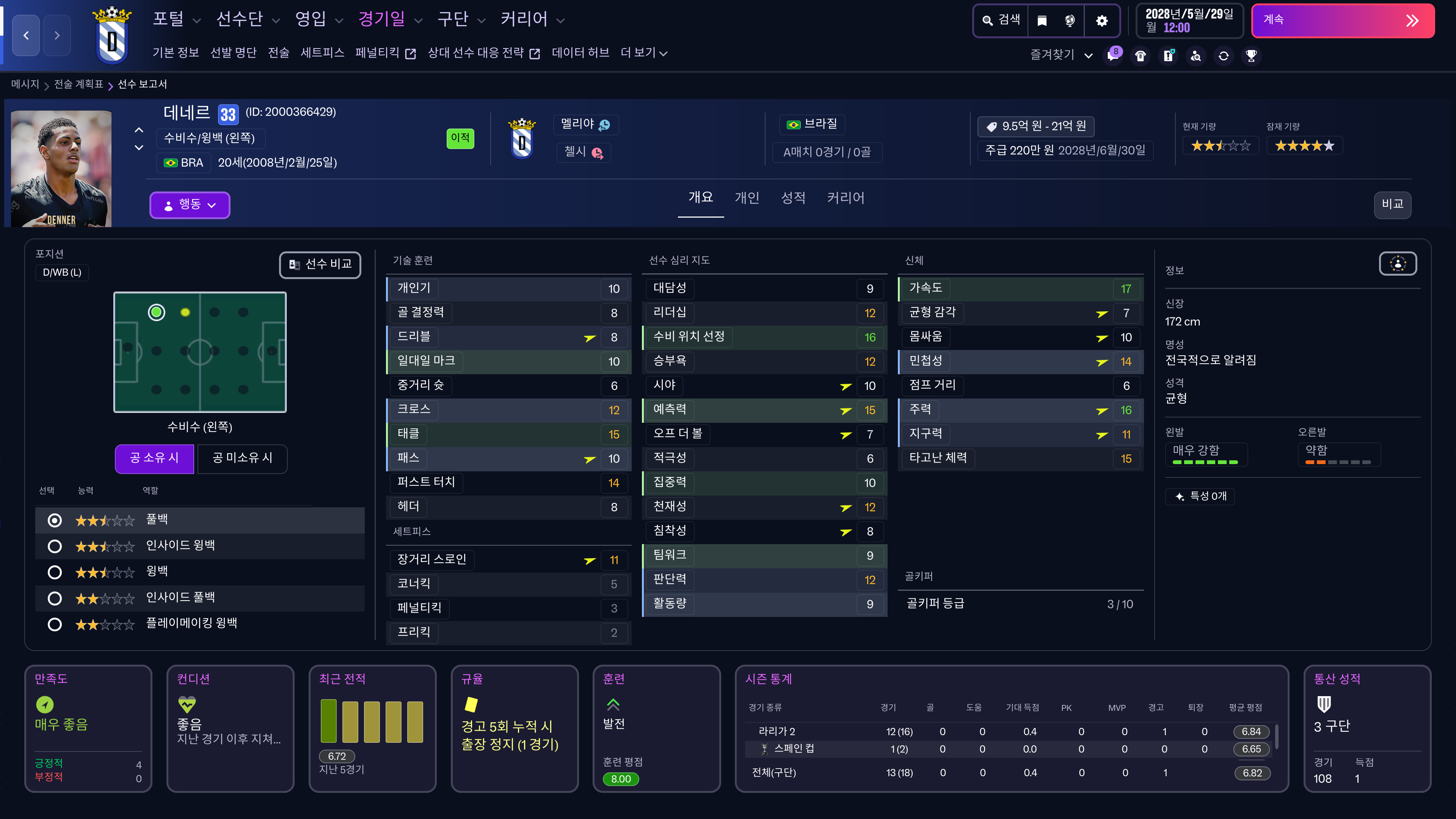 수비 스탯만 짱짱해지는 데네르
