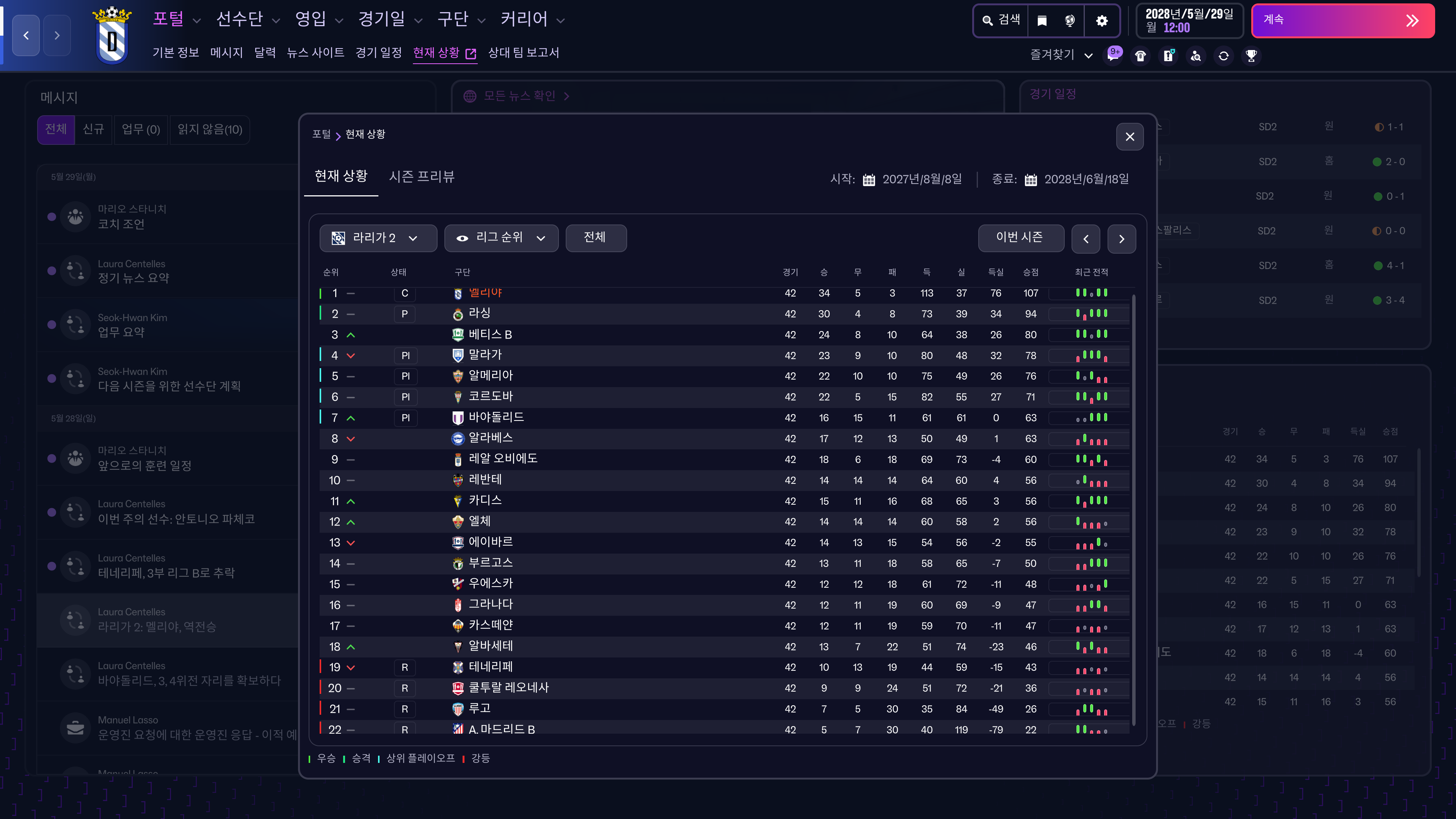 2027-28 시즌 라리가2 리그 최종 순위