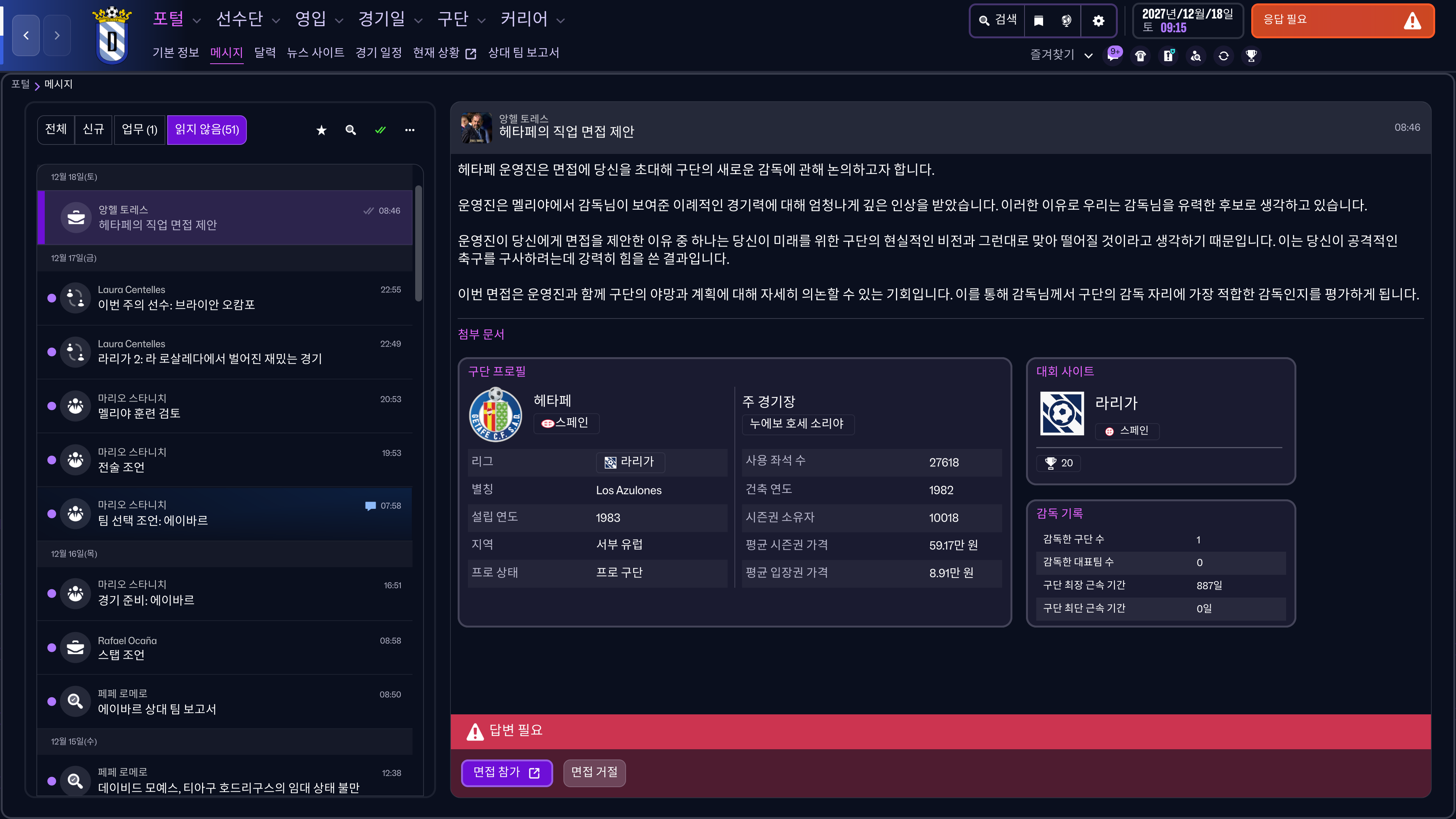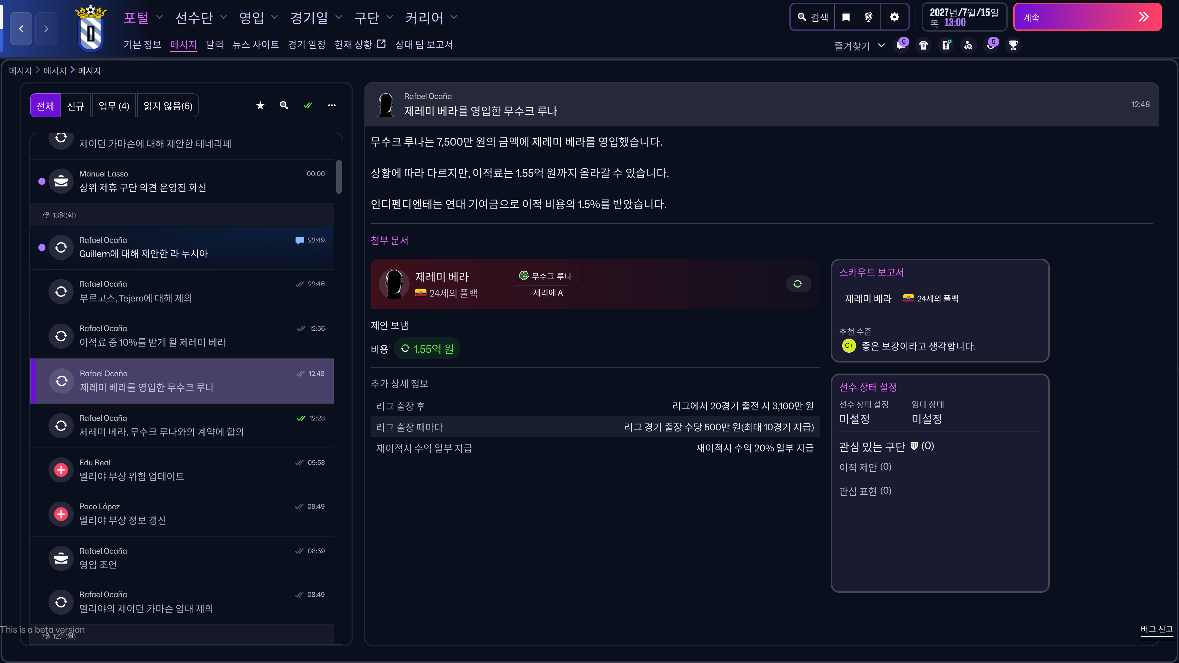 1부 팀에서 오는 오퍼