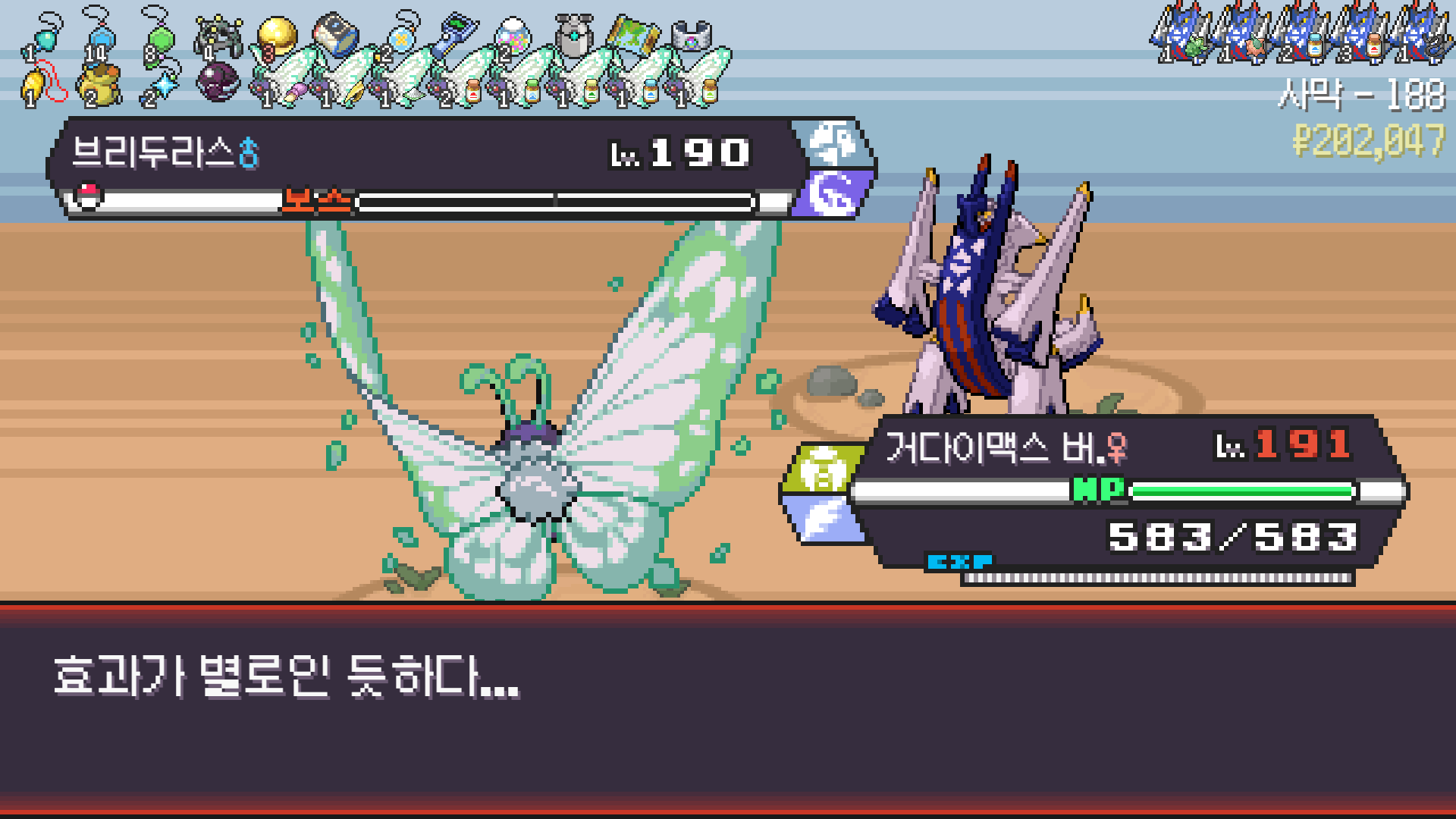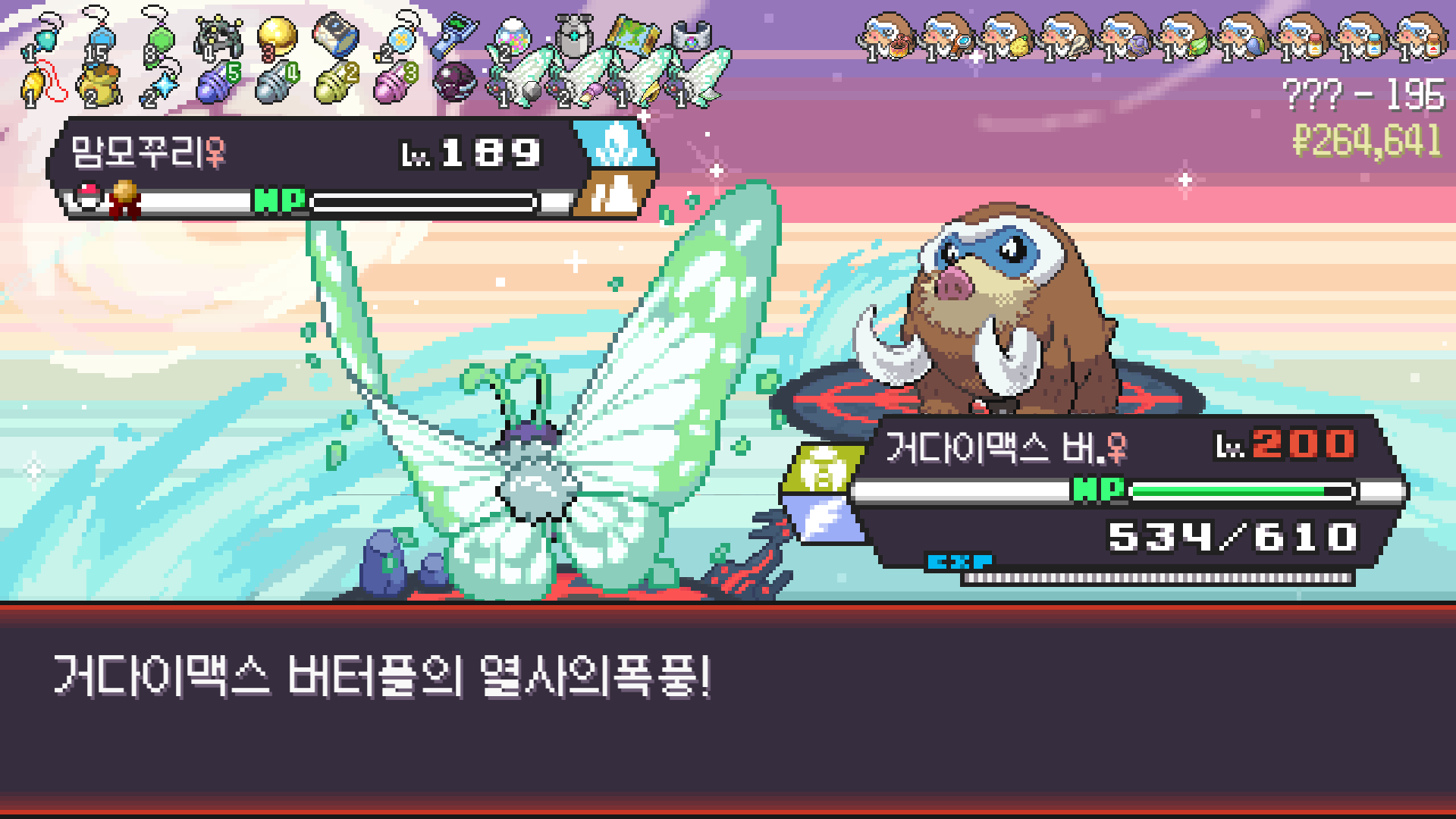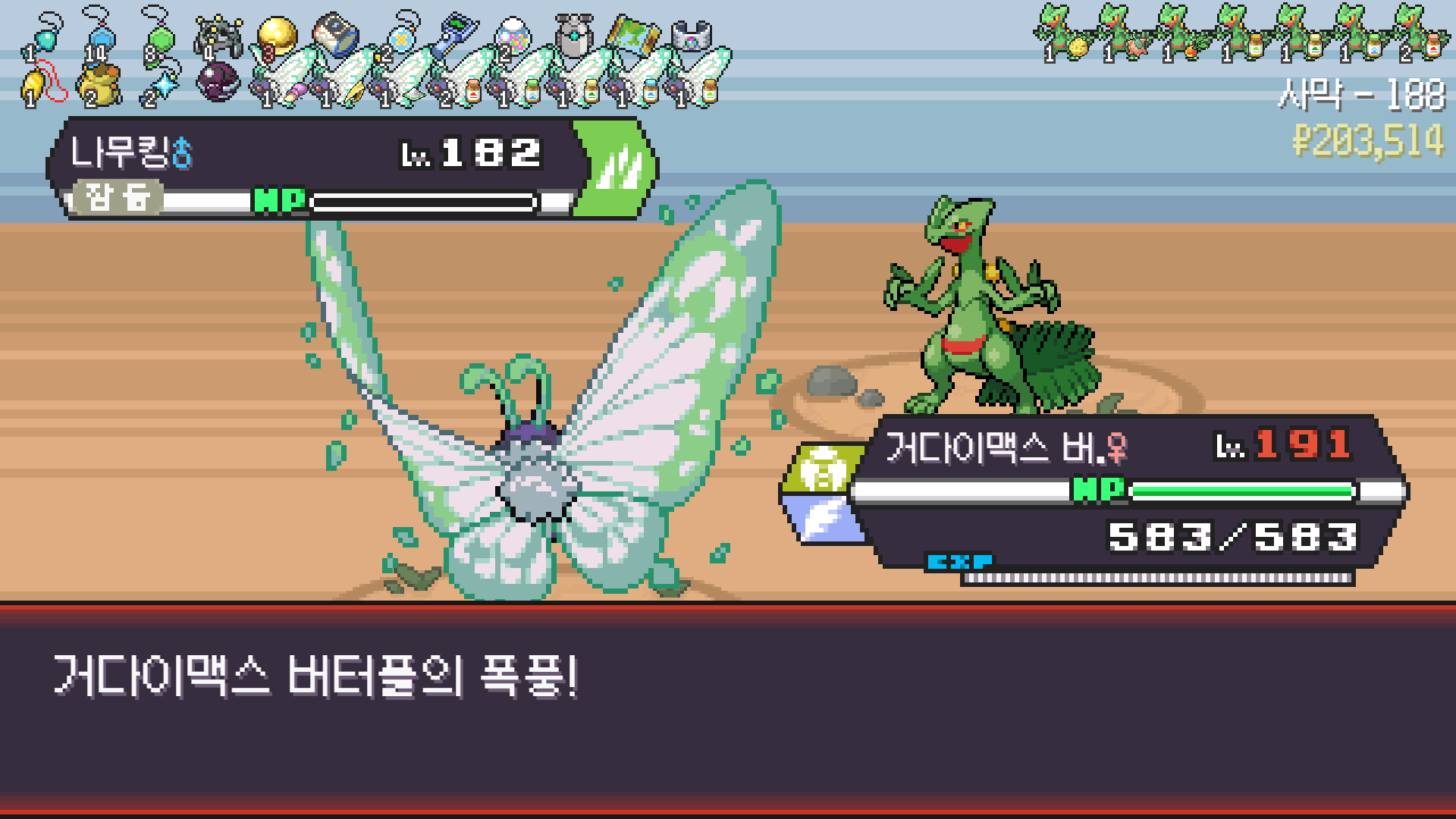 알기술 열사의폭풍과 기술머신 폭풍을 배운 후에는 바람타기 다탱구를 제외하고는 위기 없이 혼자 다 썰었다