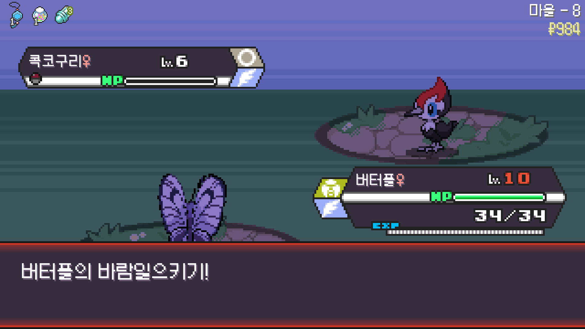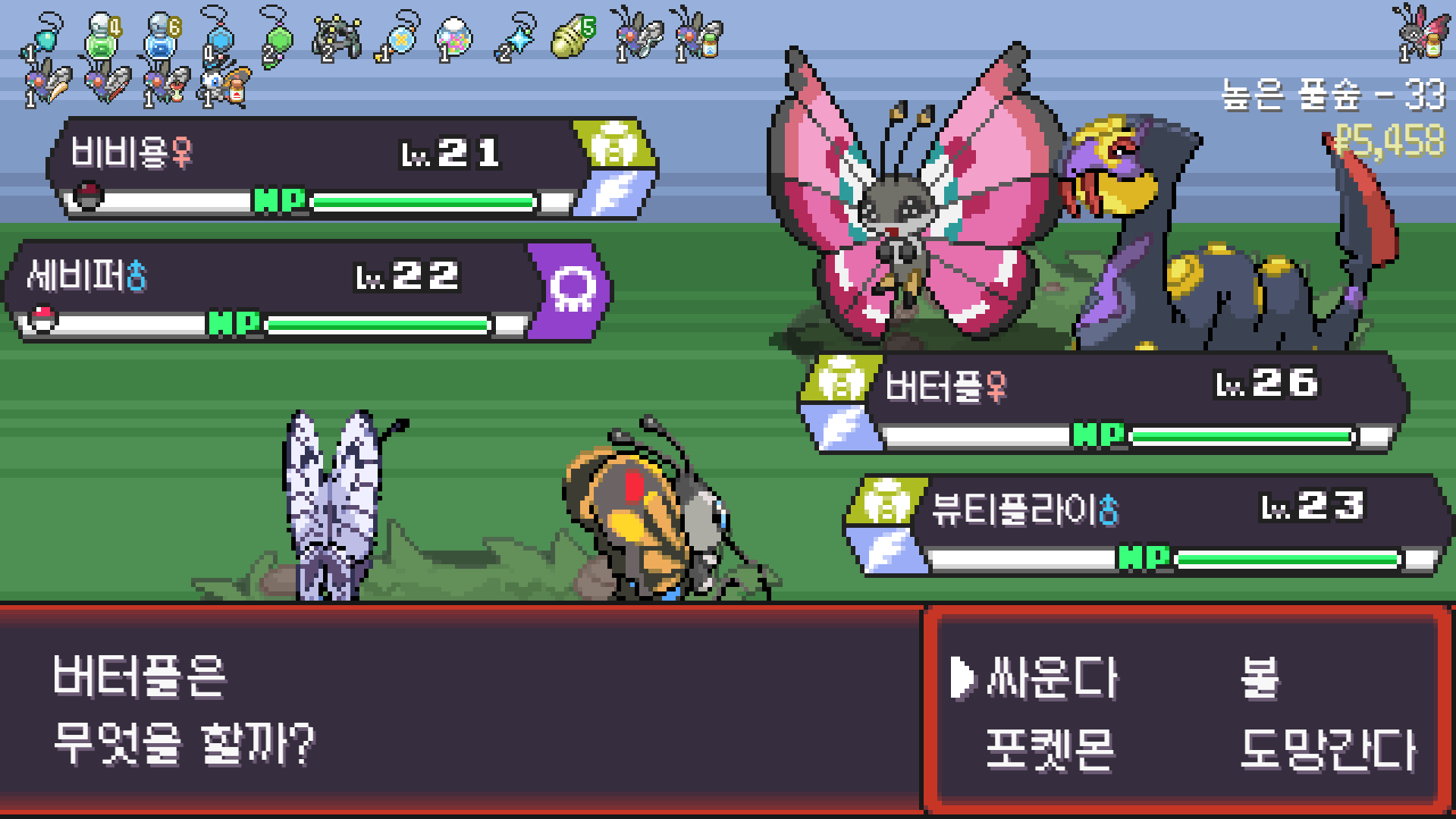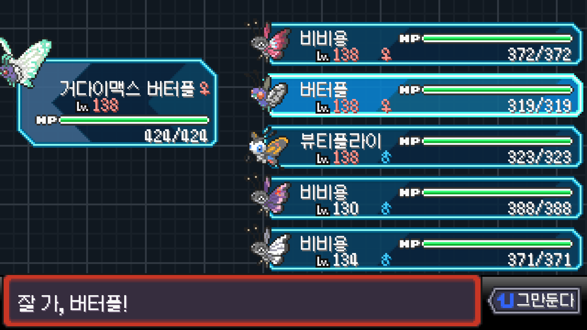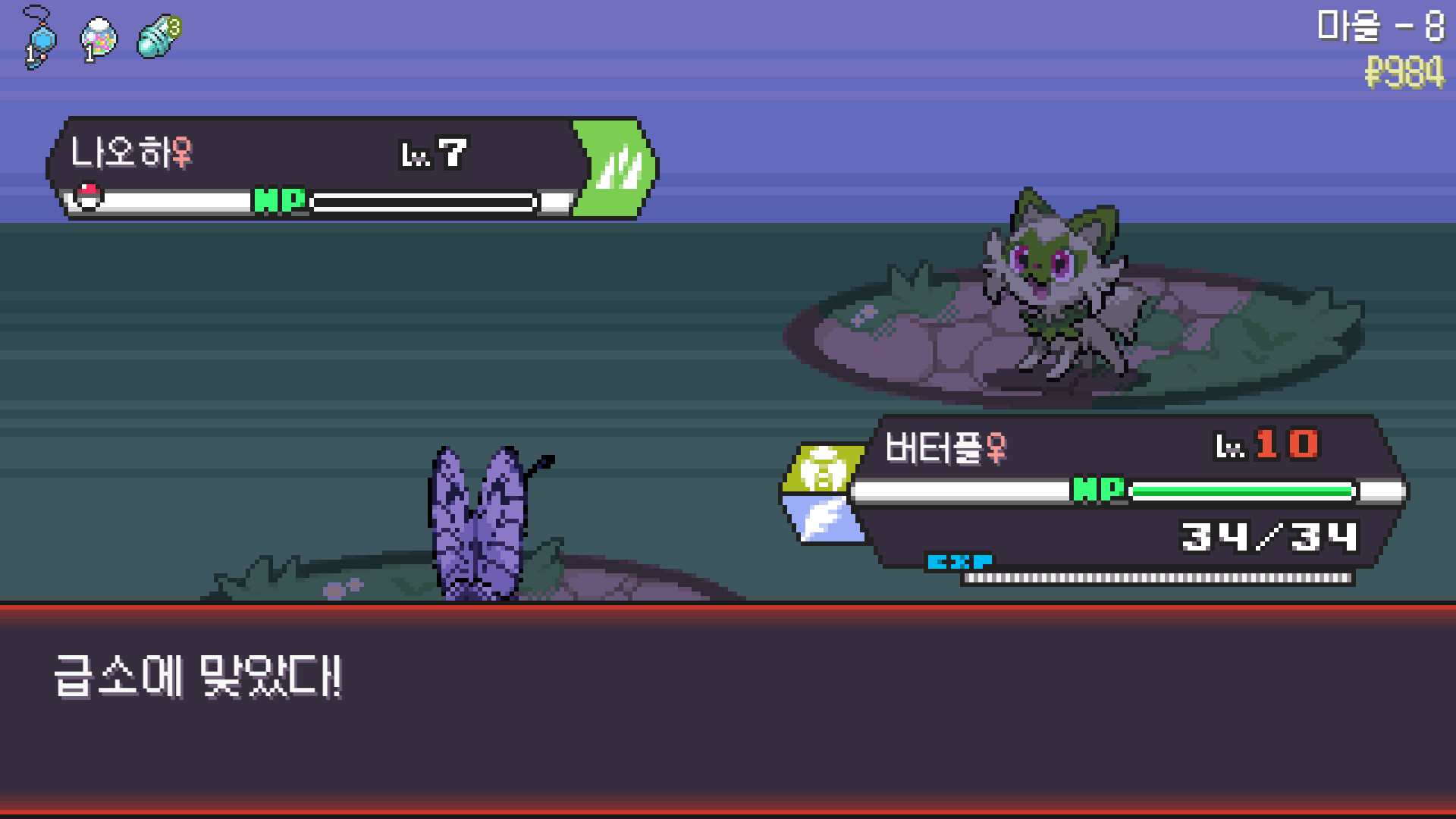 첫 라이벌전 새포켓몬이 통곡의 벽이라 버터플 진화 없이는 넘을 수 없었다