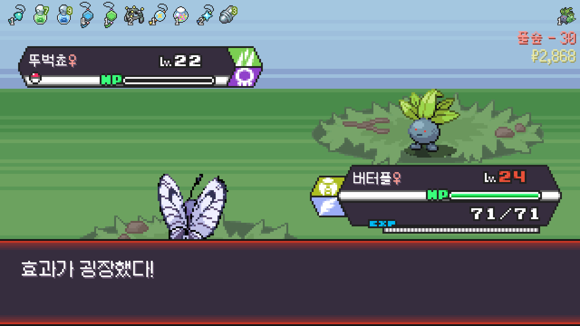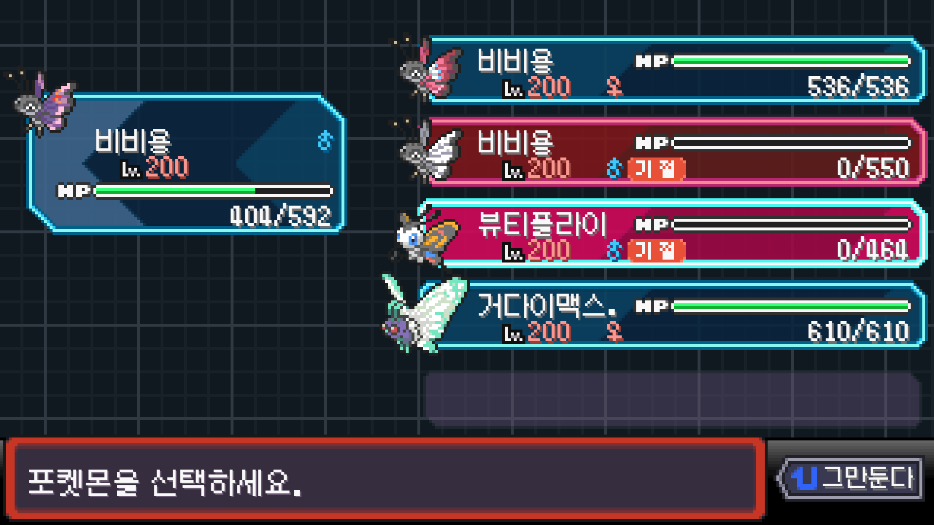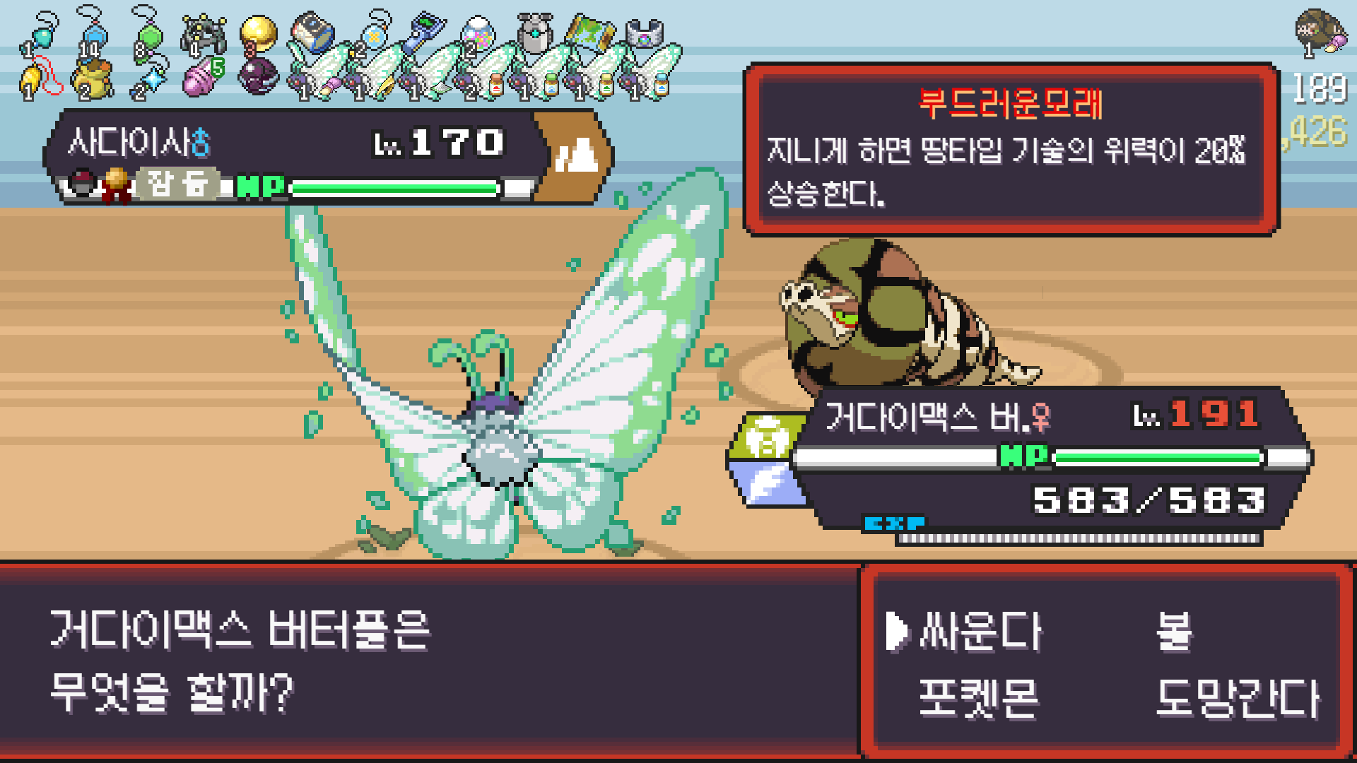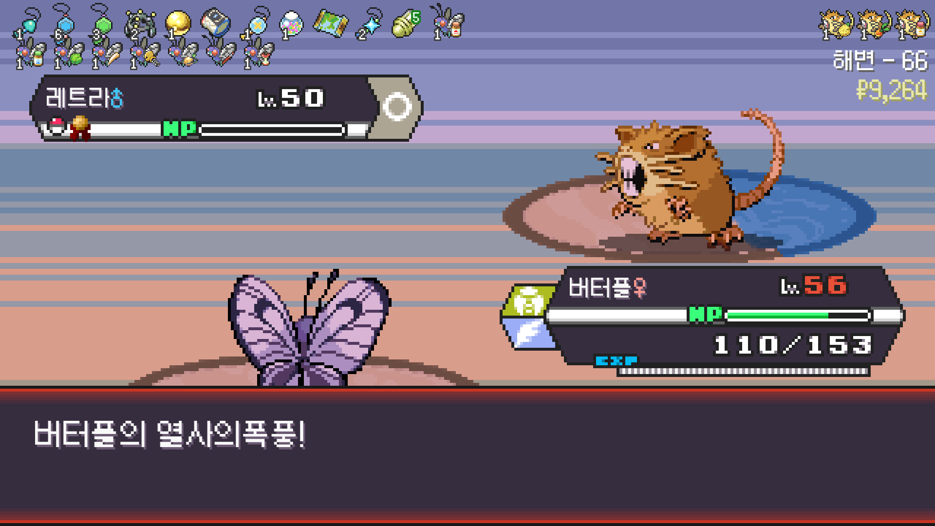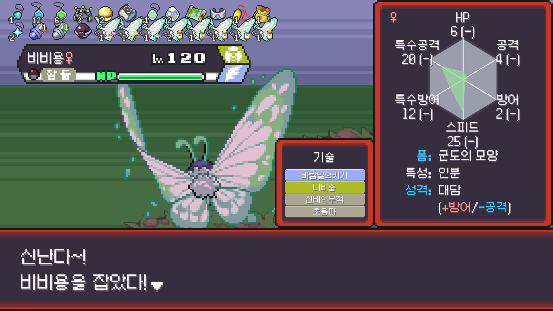 첫 라이벌전 새포켓몬이 통곡의 벽이라 버터플 진화 없이는 넘을 수 없었다