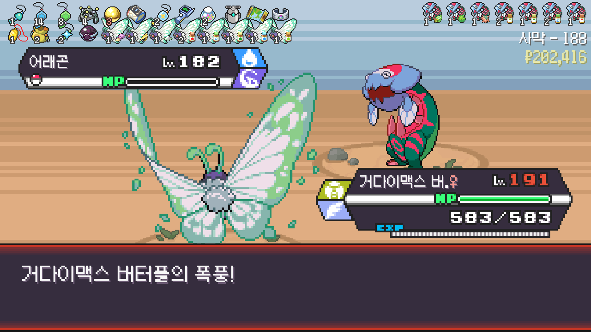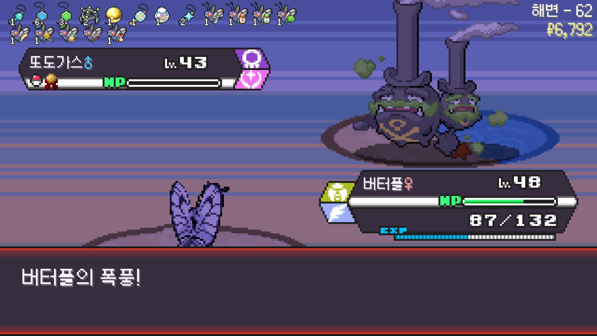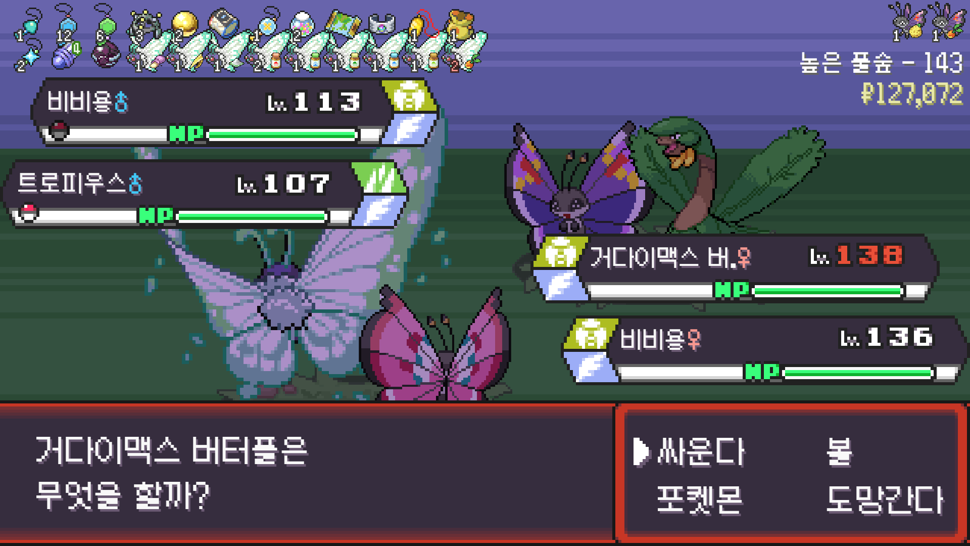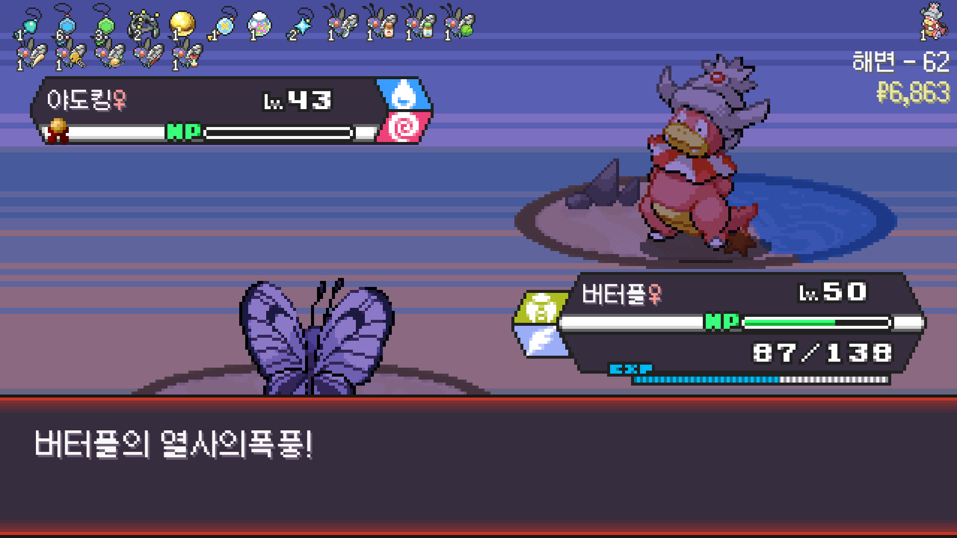 첫 라이벌전 새포켓몬이 통곡의 벽이라 버터플 진화 없이는 넘을 수 없었다
