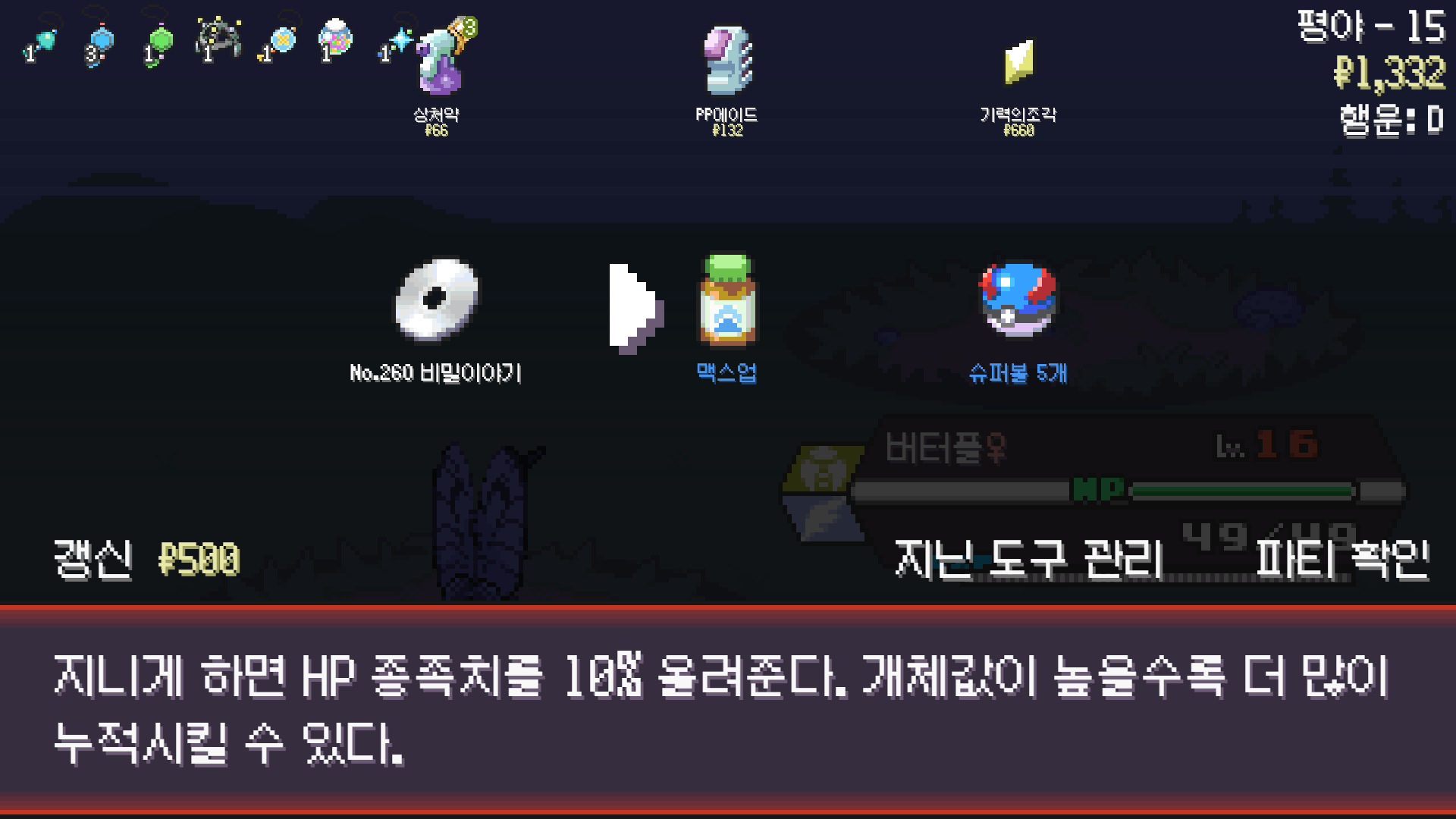 거다이도해서 죽을일 없어보이니 부활의씨앗으로 열매주머니 받아오고