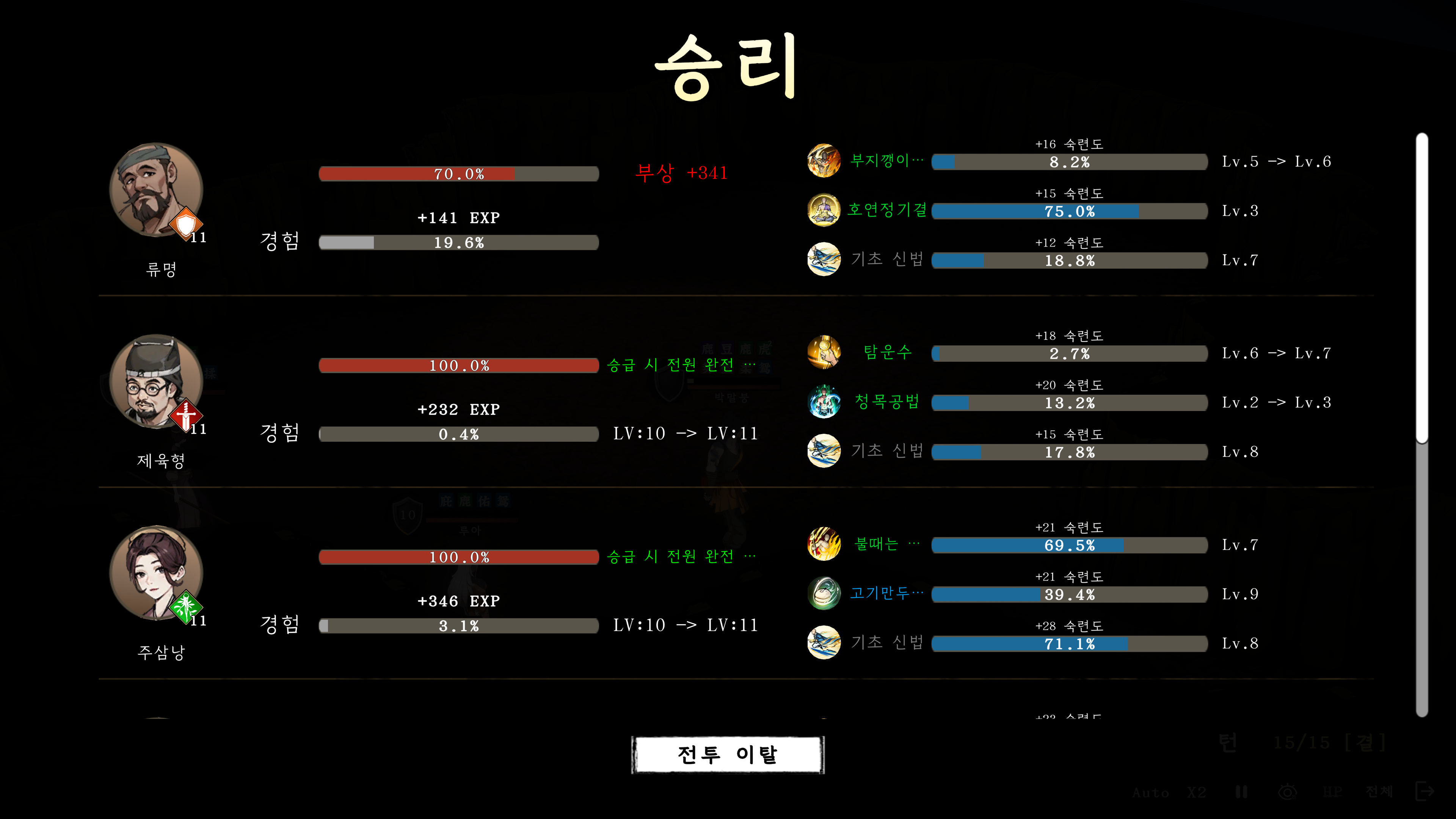 부상으로 다 갈렸을 때 단단한 할배와서 깽판치고 서문향 납치
