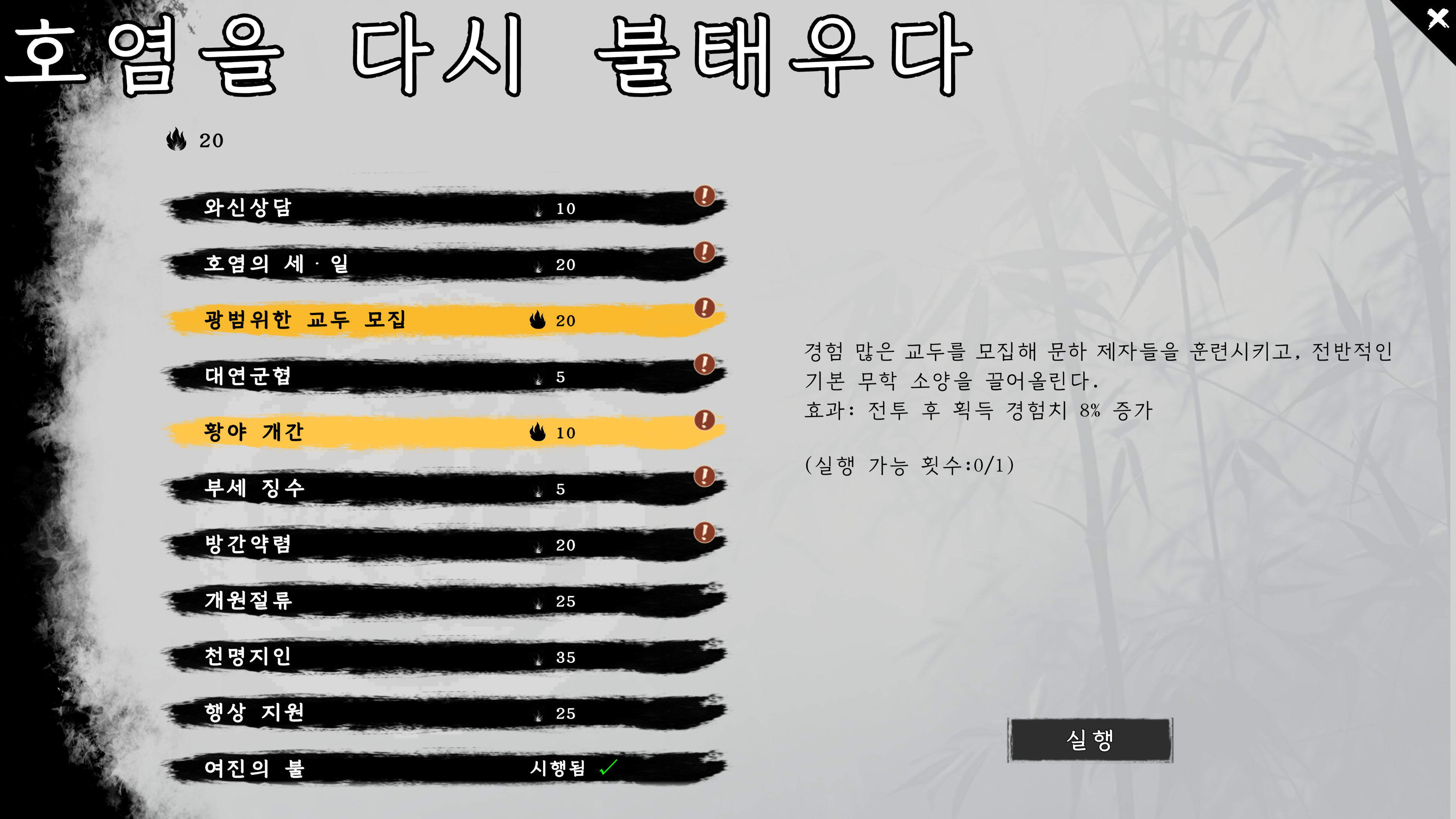 모인 포인트로는 행동력부터 +1